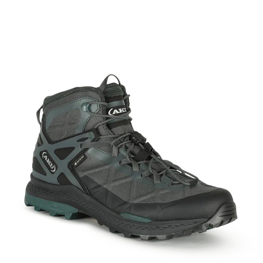 Calzatura destinata all’escursionismo veloce; dinamica e affidabile anche sui percorsi piรน difficili. ROCKET DFS GTX adotta l’innovativo battistrada Vibram con tecnologia Traction Lug che migliora del 25% la trazione e la tenuta grazie allo speciale design. La tomaia ha una struttura a nervature incrociate ed รจ protetta da uno strato 3D print. La tecnologia esclusiva AKU Dual Fit System (DFS), qui realizzata nella versione per lo speed hiking, consente di variare il grado di precisione della calzata agendo con semplicitร sui due diversi sistemi di allacciatura. E’ costruita con la tecnologia AKU Elica Natural Stride System per favorire l’efficienza biodinamica.