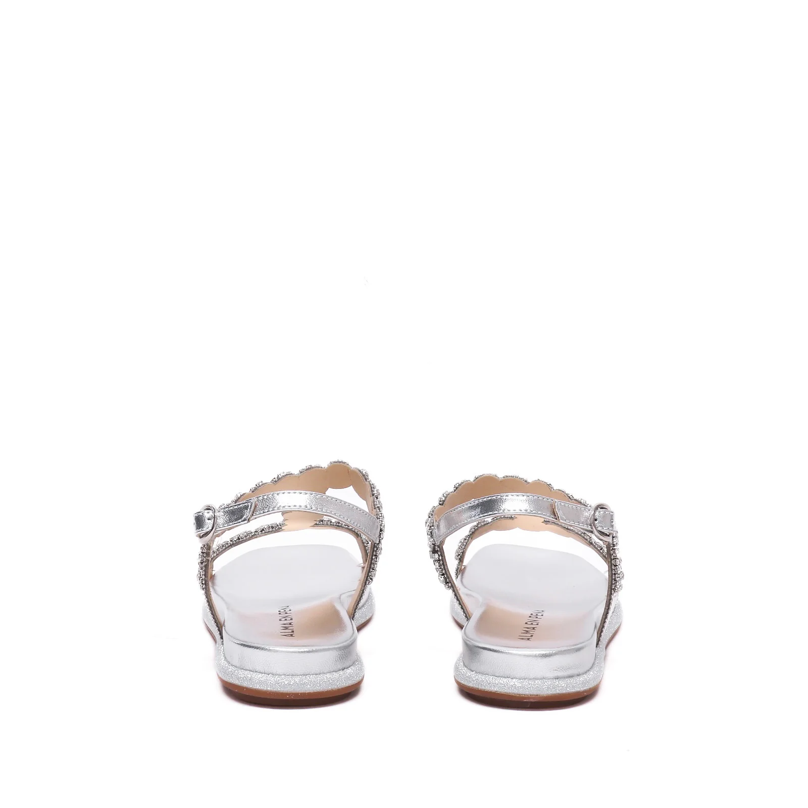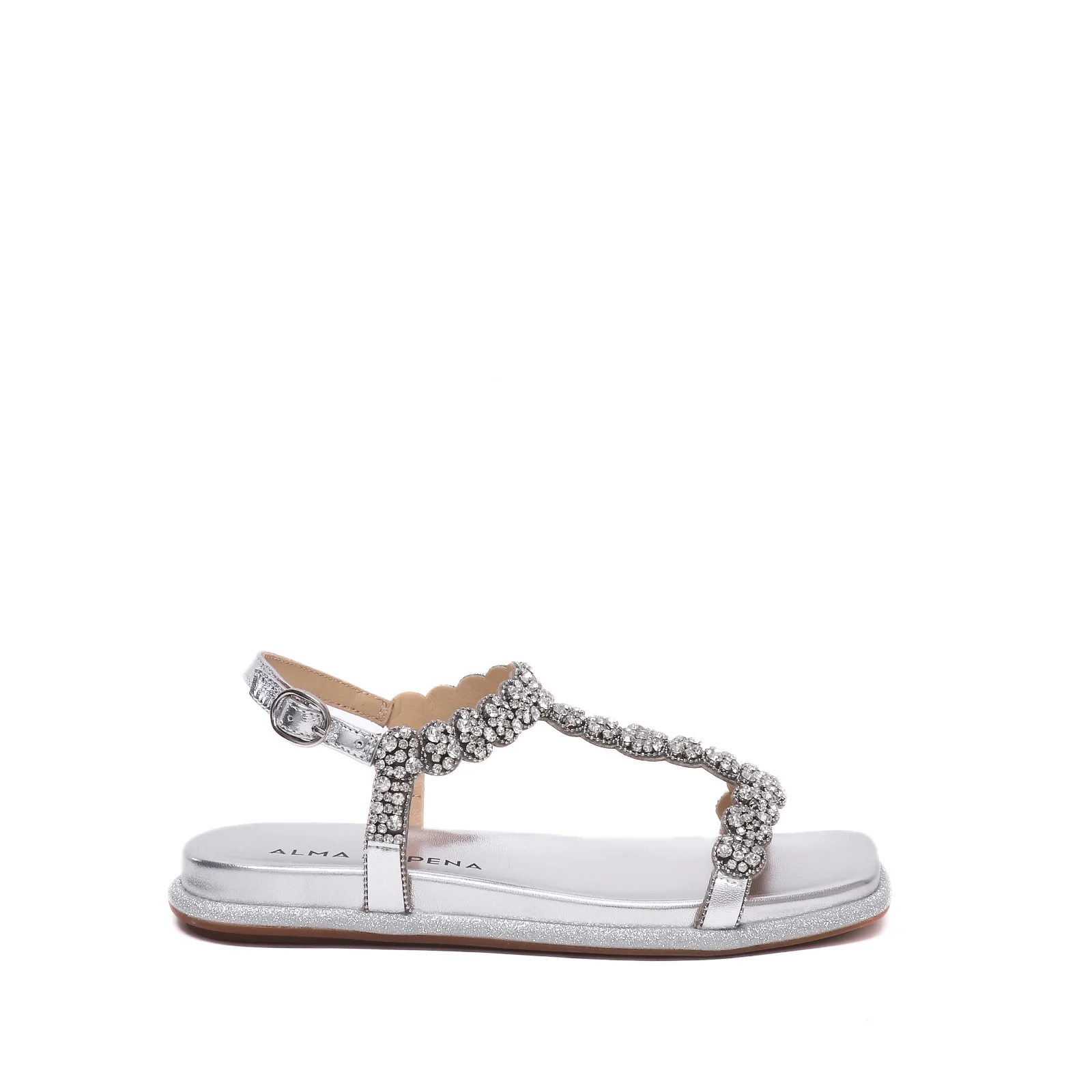 Sandalo laminato argento con strassFodera in pelleSuola in gomma con plantare FusbetCalzata regolareID Prodotto: 841 DIVA SILVERSKU: 841A