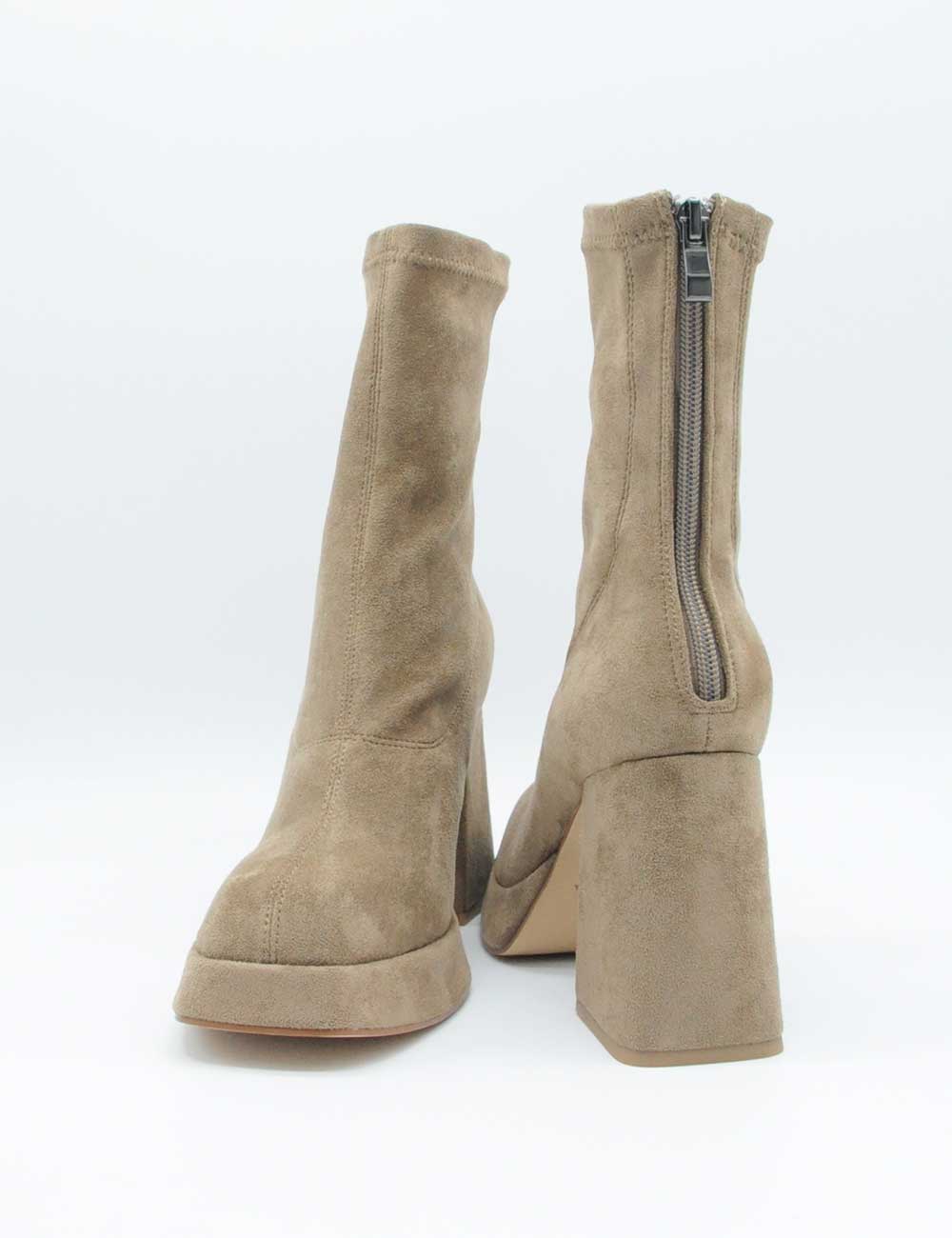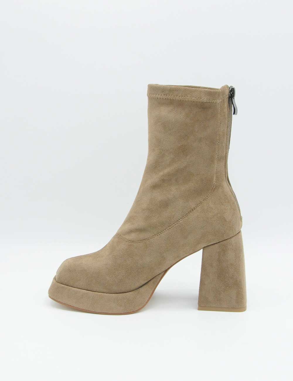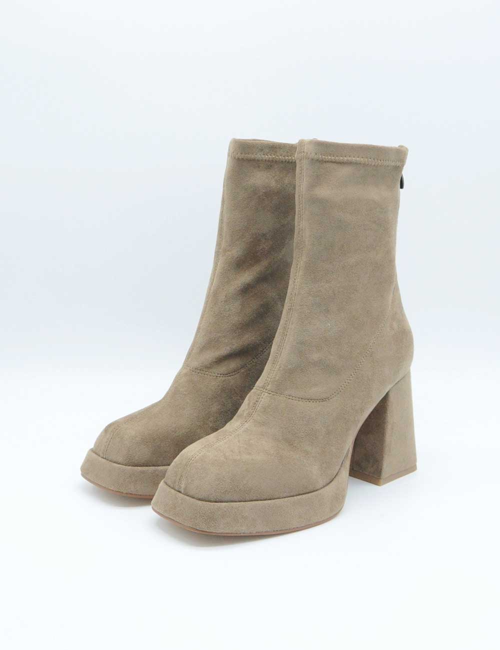 Alma En Pena Stivaletto Nocciola, stivaletto elasticizzato in morbida pelle suede e zip sul retro per una calzata piรน confortevole. Sottopiede imbottito. Tacco rivestito. Fondo in gomma.