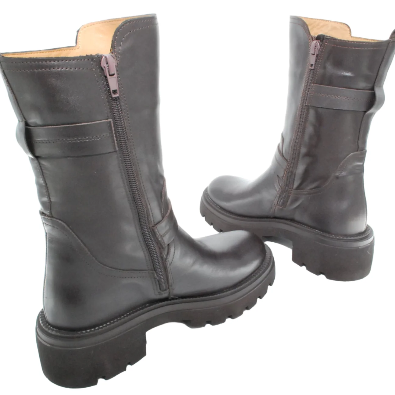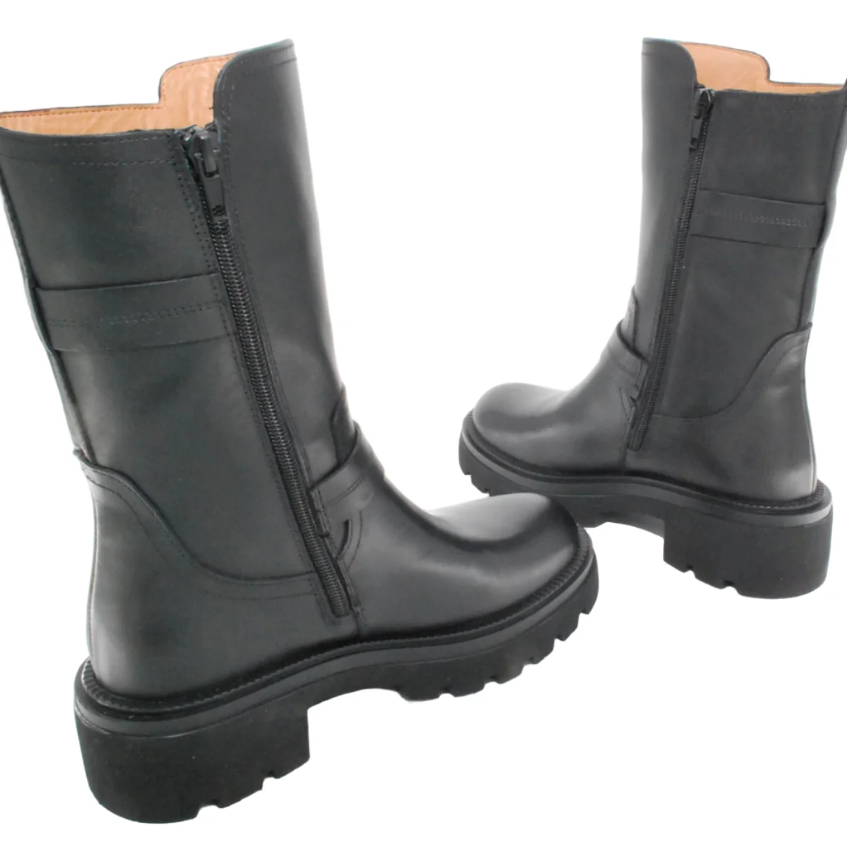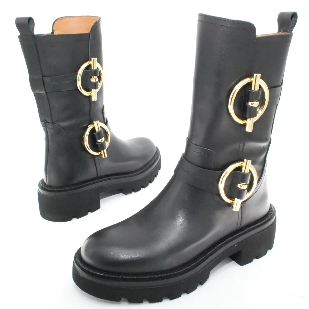 Tomaia in pelle Fodera in pelle Soletta in pelle Suola in gomma antiscivolo Cerniera laterale Applicazione fibbia dorato Altezza tacco 50 mm Altezza gambale 28 Qualitร Artigianale Italiana