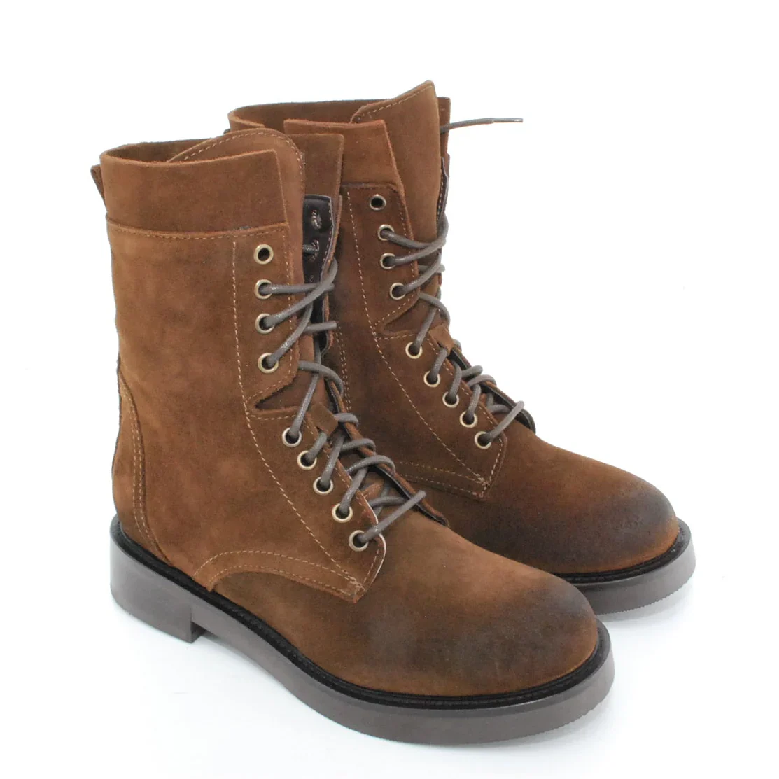 Tomaia in camoscio Fodera in pelle Soletta in pelle Suola in gomma Tacco in resina Cerniera laterale Allacciatura frontale Altezza tacco 35 mm Altezza gambale 19 cm Sotto tacco in gomma Qualitร Artigianale Italiana