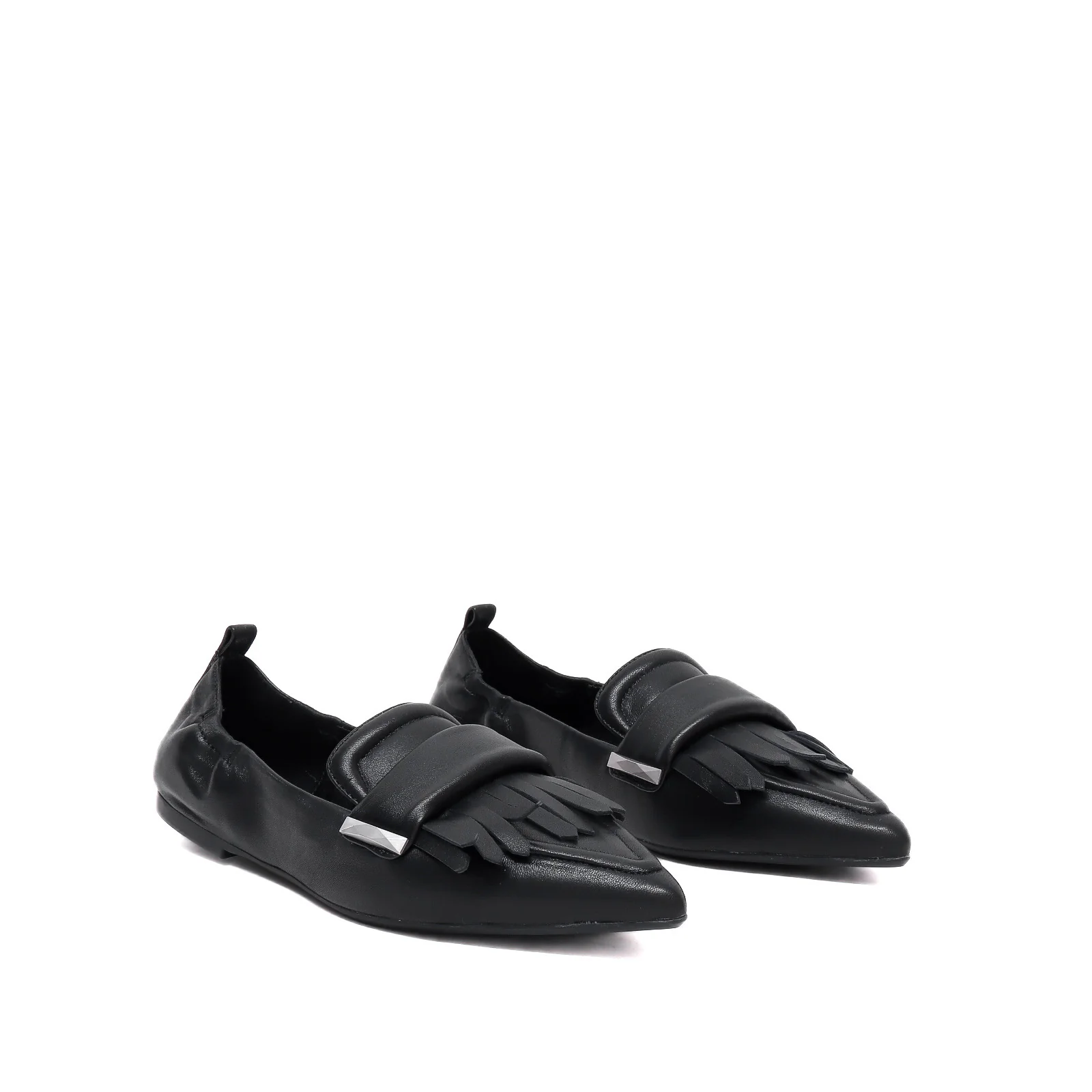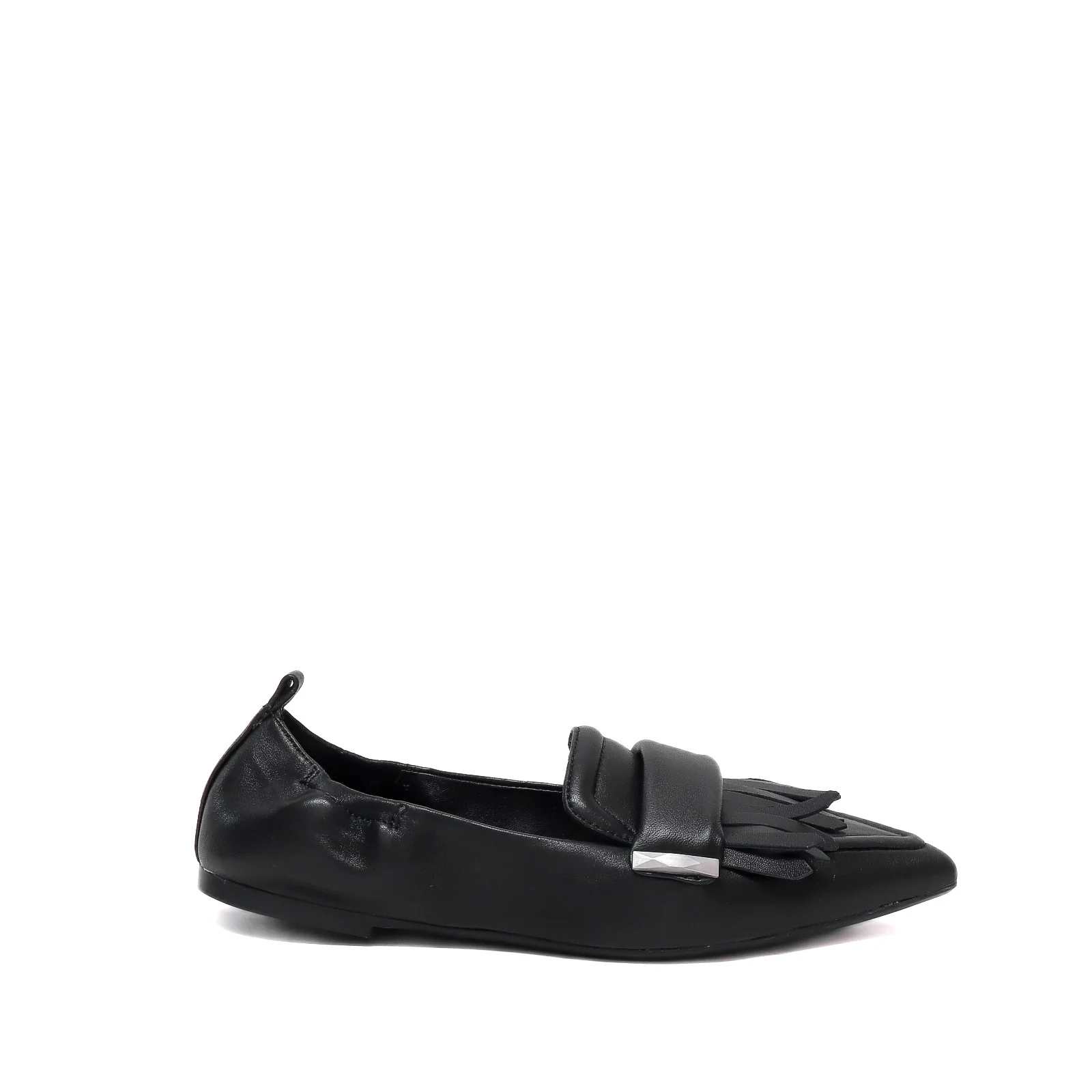 Mocassino donna in pelle morbida nera con patella frontale