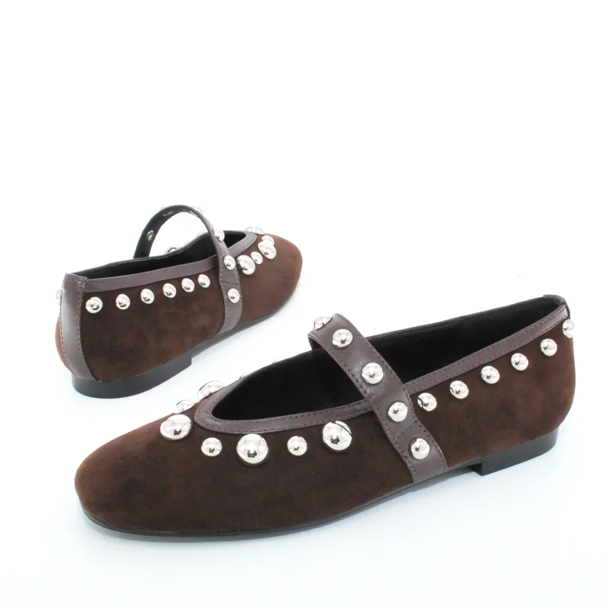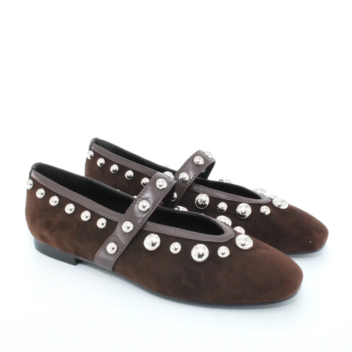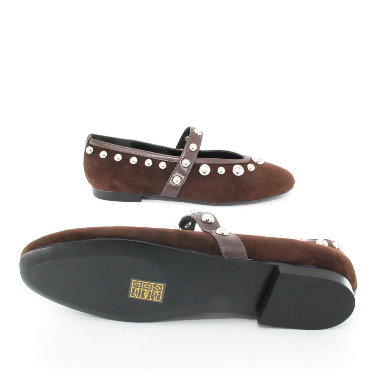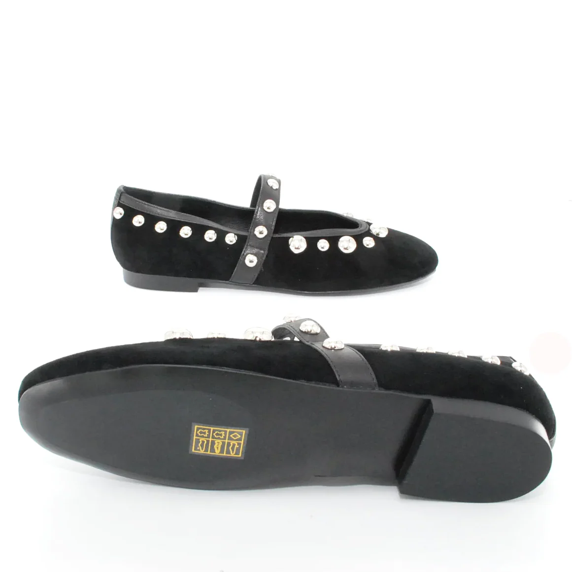 Tomaia in camoscio Applicazioni in pelle Fodera in pelle Soletta in pelle Suola in gomma antiscivolo Applicazioni borchie Altezza tacco 15 mm Sotto tacco in gomma