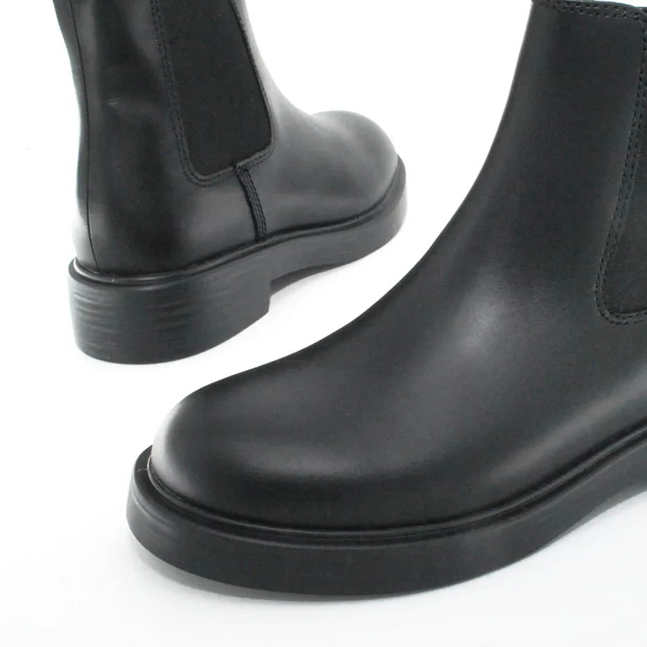 Tomaia in pelle Fodera in pelle Soletta in tessuto Elastici laterali linguetta con logo Suola in gomma Altezza tacco 40 mm Altezza tomaia 13 cm