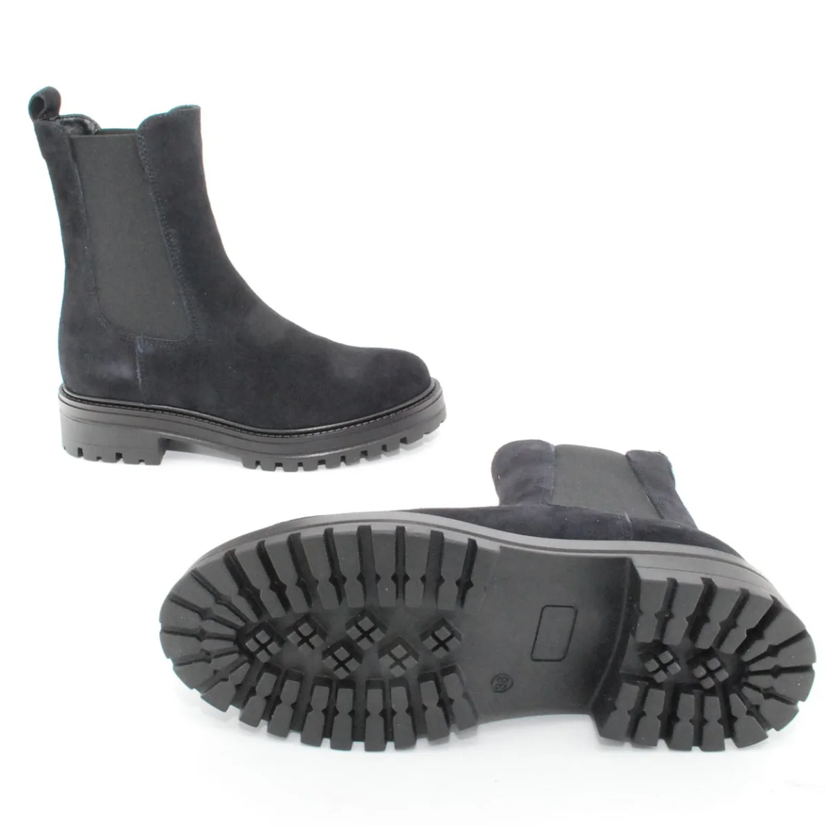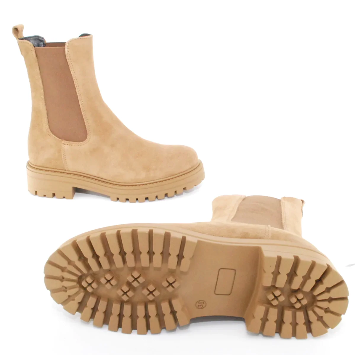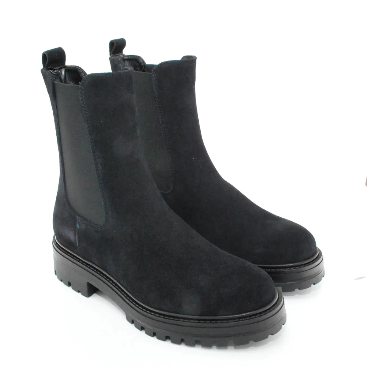 Tomaia in camoscio Fodera in pelle Soletta in pelle Suola in gomma antiscivolo Elastici laterali Altezza tacco 45 mm Altezza gambale 18 cm Qualitร Artigianale Italiana