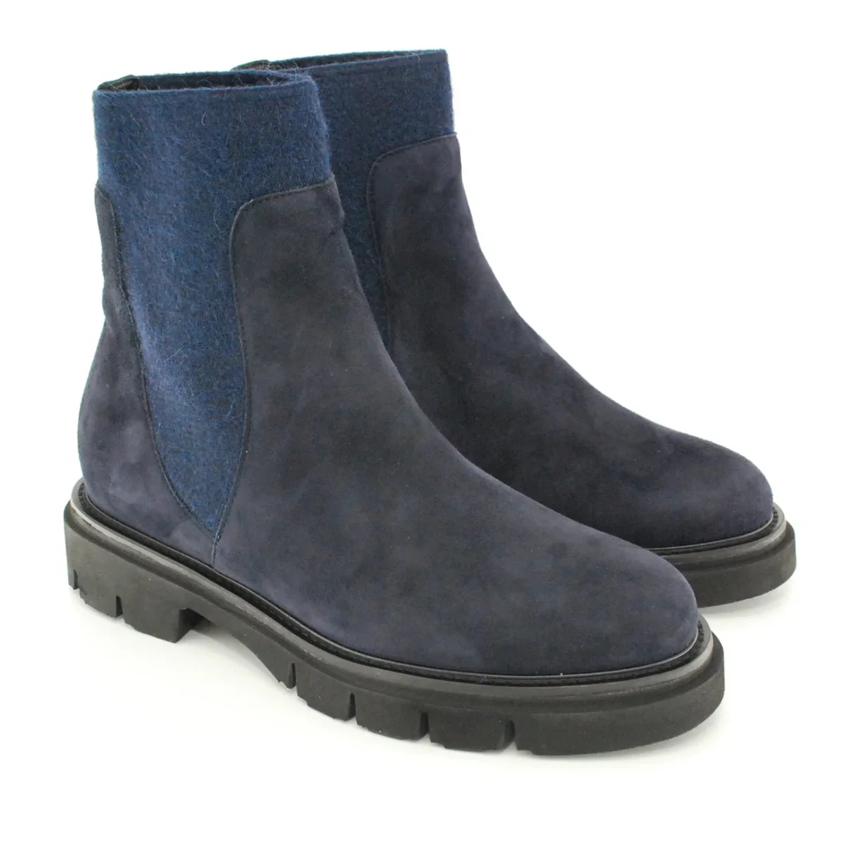 Tomaia in camoscio Fodera in pelle Soletta in pelle Elastico in tessuto Suola in gomma antiscivolo Altezza tacco 40 mm Altezza gambale 15 cm Qualitร Artigianale Italiana