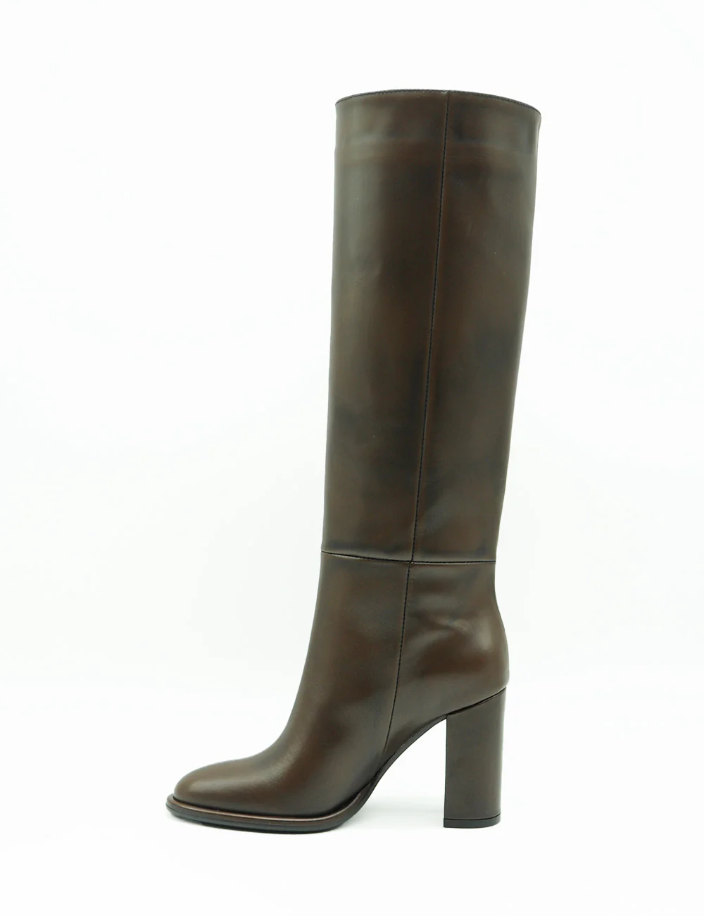 Bianca Di Stivale Caffè è realizzato in pelle di alta qualità e presenta una punta slanciata, una suola in gomma e un tacco alto 9 cm. Il gambale, con un’altezza da terra di 48 cm, combina raffinata eleganza e funzionalità in ogni particolare.