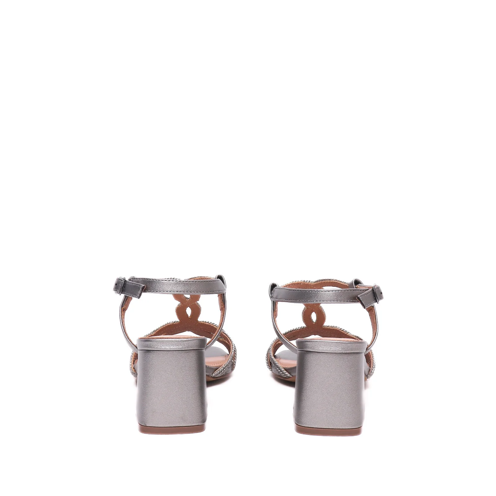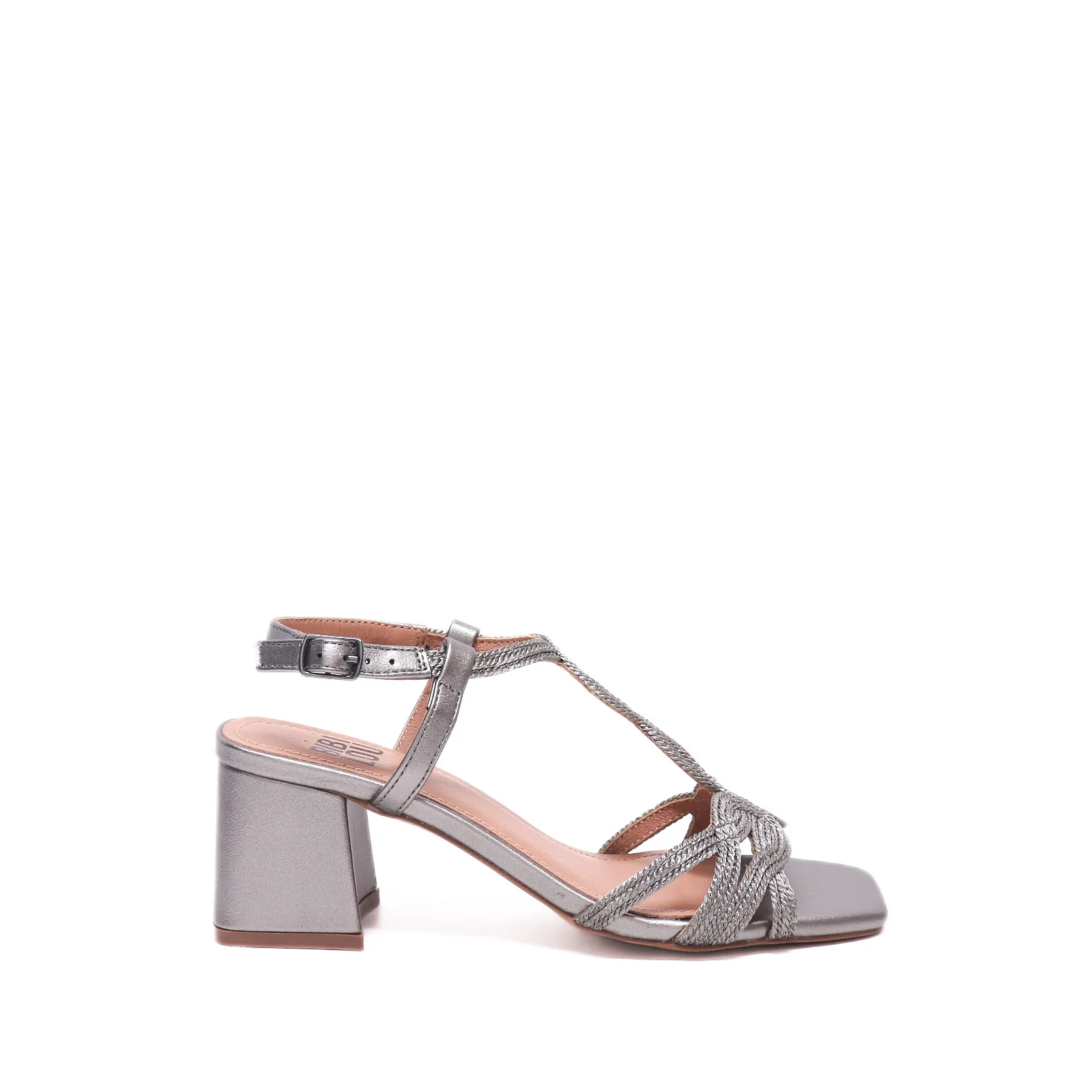 Sandalo in ecopelle laminata piombo con intreccioFodera in pelleSuola in gommaTacco 5.5Calzata regolareID Prodotto : 855Z94HG-V24 TACON PLOMOSKU : 855P