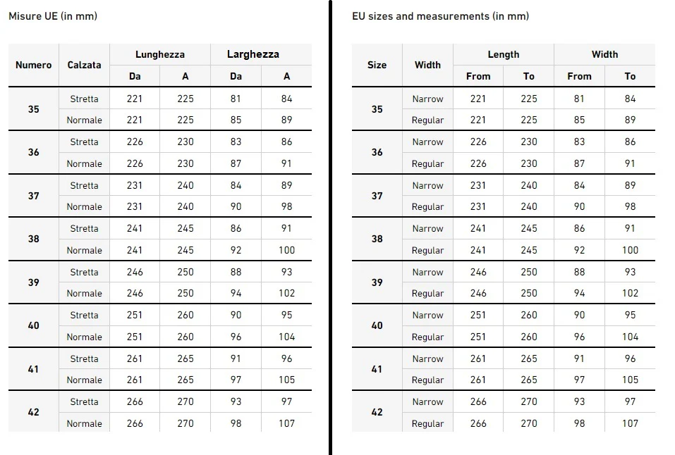 CALZATA STRETTA ( FIT NARROW)