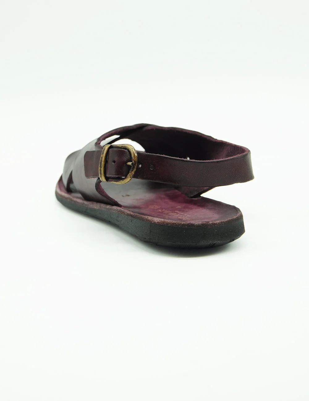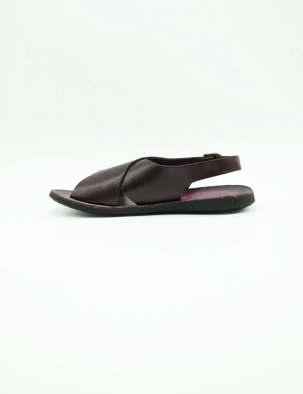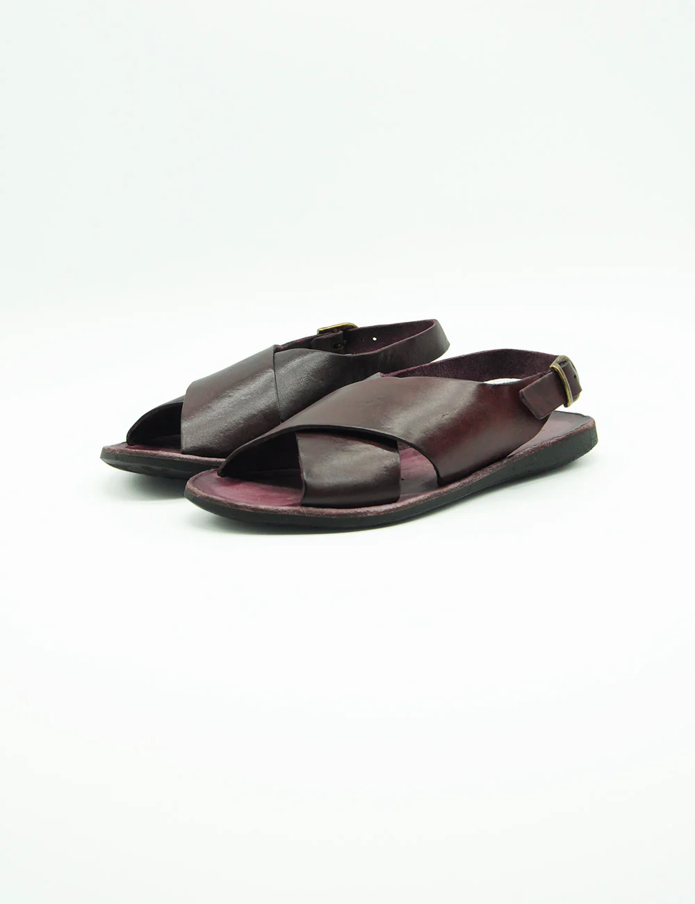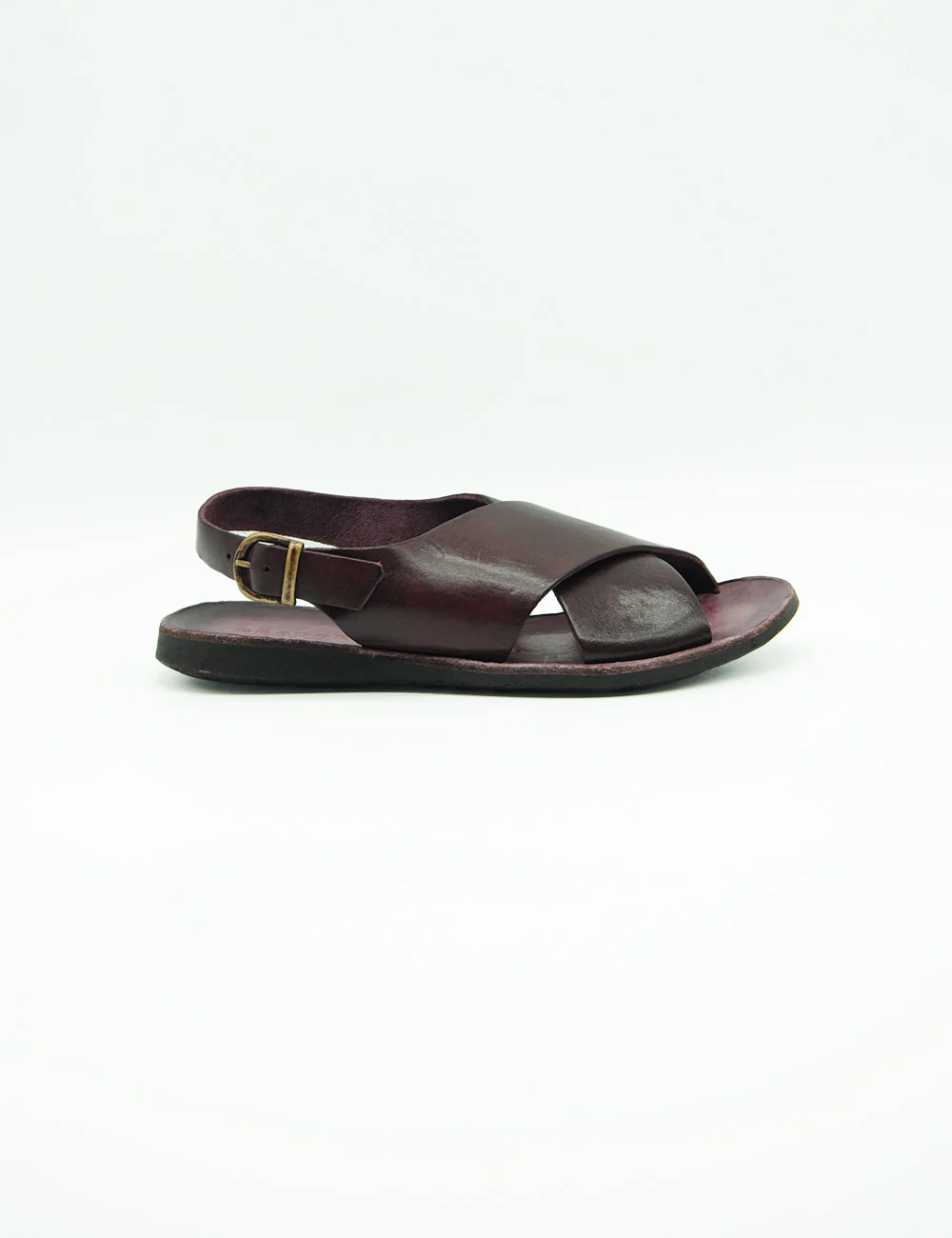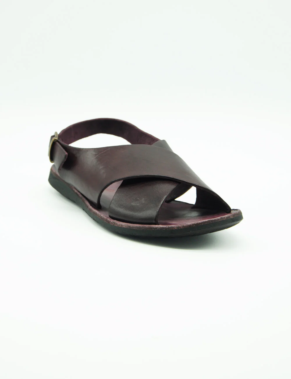 Brador Sandalo Incrociato Vinaccia, sandalo in pelle interamente realizzato a mano con fasce incrociato e cinturino alla caviglia. Tacco altezza 2 cm.