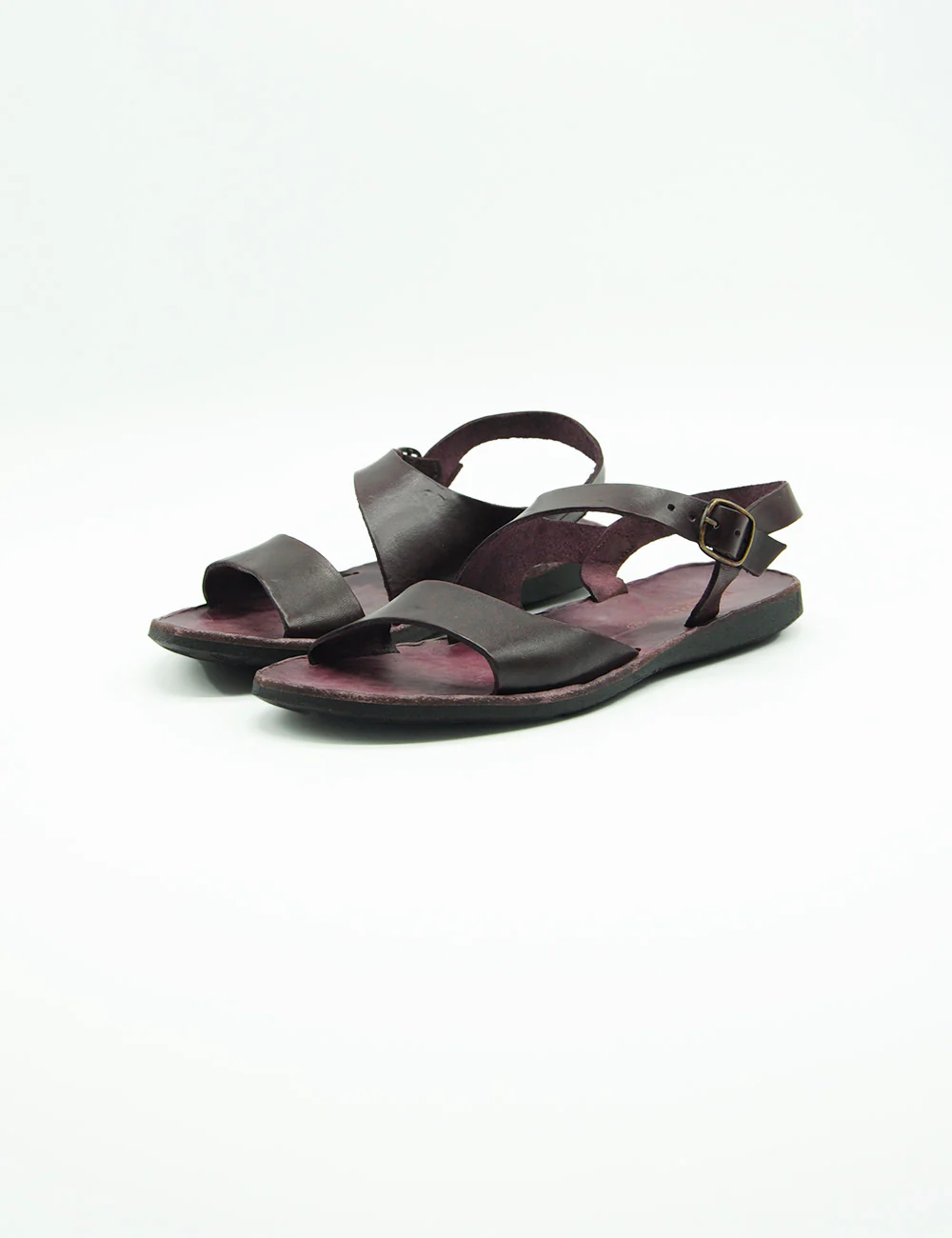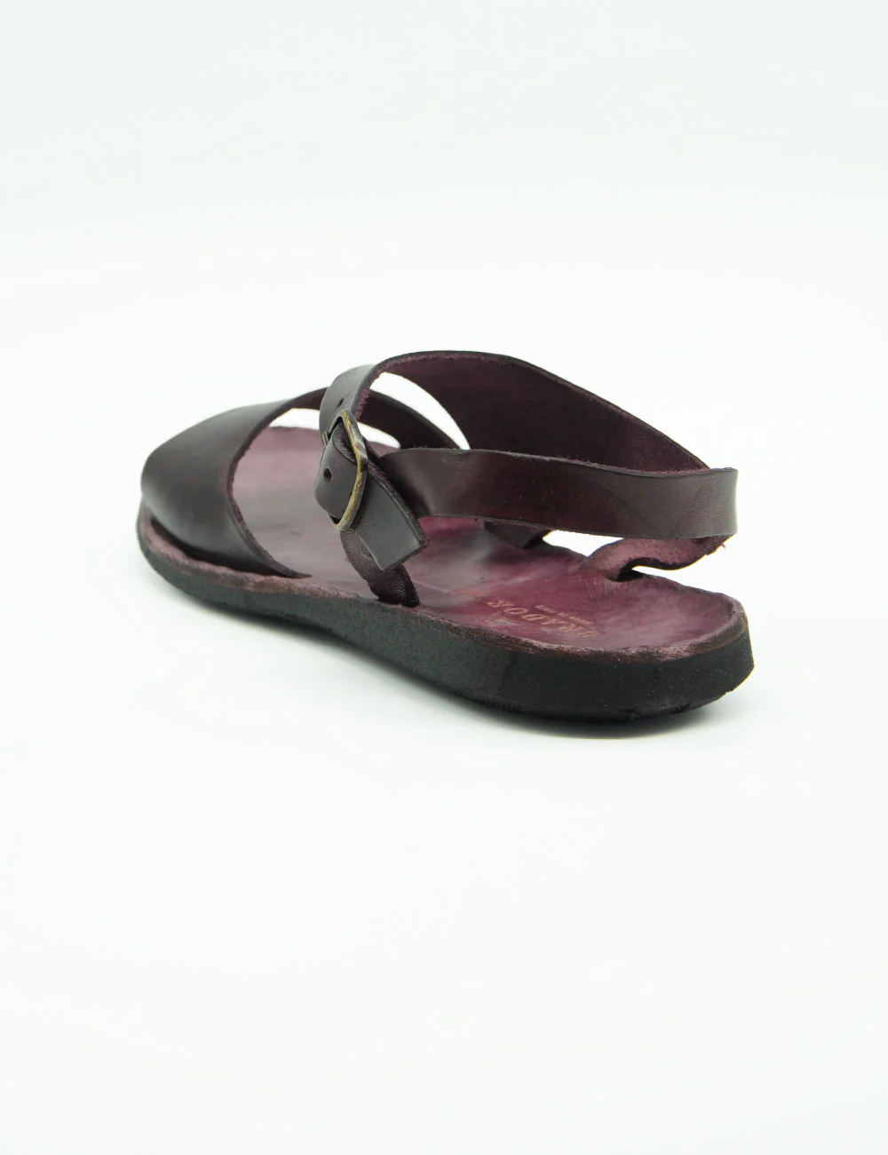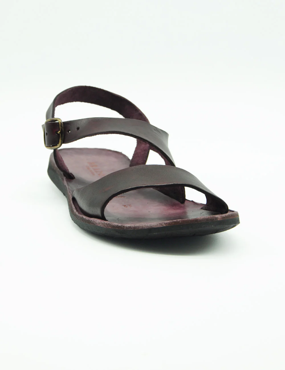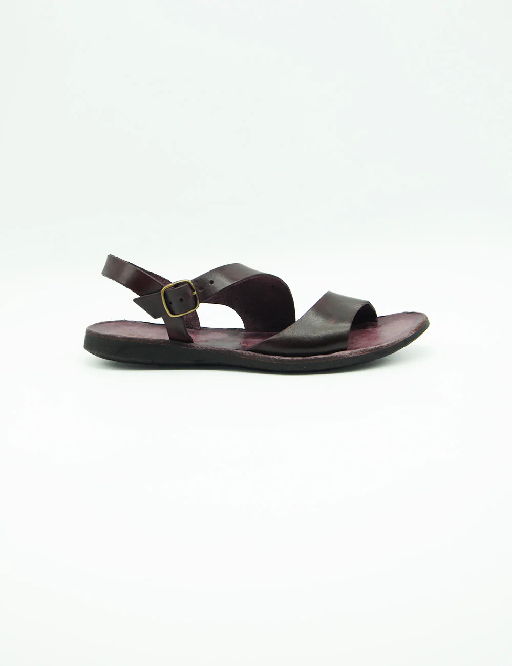 Brador Sandalo Vinaccia, sandalo in pelle interamente realizzato a mano con fascia sagomata a taglio vivo e cinturino alla caviglia. Fondo in gomma. Tacco altezza 2 cm.