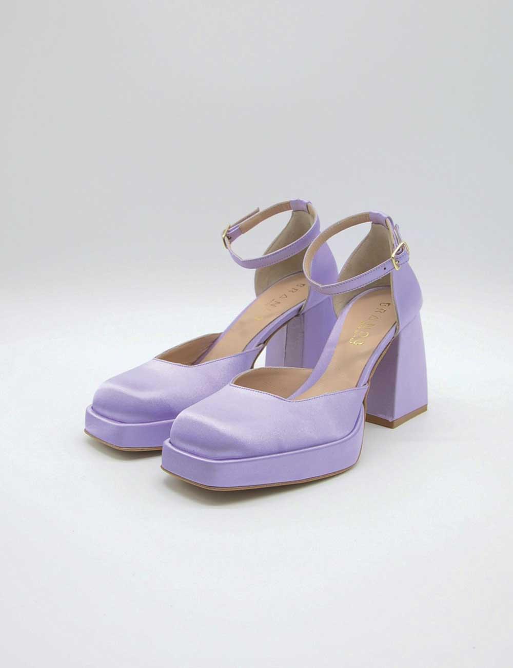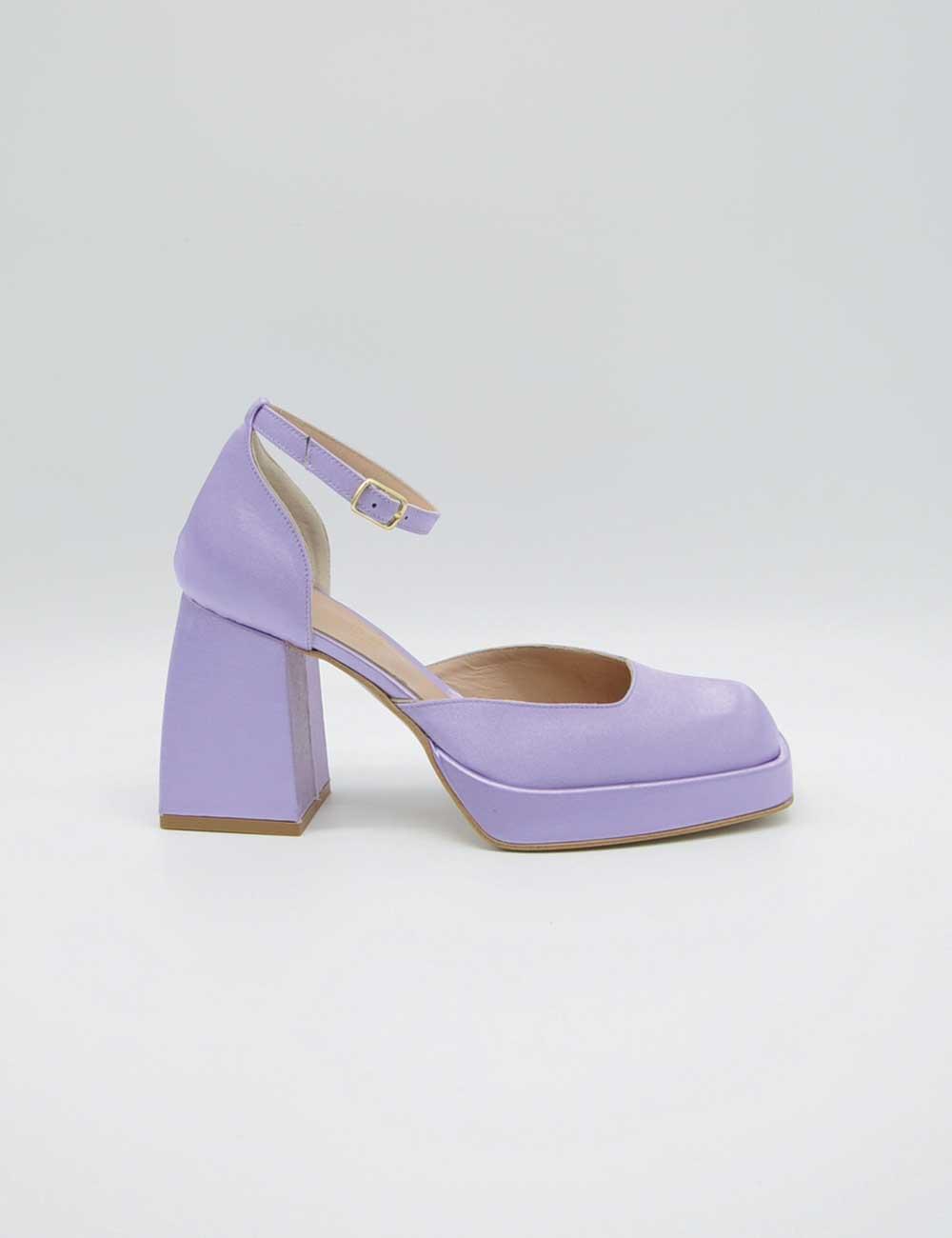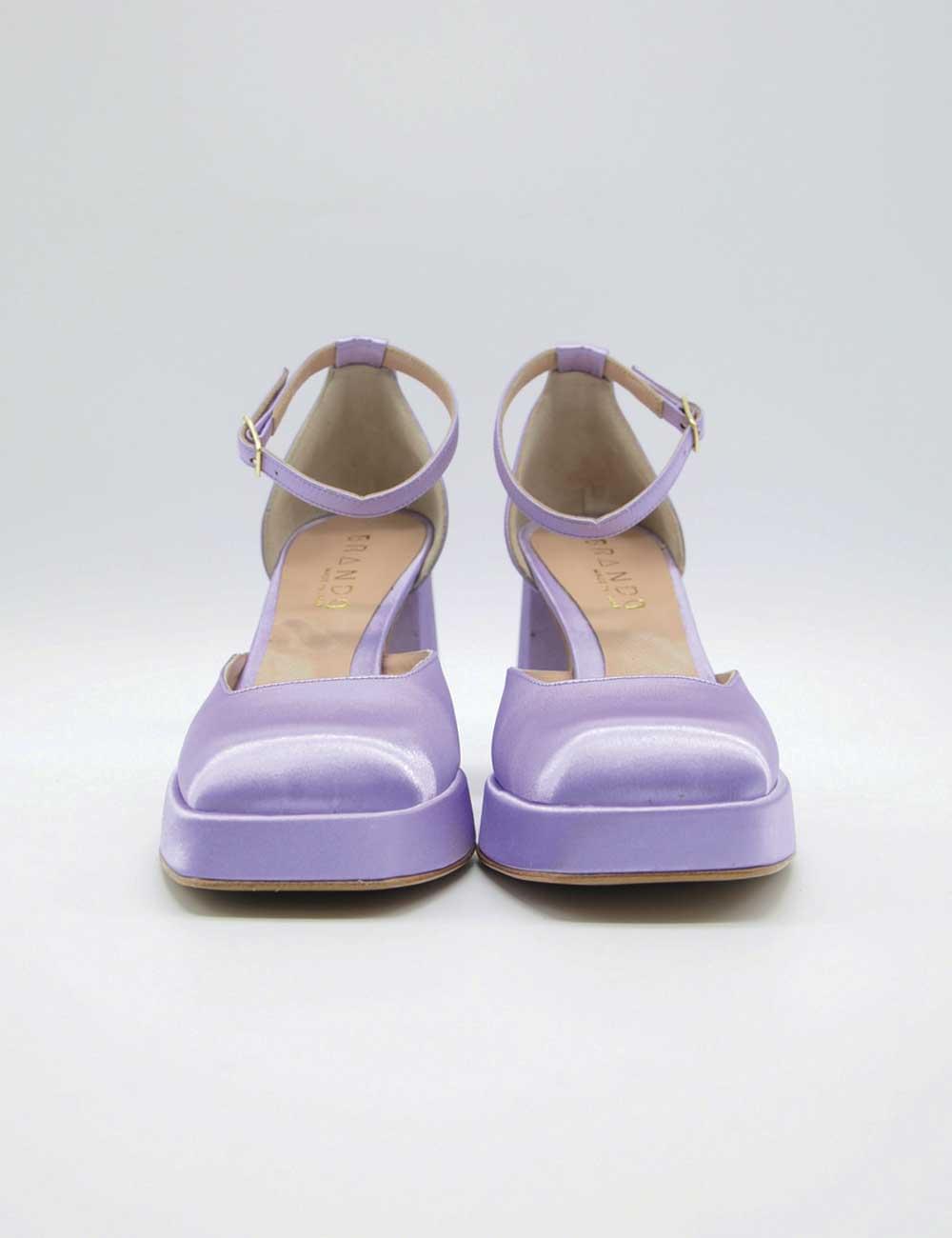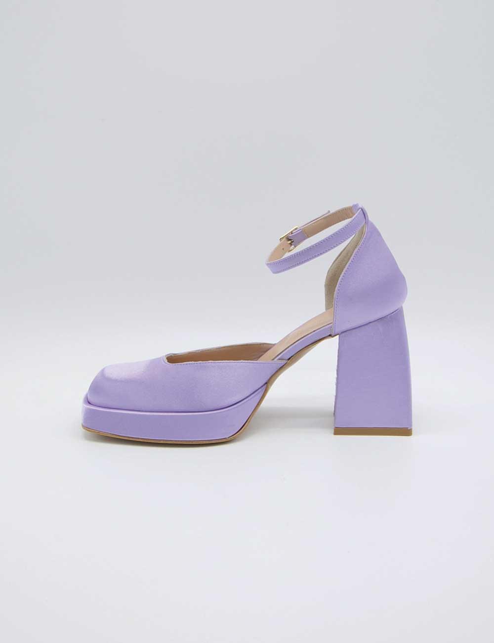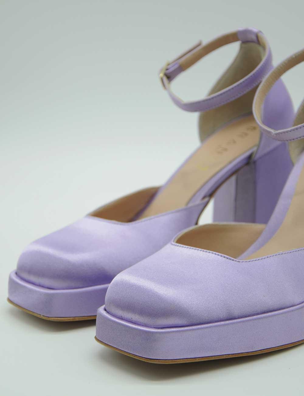 Brando Décolleté Glicine, realizzata in raso e pelle.