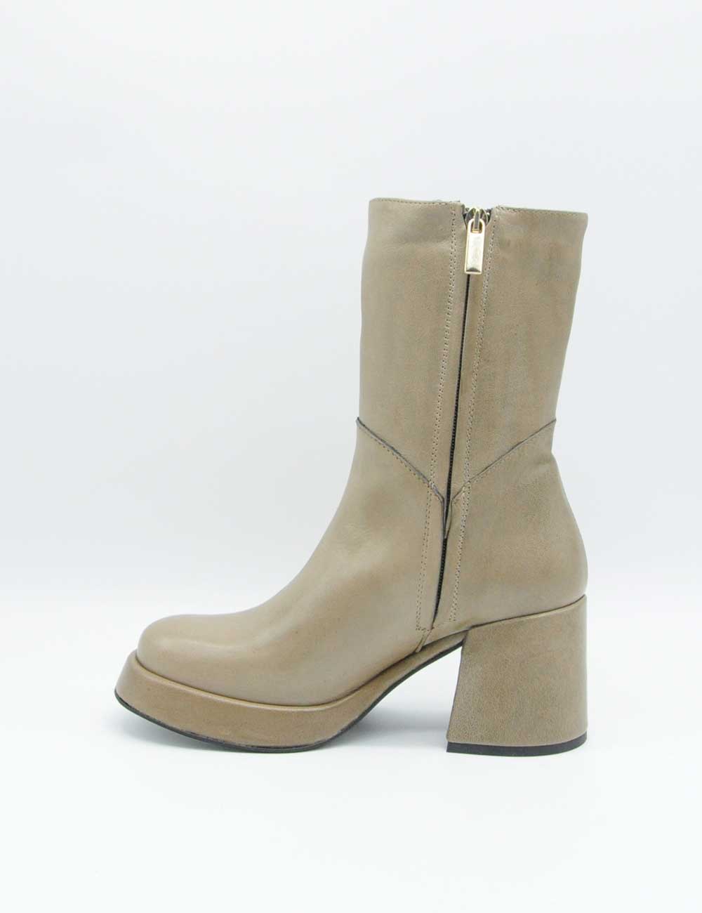 Brando Stivaletto Telma Taupe, stivaletto in morbida pelle con zip sul lato interno.