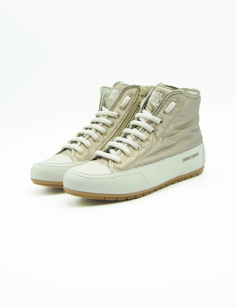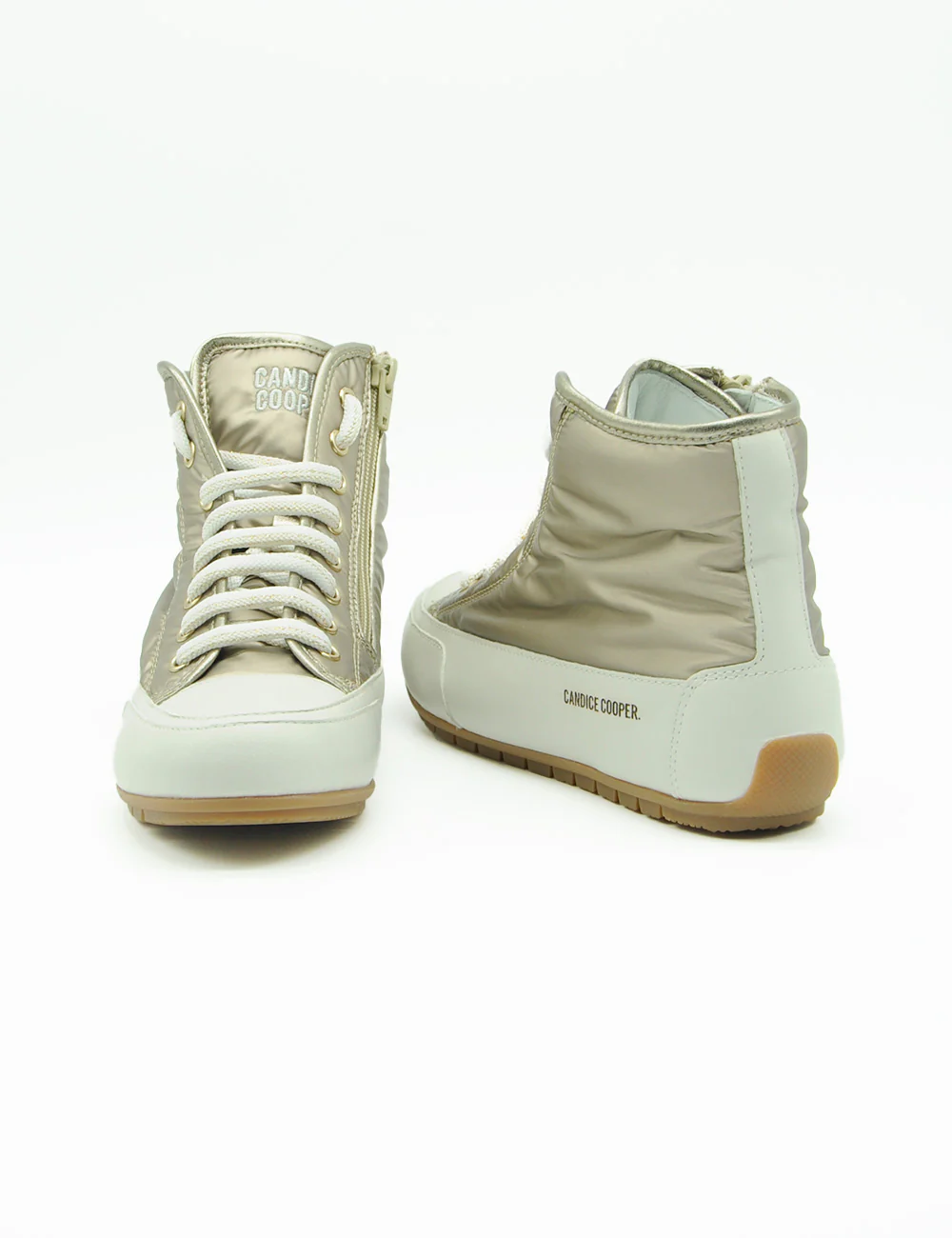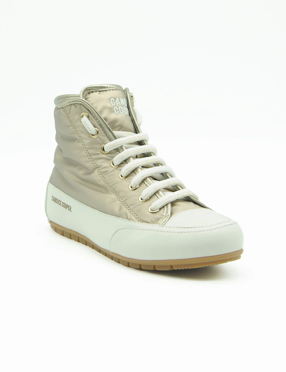 Candice Cooper Sneakers Plus 102 Bord, sneakers alte in tessuto tecnico color platino con inserto in pelle