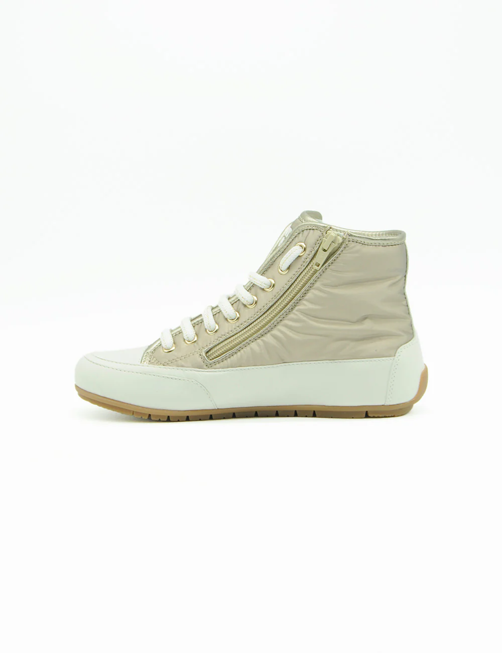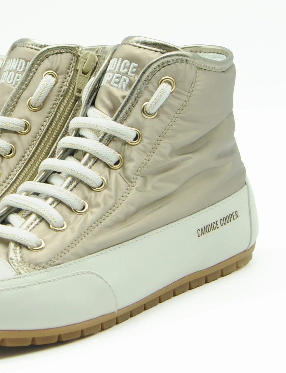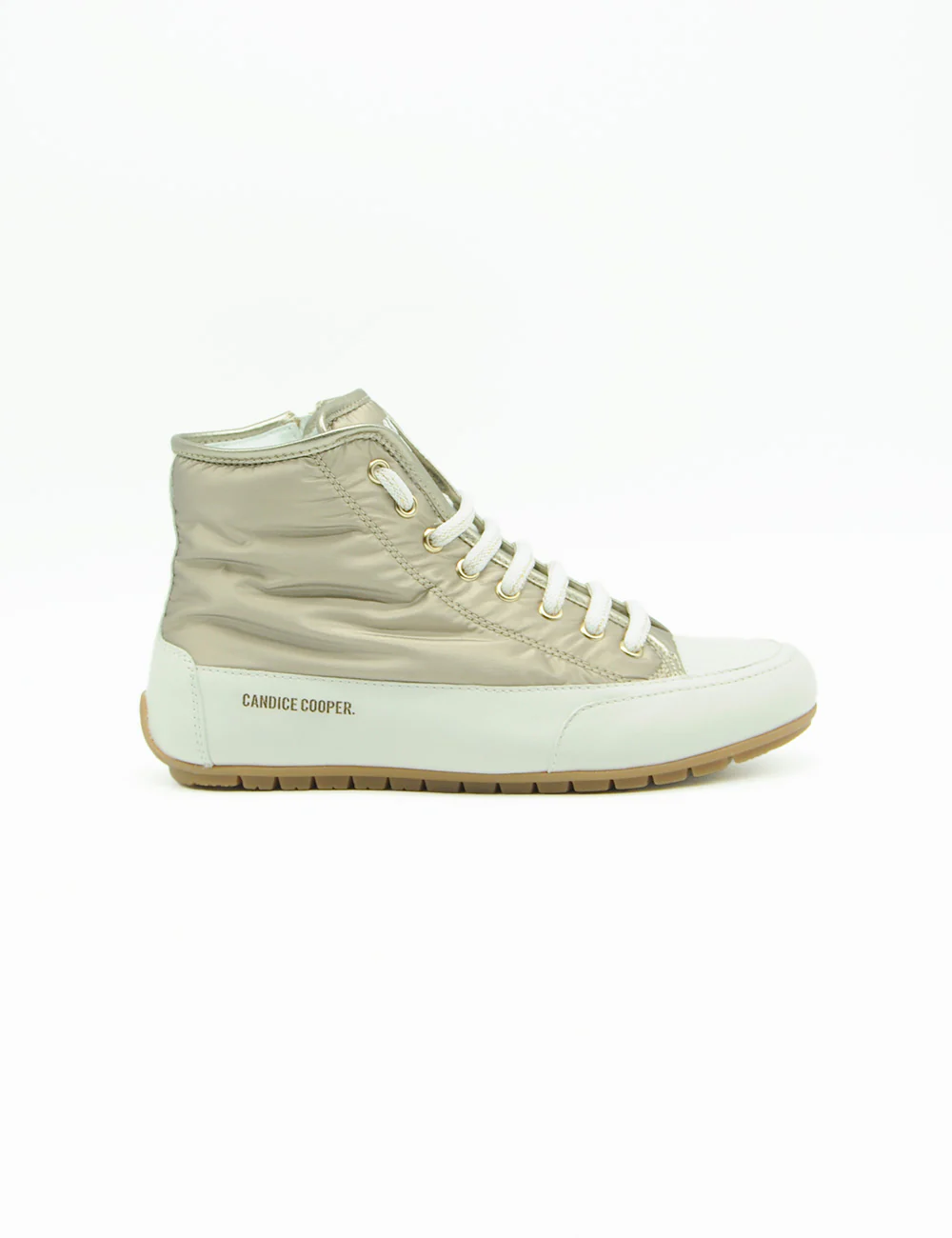 Candice Cooper Sneakers Plus 102 Bord, sneakers alte in tessuto tecnico color platino con inserto in pelle