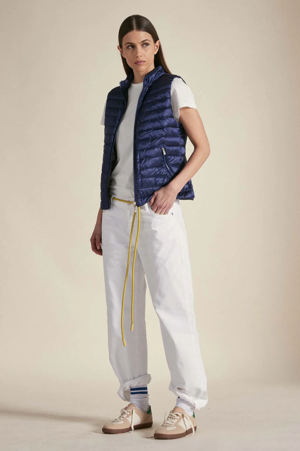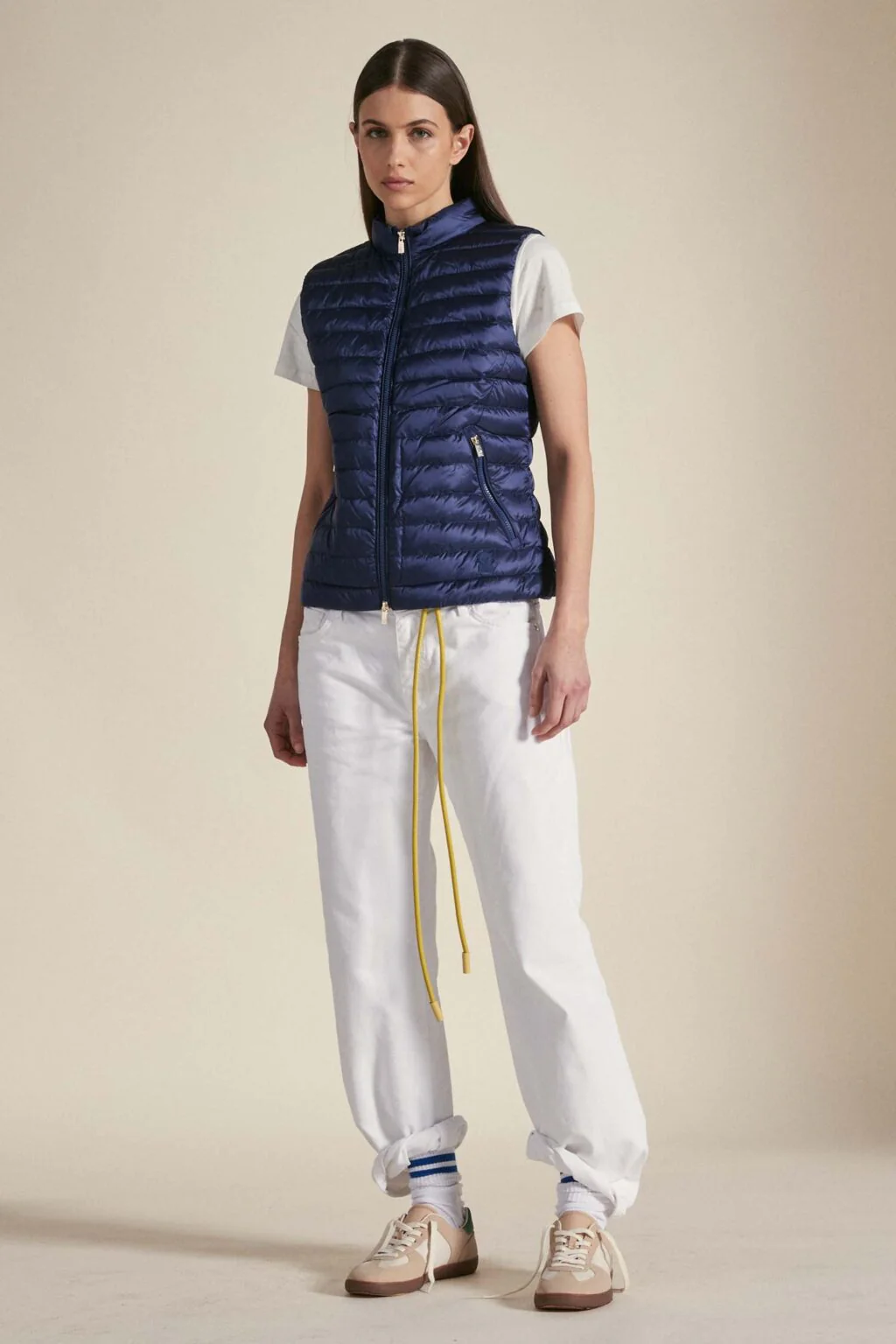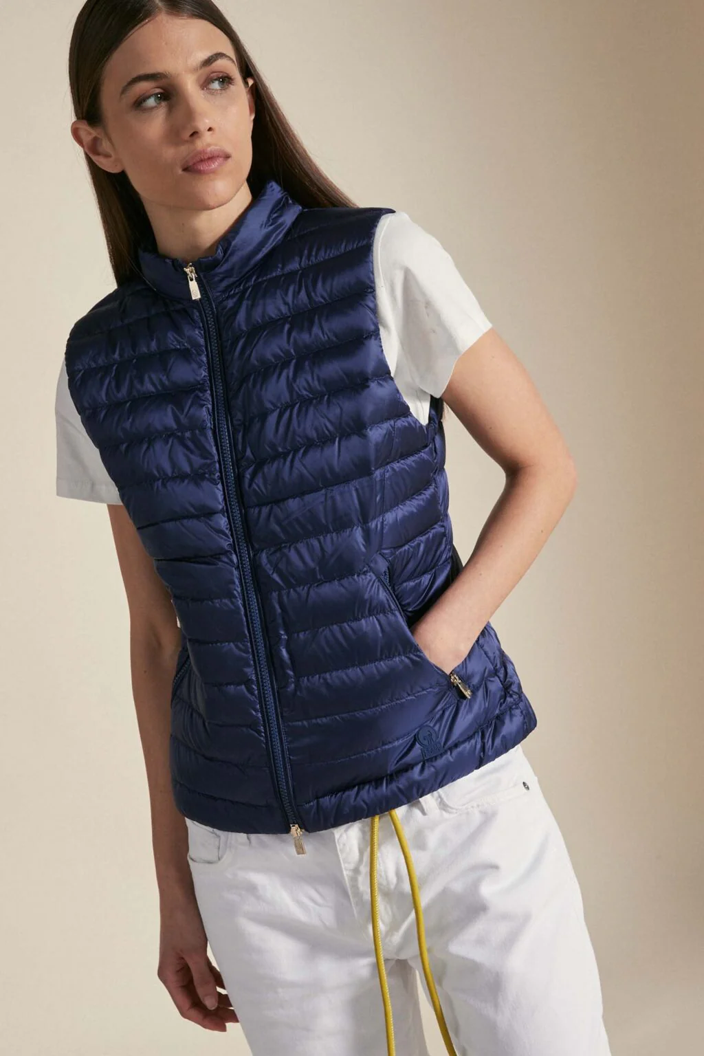 PAPRIKA โ Gilet realizzato in tessuto leggero nylon cal e caratterizzato da imbottitura in vera piuma naturale certificata 800 fill power.