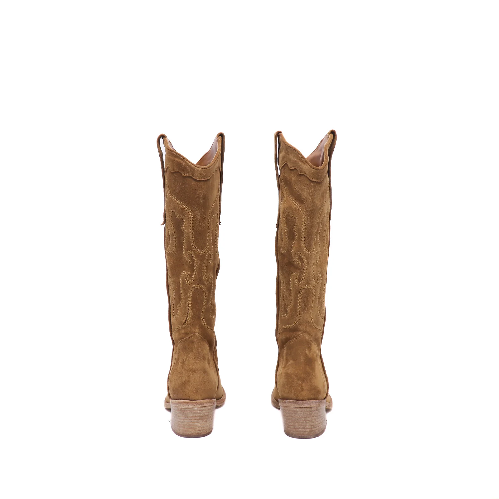 Stivale donna in camoscio cognac stile texano con ricami