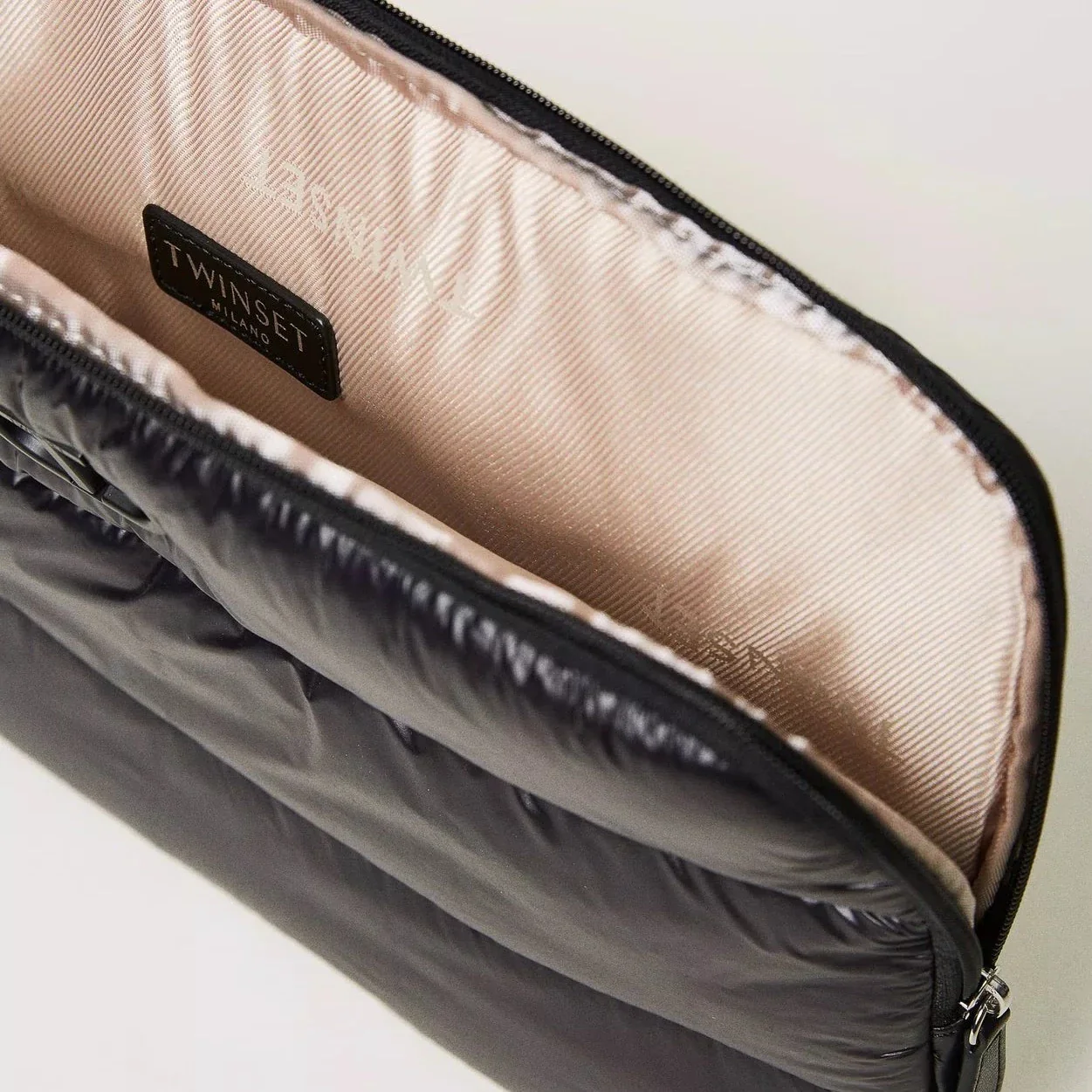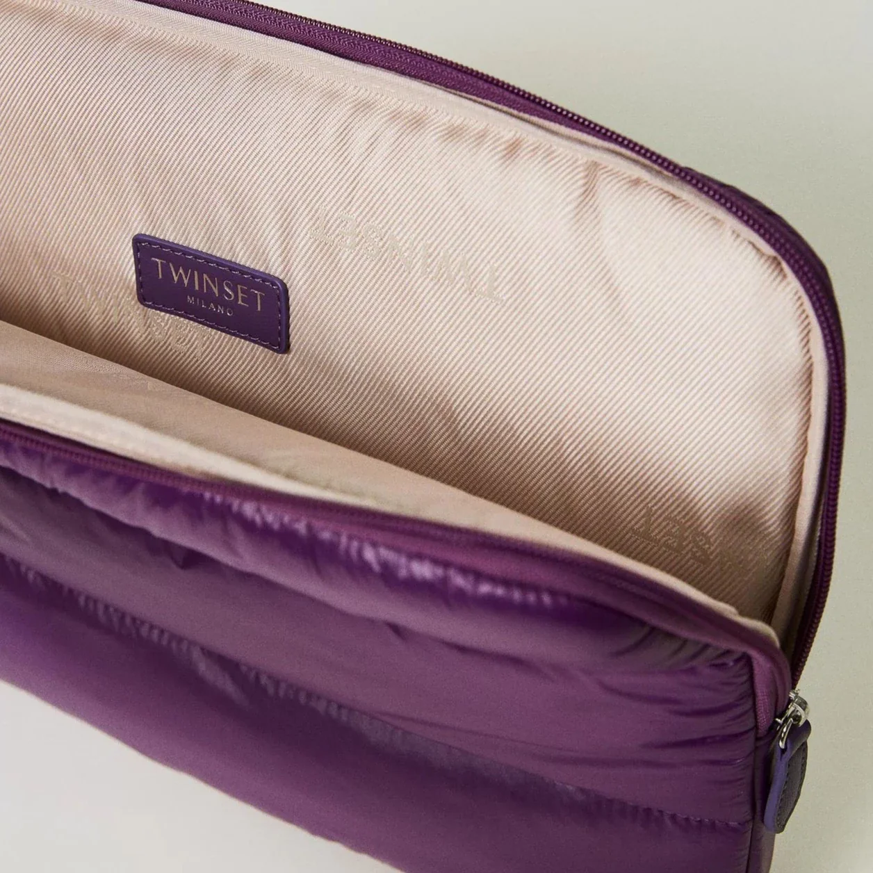 Custodia per laptop e tablet 13′ e 14′ ‘Lila Ski’ in nylon leggero e impermeabile, imbottito e trapuntato con logo Oval T e zip.