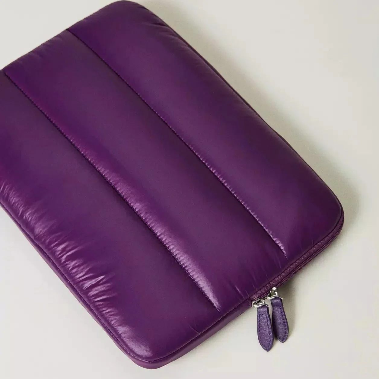 Una custodia di carattere, perfetta anche come idea regalo. Non farti sfuggire la laptop e tablet case โLila Skiโ in nylon leggero, brillante e impermeabile, trapuntato e imbottito, adatta a dispositivi di 13′ e 14′. Ha chiusura con zip a doppio scorrimento e il logo Oval T verniciato in tono. Ideale da infilare nello zaino โLila Skiโ in coordinato.