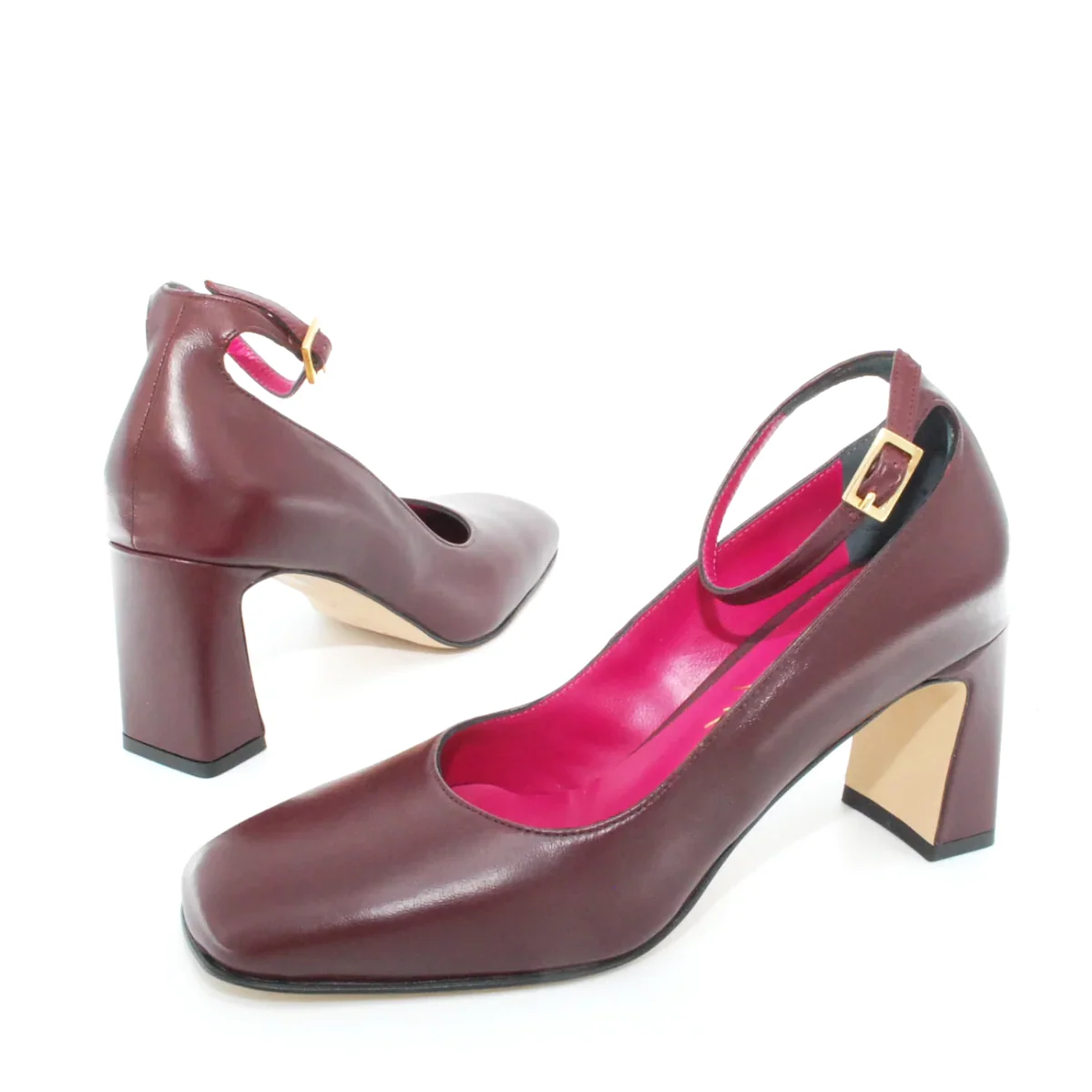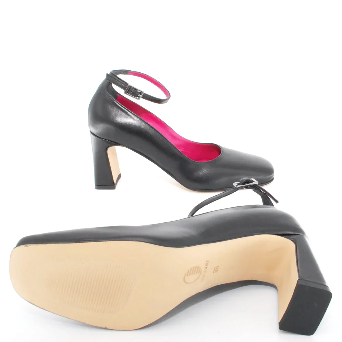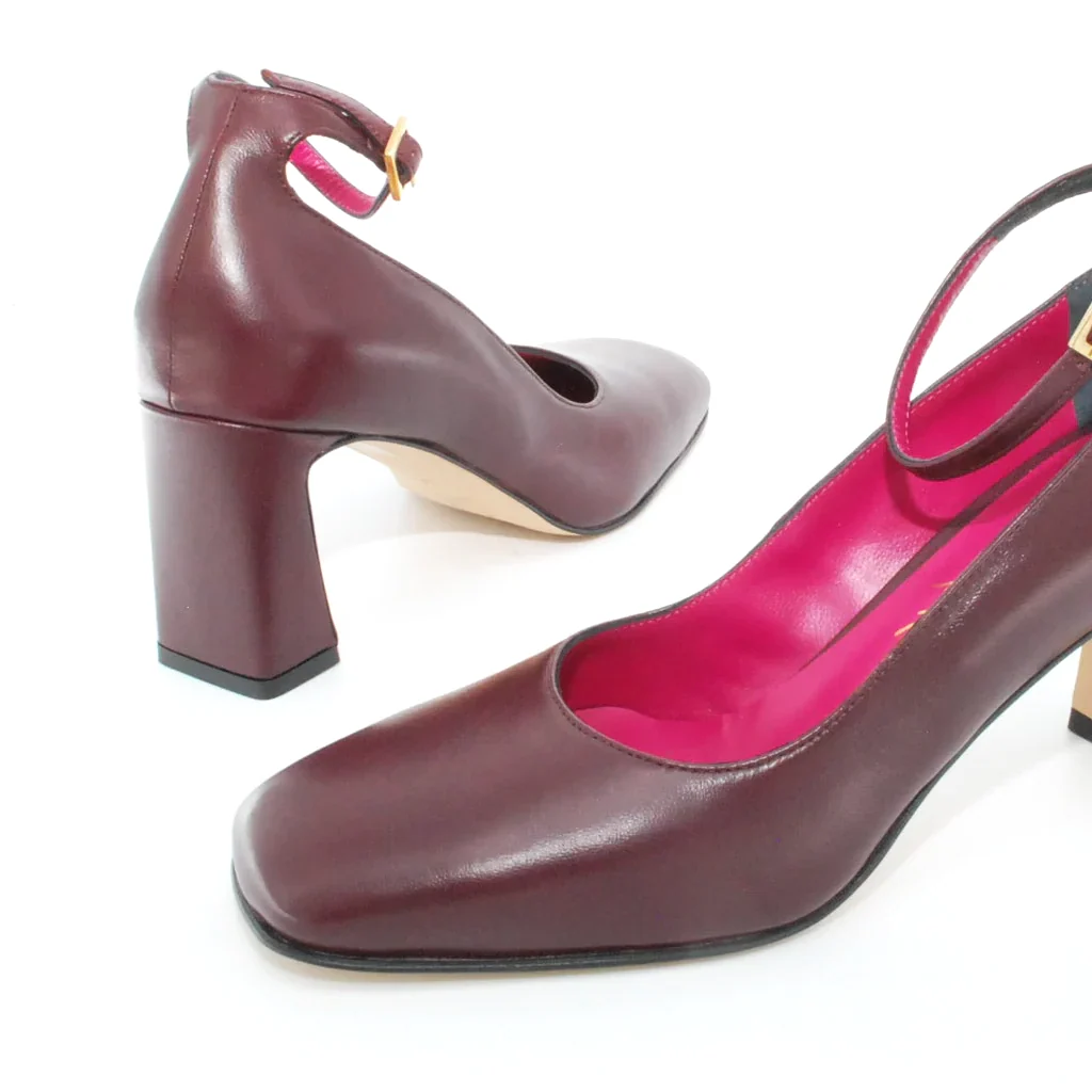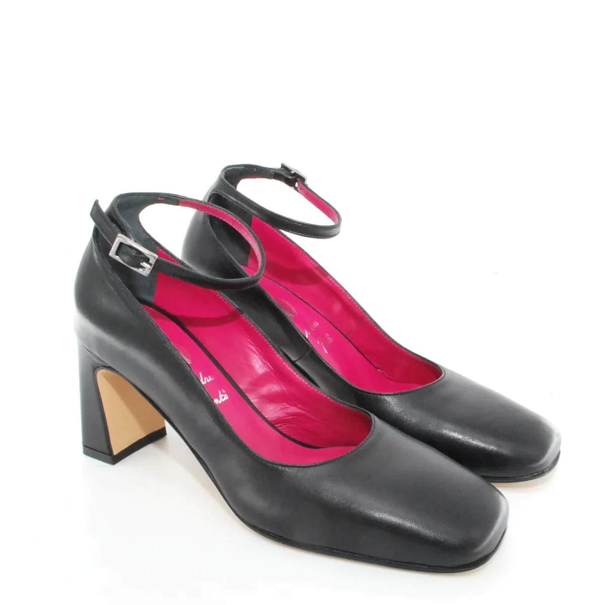 Tomaia in pelle Fodera in pelle Soletta in pelle Suola in gomma antiscivolo Cinturino regolabile con fibbia Tacco rivestito in pelle Altezza tacco 75 mm Sotto tacco in gomma Qualità Artigianale Italiana
