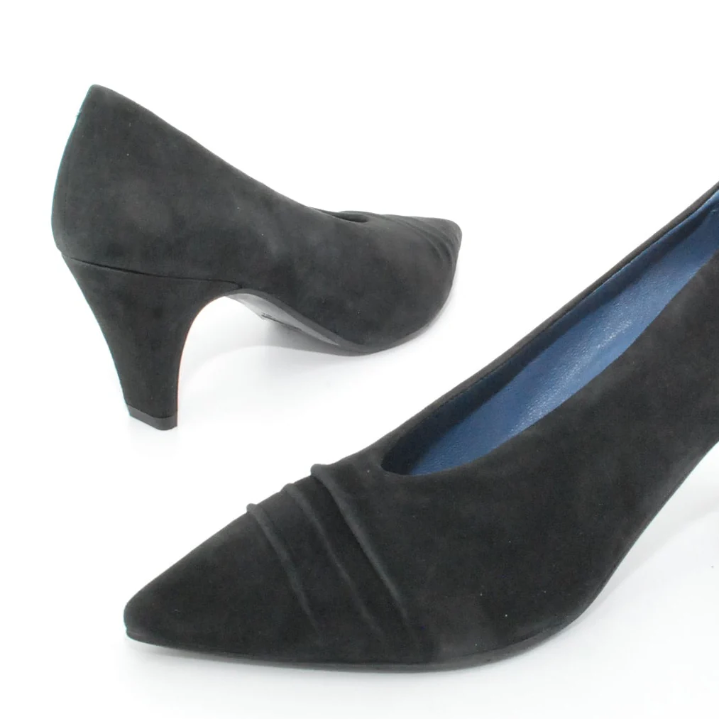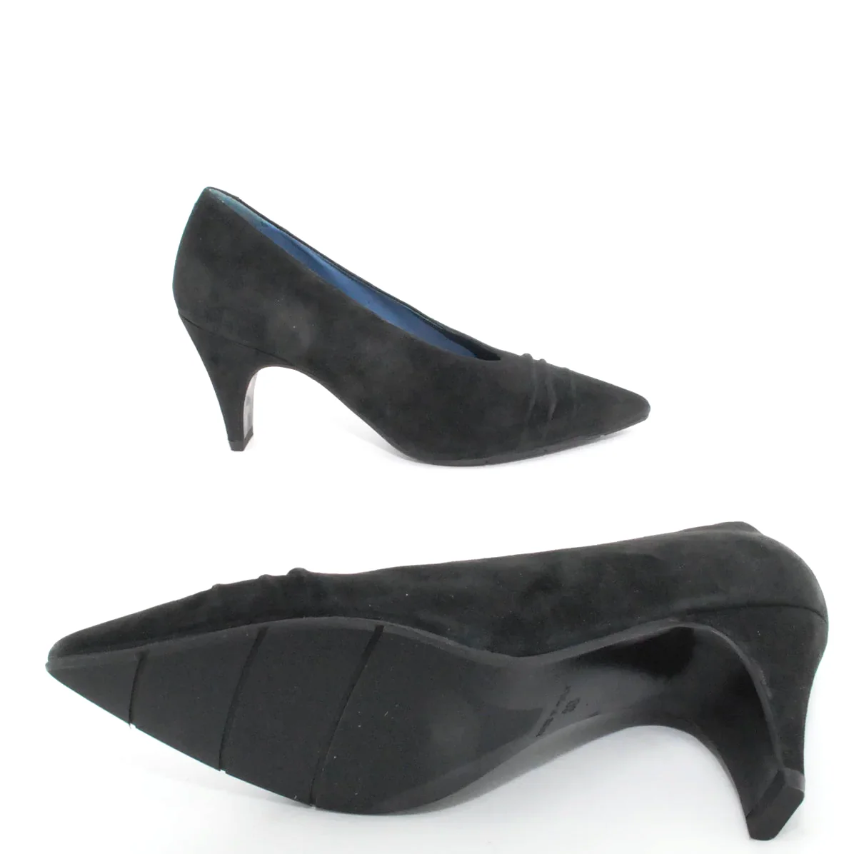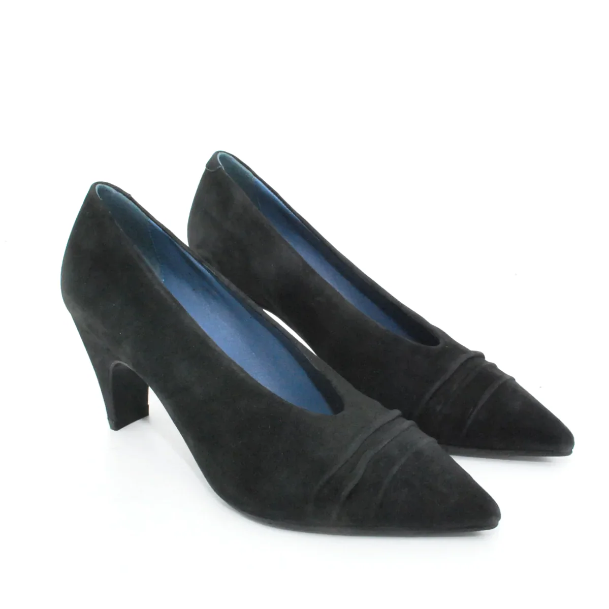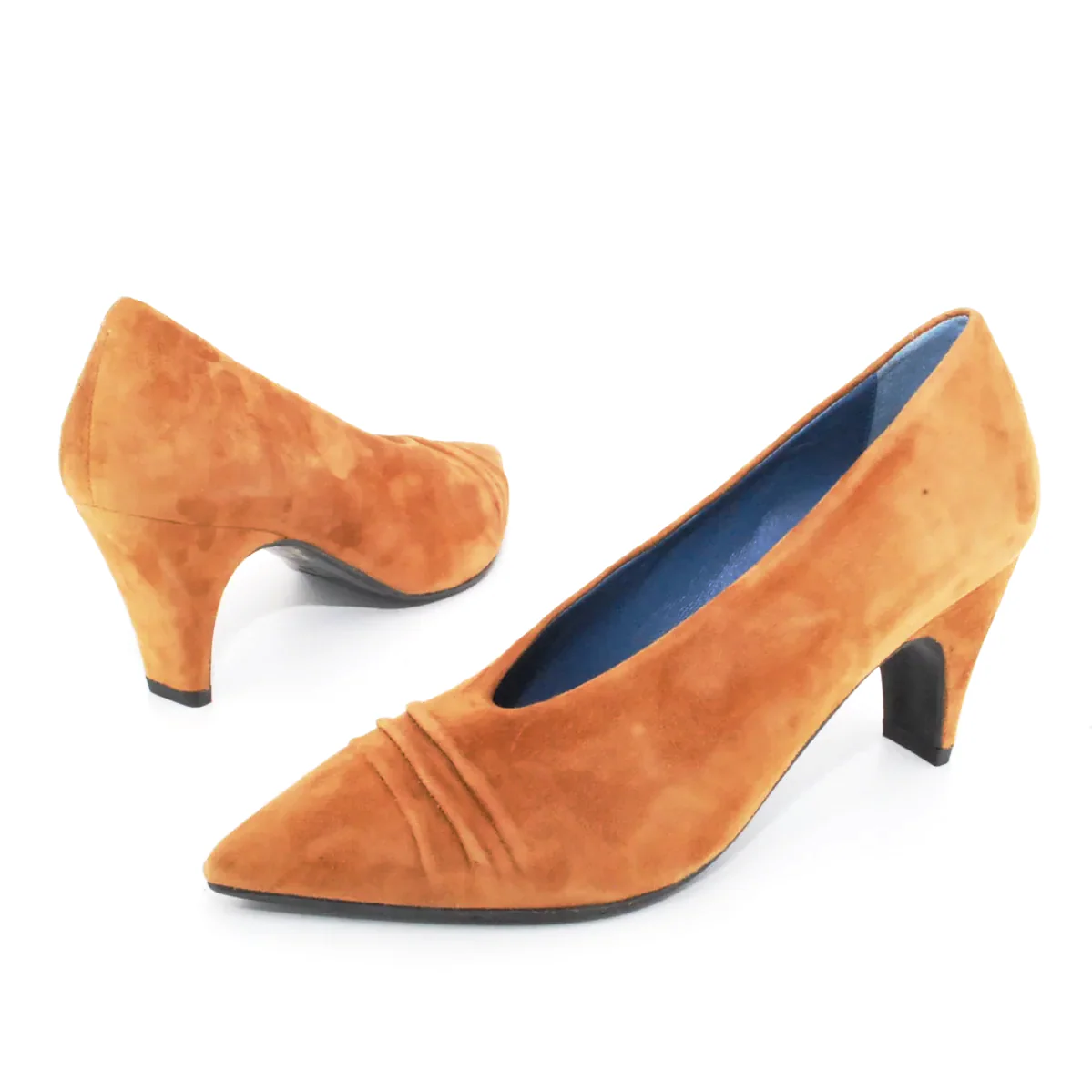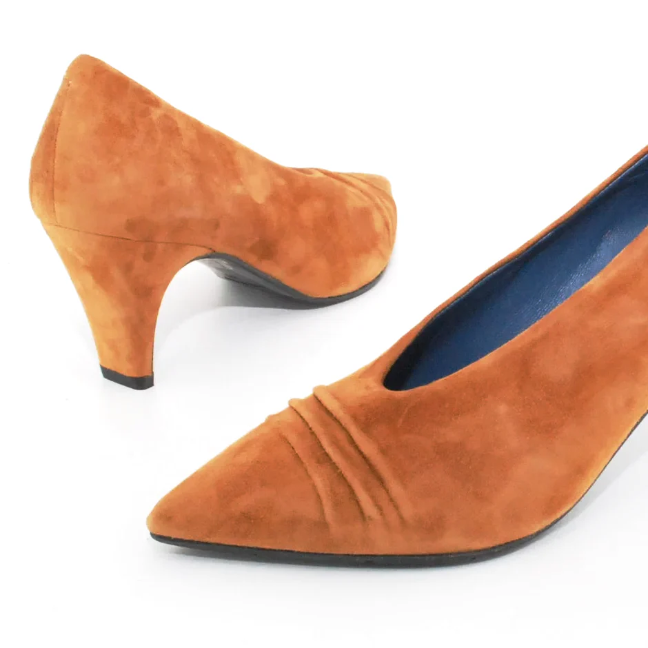 Tomaia in camoscio Fodera in pelle Soletta in pelle Suola in gomma antiscivolo Tacco rivestito in camoscio Altezza tacco 80 m Sotto tacco in gomma Qualità Artigianale Italiana