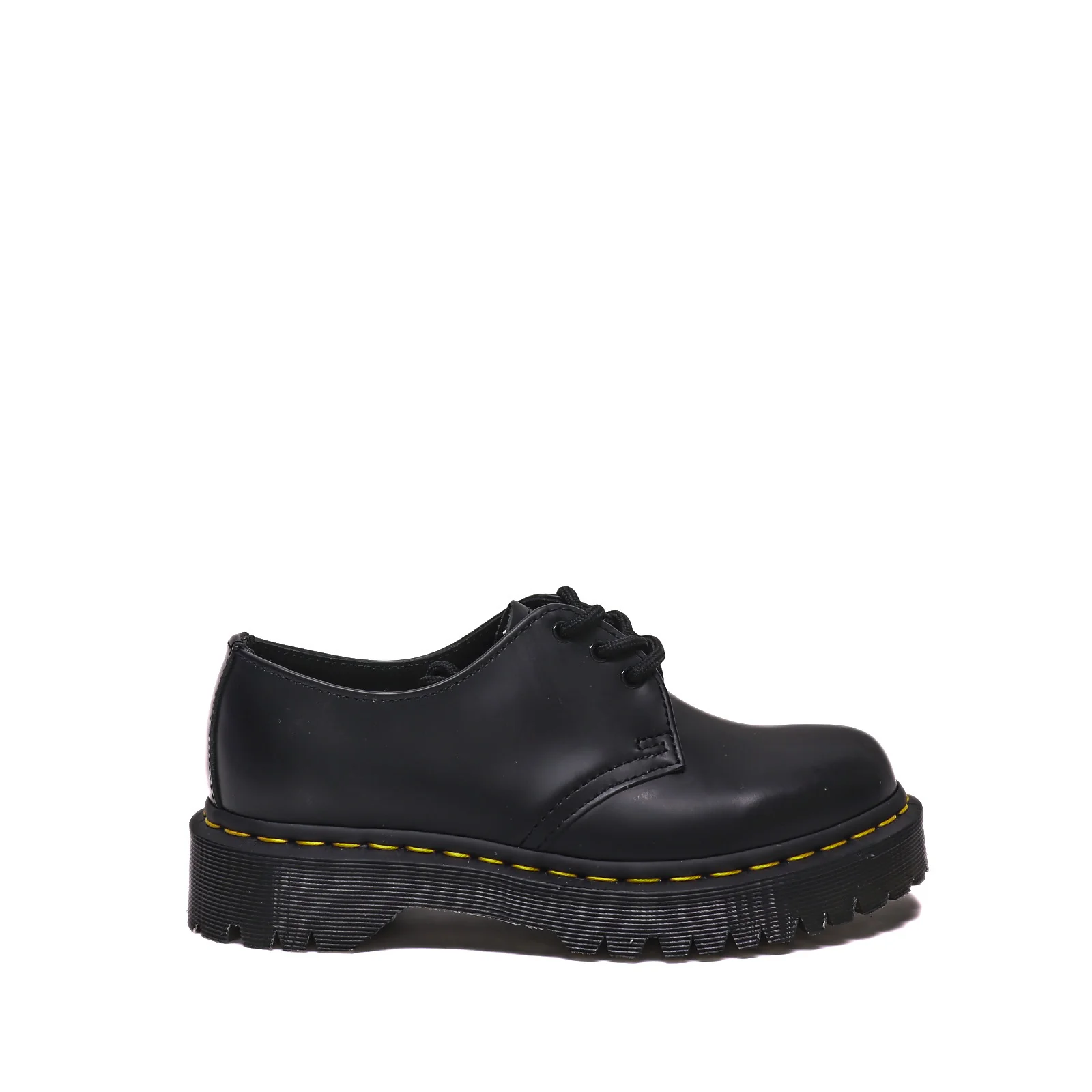 Allacciata 3 Fori in pelle nera con CUCITURE GIALLEFodera in pelleSuola in gommaCalzata regolareID Prodotto : 1461BEX BLACK SMOOT (21084001)SKU: 1461BX