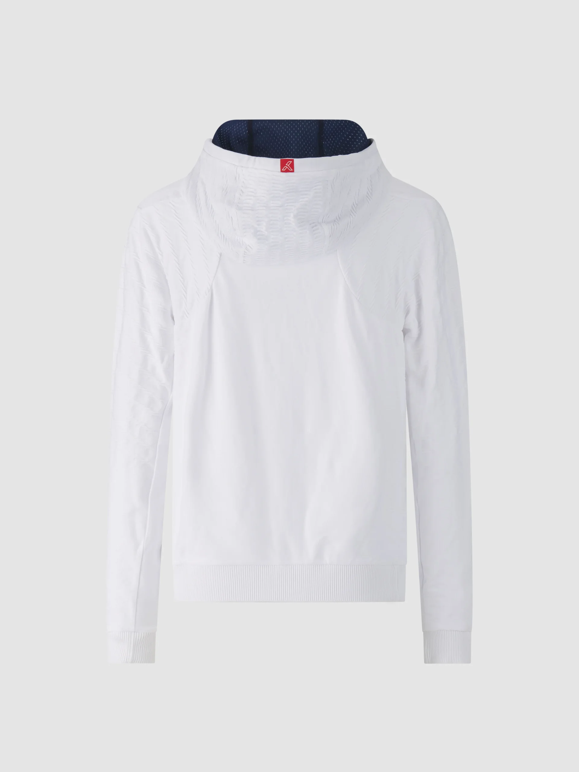 Strato tecnico ad alte prestazioni, la Felpa full zip con cappuccio Skipper รจ ideale per barca e cittร . Con Haloflexโข per termoregolazione ottimale e bio-fibra Natex, 25% piรน leggera e 50% piรน veloce ad asciugare. Design innovativo senza cuciture per libertร di movimento e tasche in rete per un tocco dinamico.