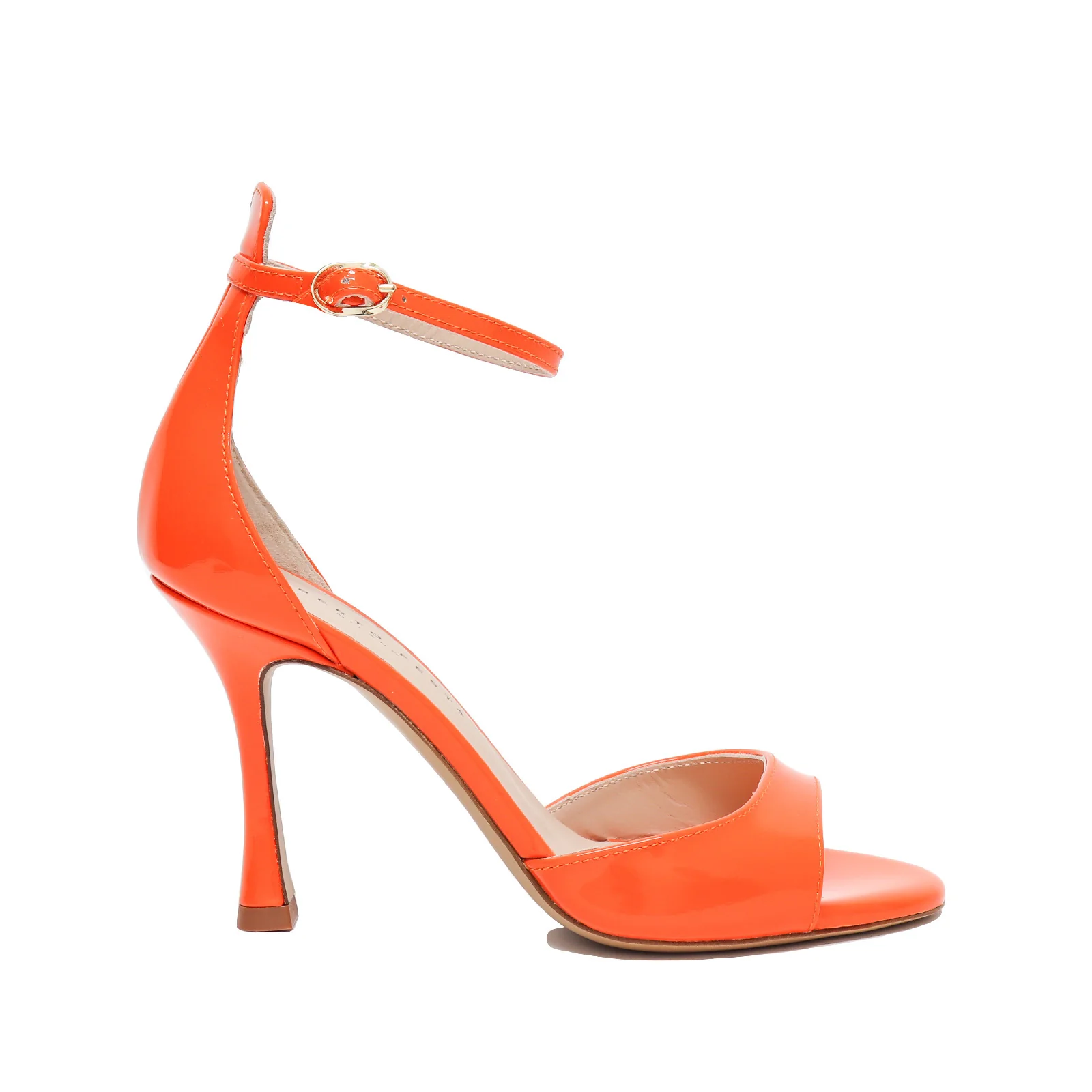 Sandalo in pelle verniciata arancione con cinturino regolabile in cavigliaFodera in pelleSuoal in cuoioTacco 10 cmCalzata regolareProdotto in ItaliaID Prodotto: JUNE VERNICE SPRITZSKU : JUNE-S