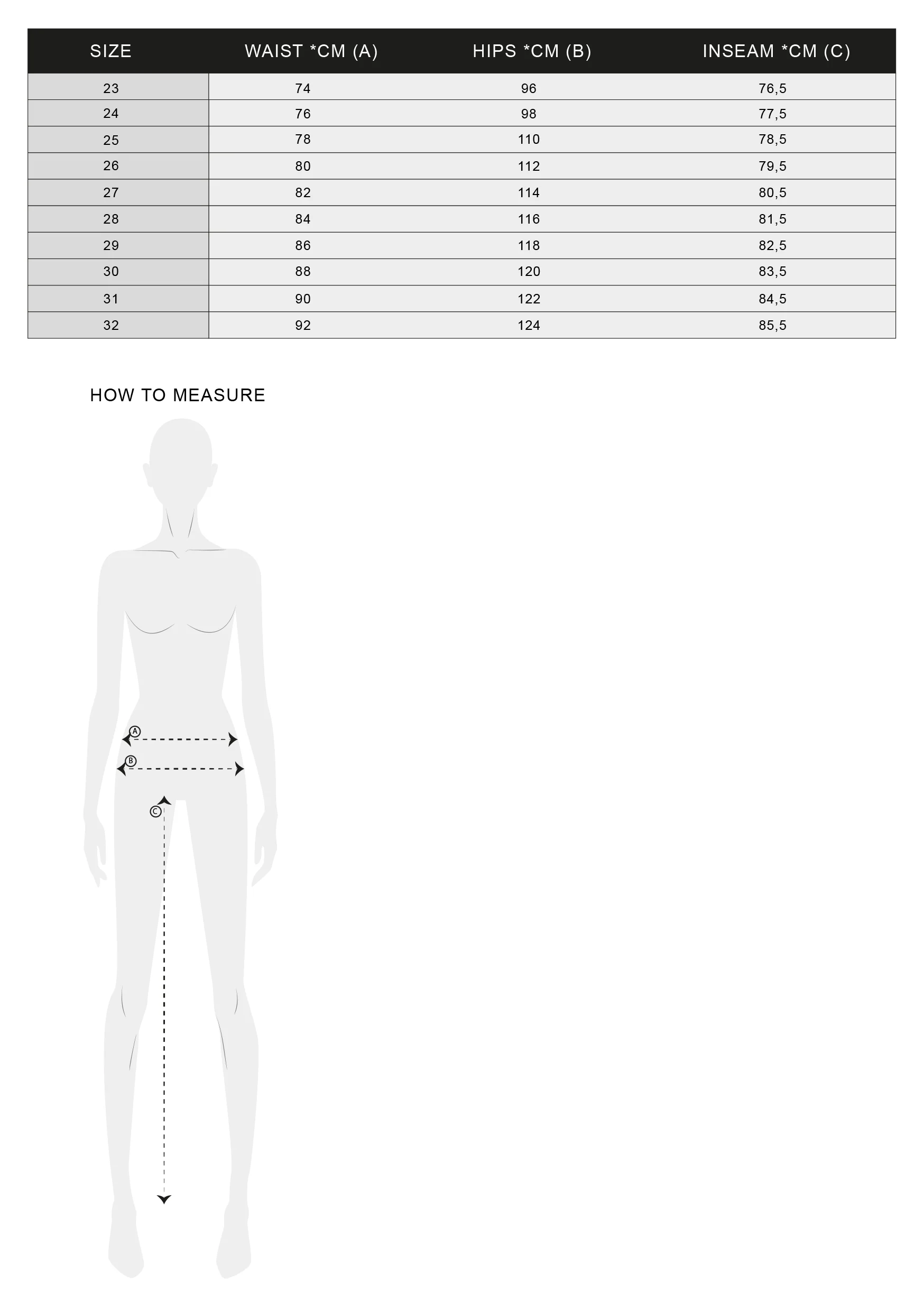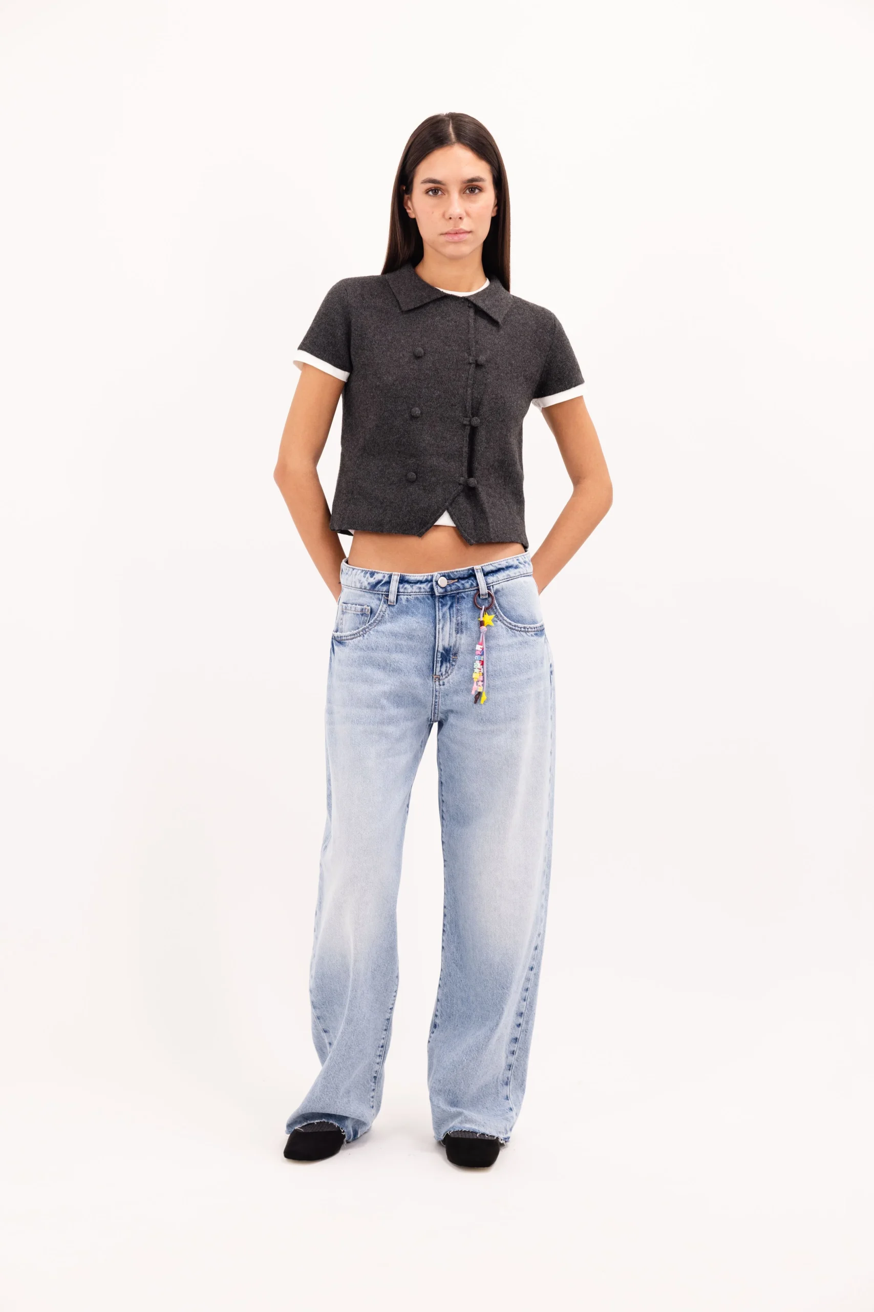 La nostra modella รจ alta 178 cm (5’10”) e indossa la taglia 26.