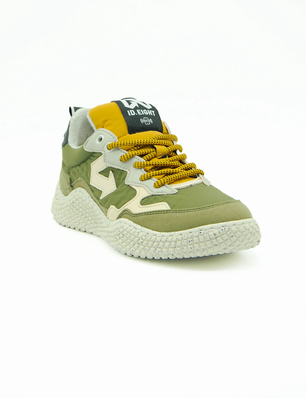 ID EIGHT Sneakers Hana Sage Le ID EIGHT Sneakers Hana Sage presentano un elegante verde salvia abbinato a dettagli bianchi, offrendo uno stile contemporaneo e adattabile. Questo modello trae ispirazione dalla natura, combinando poliestere riciclato idrorepellente con materiali innovativi come Uppeal (derivato dalla mela) e BioVeg (a base di mais). Il sottopiede, progettato per essere […]