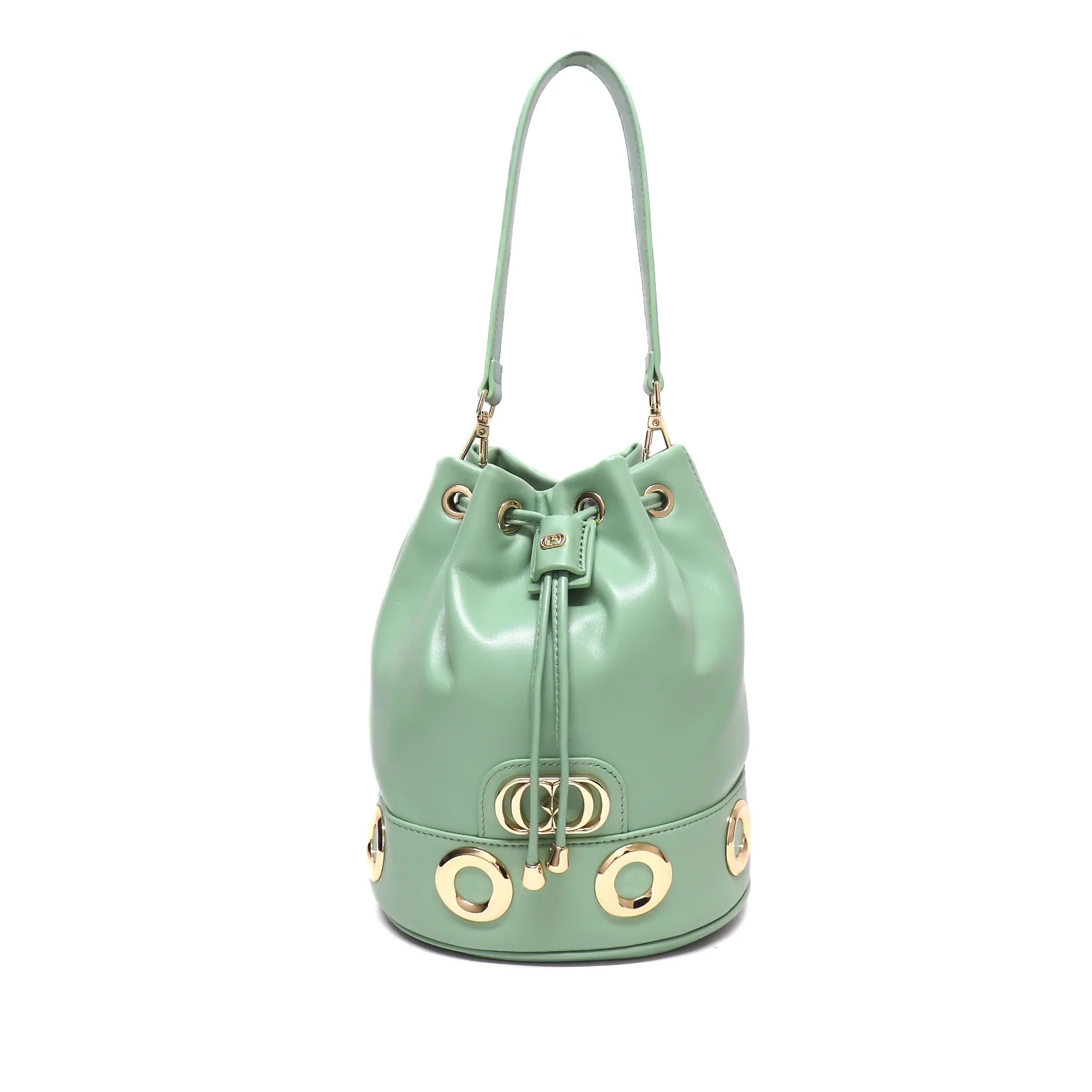 Secchiello La Carrie Bag The Eye.Borsa in vera pelle con logo e anelli dorati. Predisposta per utilizzo a tracolla e a mano.Chiusura con laccetti. Tasca singola interna. Dimensioni: 20x20x25cmID Prodotto: 131P-MX-390 SAGESKU : MX-390S