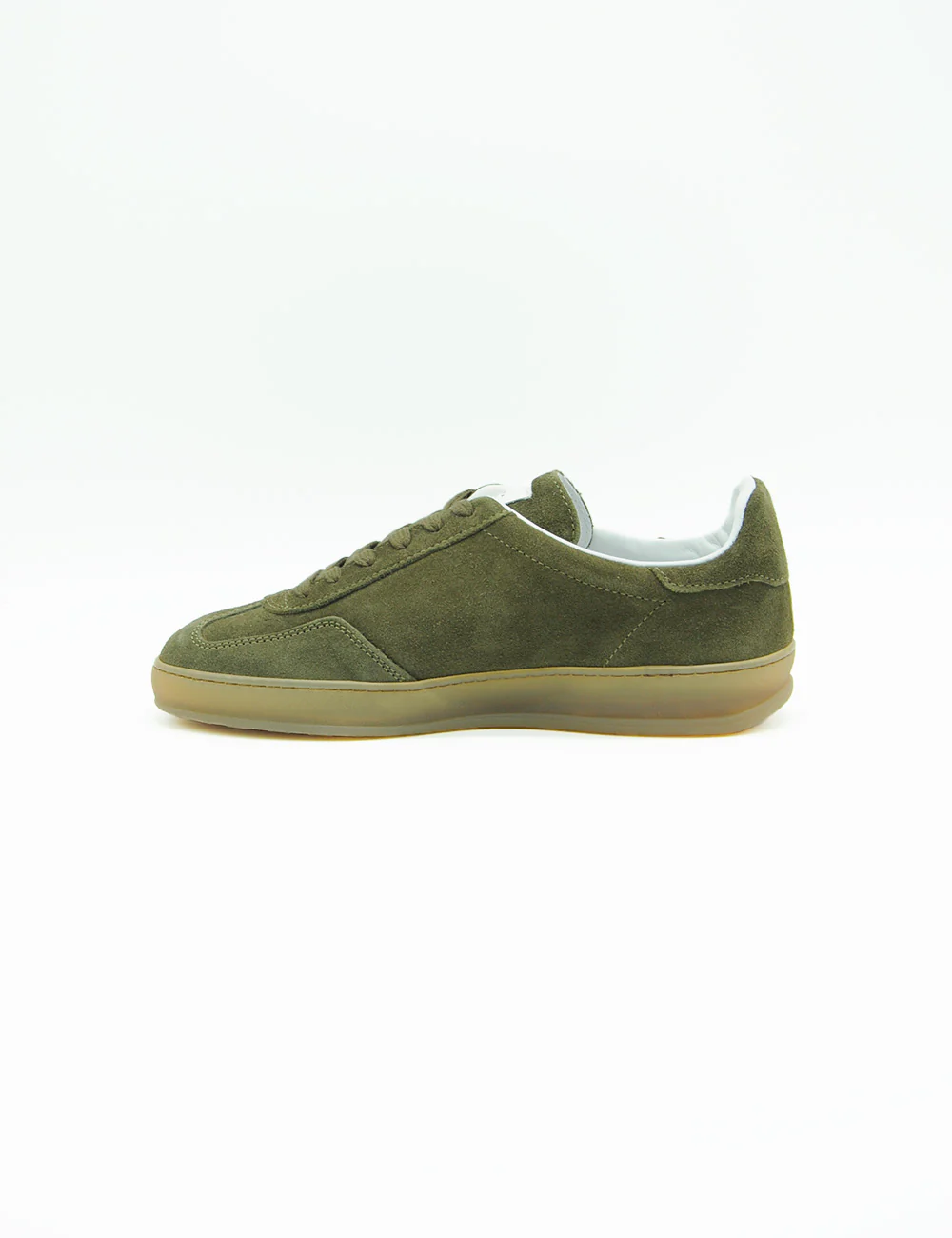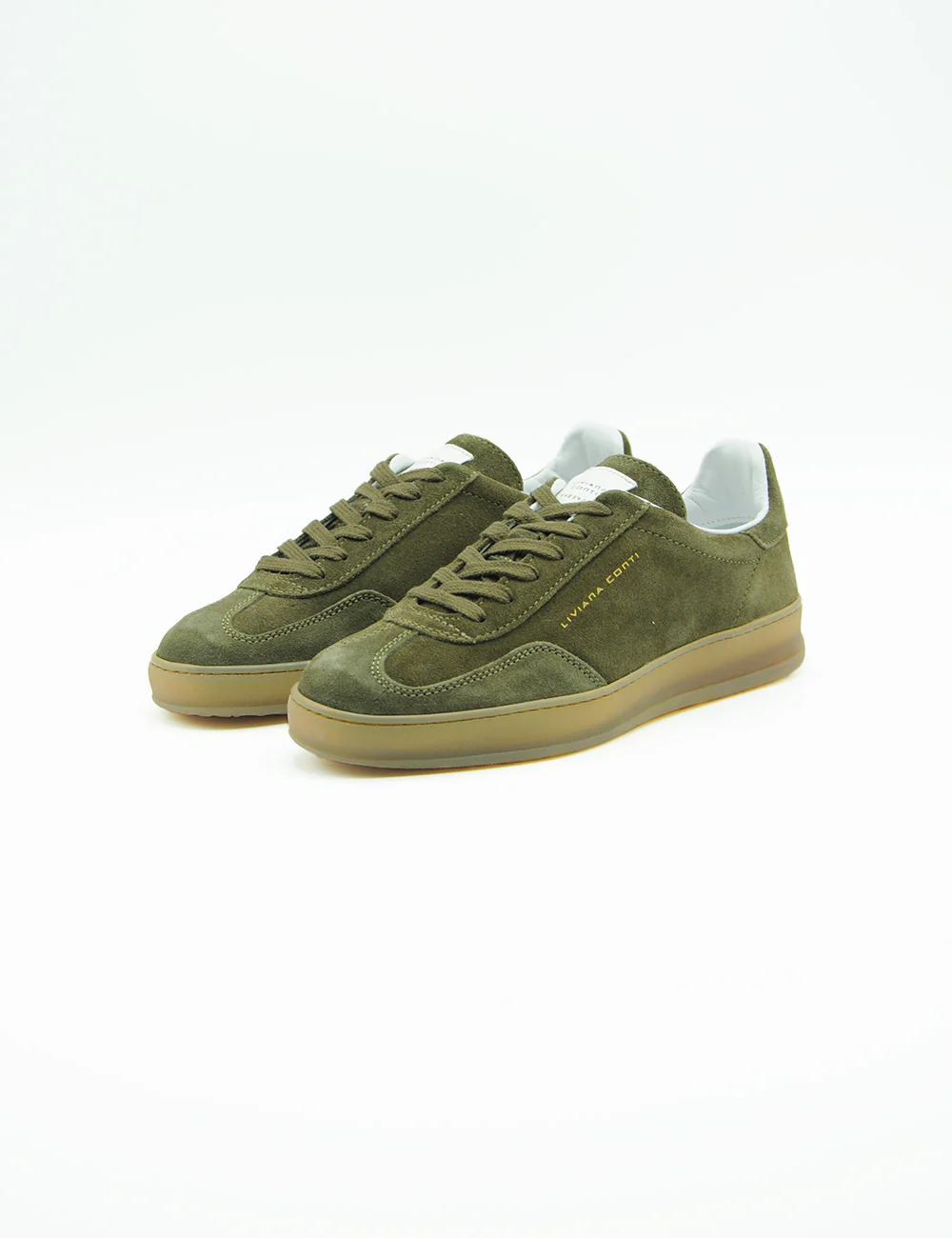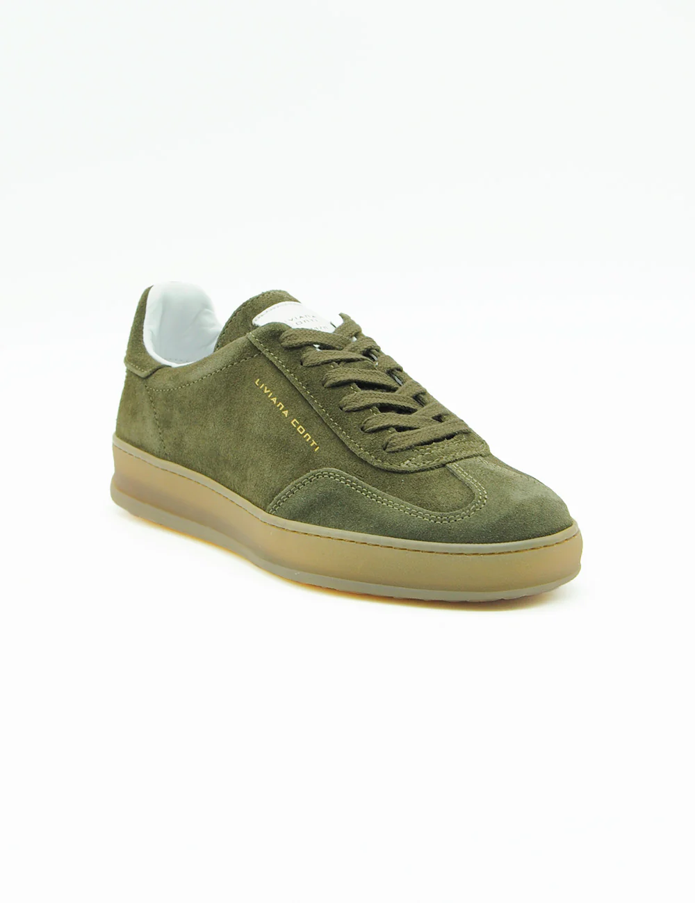 Liviana Conti Sneakers Verde Militare, comode sneakers realizzate in morbida pelle suede con fondo in gomma e tomaia logata. Foderate in pelle.