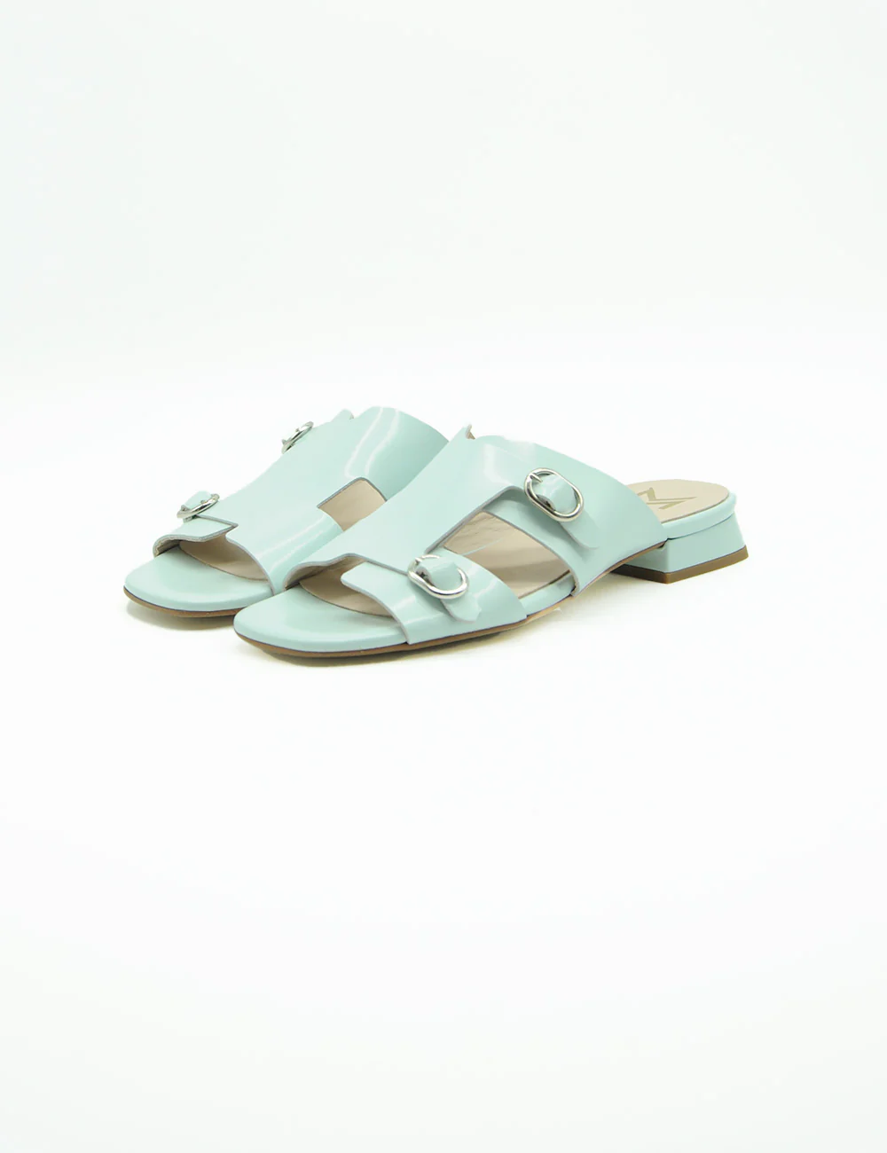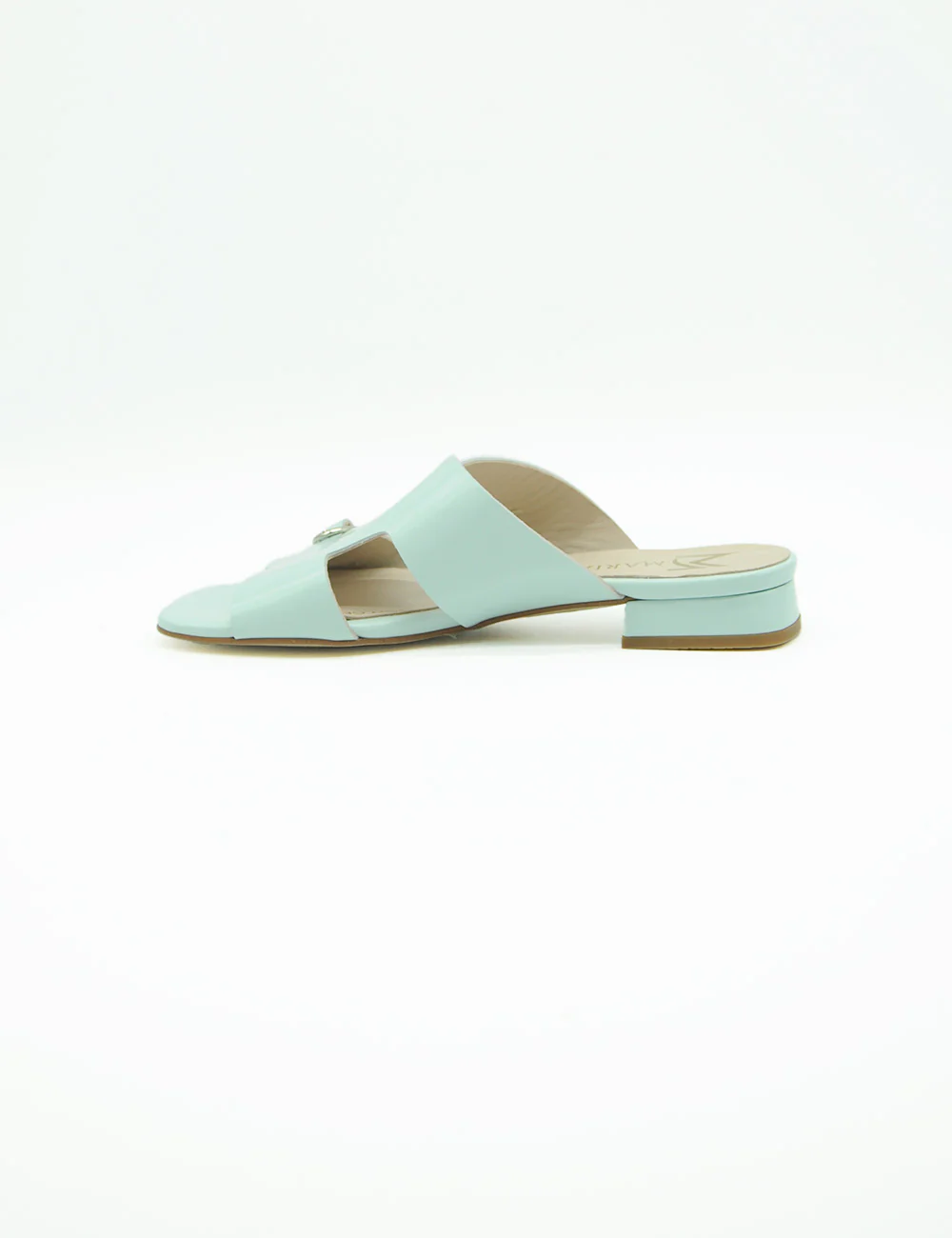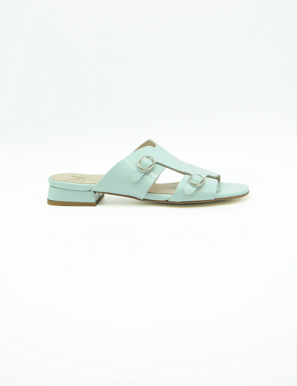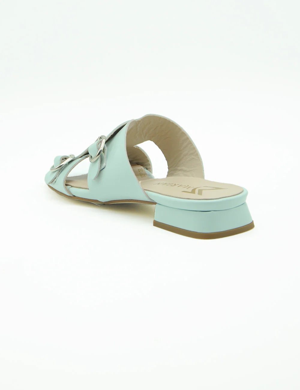 Marian Sandalo Cielo, sandalo in pelle caratterizzato da una fascia lavorata a taglio vivo arricchita da due fibbie e punta arrotondata. Sottopiede in soft gel per rendere questa calzatura confortevole per tutto l’arco della giornata