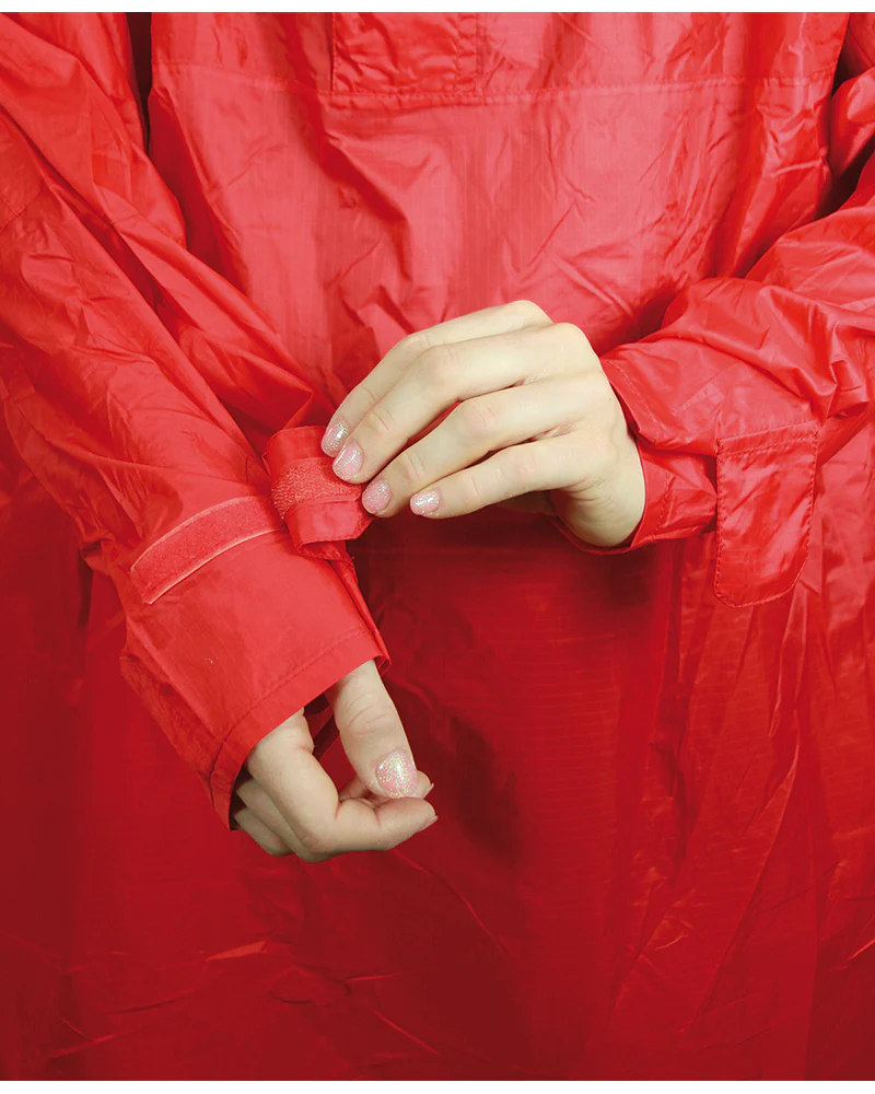 Poncho super leggero, impermeabile, termosaldato su tutte le cuciture. L’impermeabilitร  di questo tessuto รจ di 3.000 mm Schmerber: significa che resiste alla pressione esercitata da 3.000 mm di colonna d’acqua (test standard ISO). Eโ€™ dotato di cappuccio con frontino ed elastico di chiusura e sul retro di tasca a scomparsa copri zaino. Ha velcro sulle maniche per una miglior regolazione ed รจ richiudibile in un comodo sacchetto. pesi: XS: 450 gr M: 500 gr XL: 550 gr