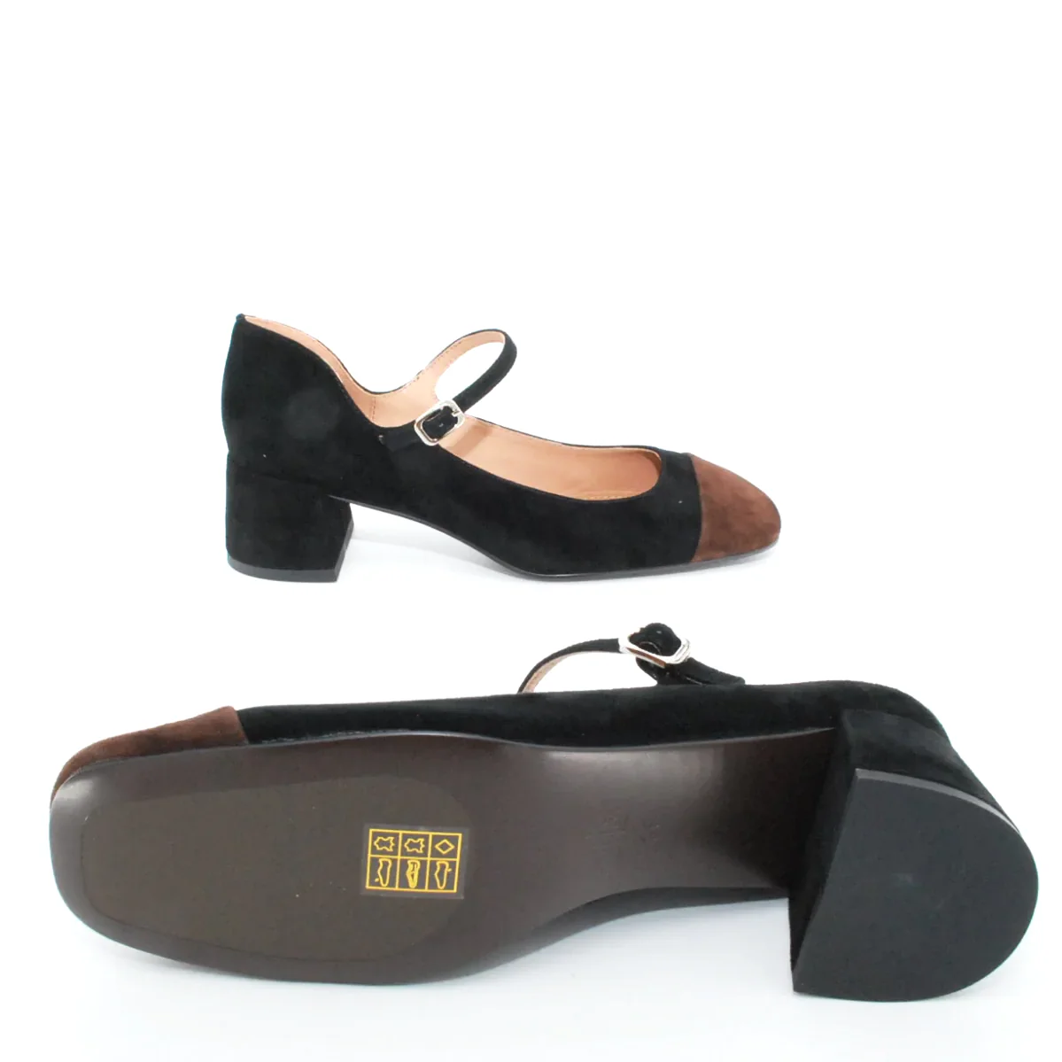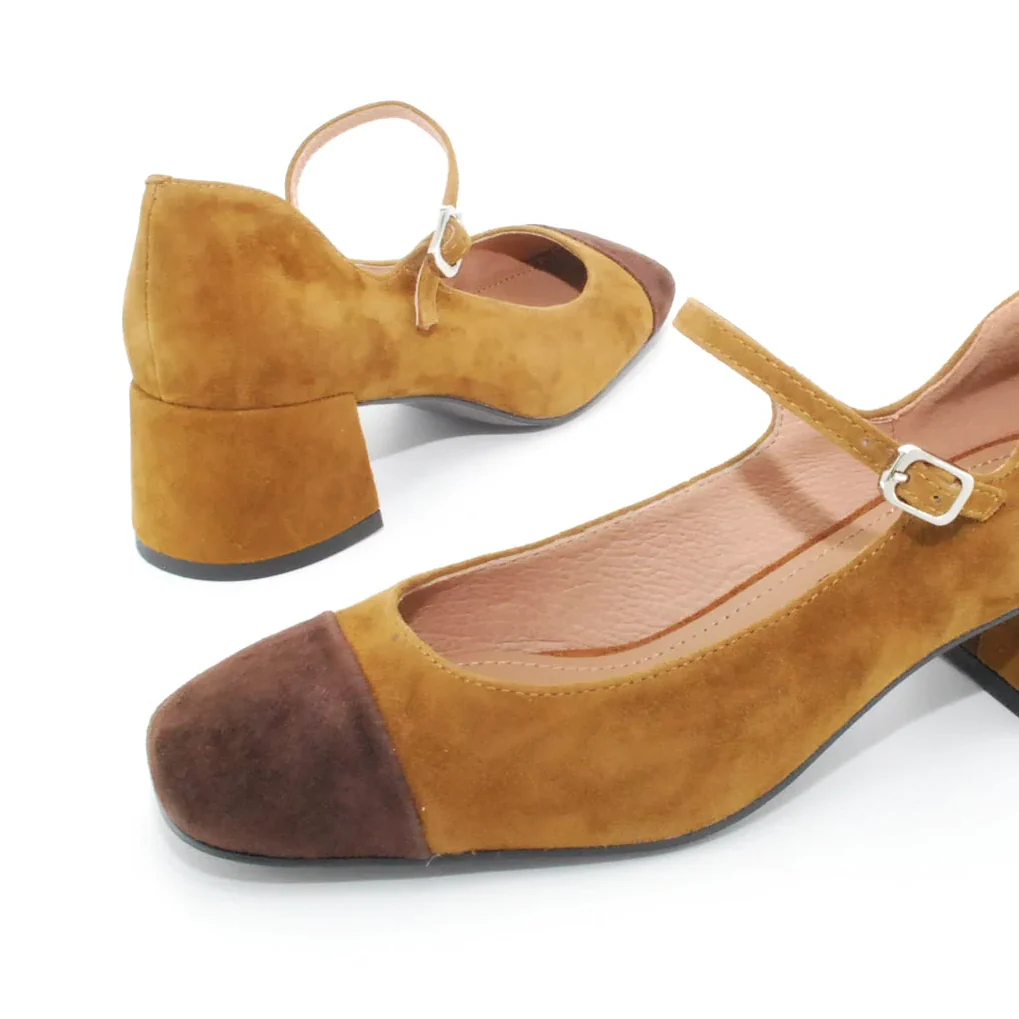 Tomaia in camoscio Fodera in pelle Soletta in pelle Cinturino regolabile con fibbia Suola in gomma antiscivolo Tacco rivestito in camoscio Altezza tacco 50 mm Sotto tacco in gomma