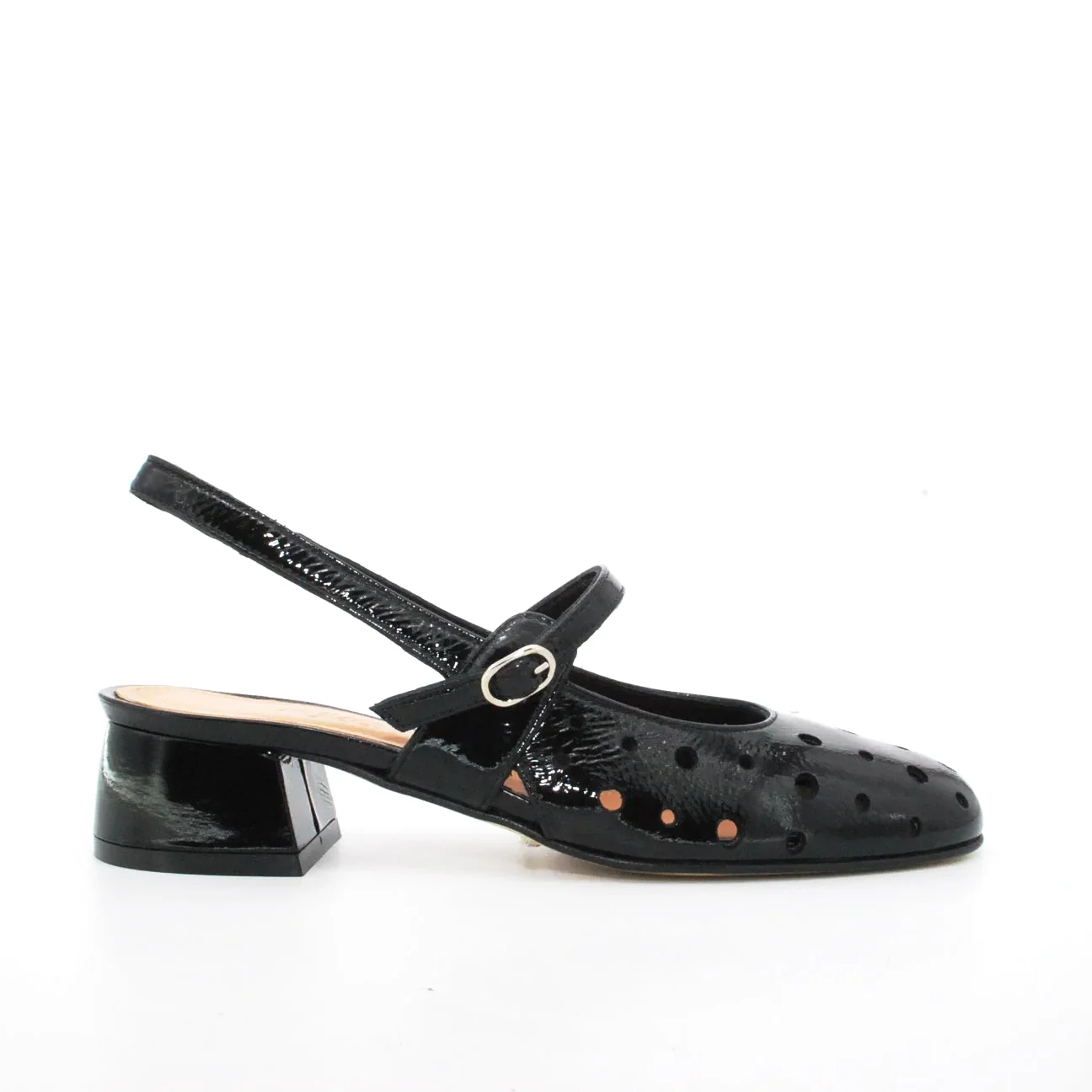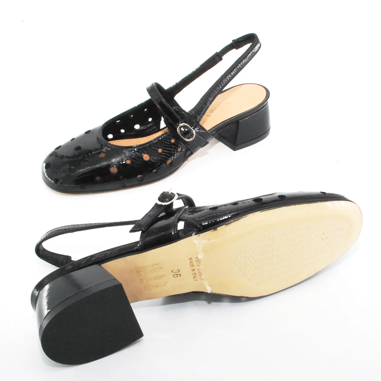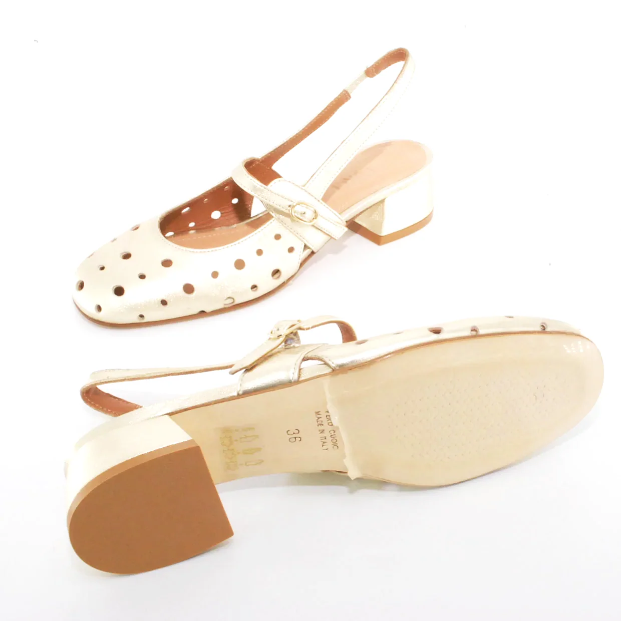 Tomaia in pelle Fodera in pelle Soletta in pelle Suola in cuoio Chiusura regolabile con fibbia Listino regolabile con elastico Tacco rivestito in pelle Altezza tacco 40 mm Sotto tacco in gomma Qualitร artigianale Italiana per NIKA