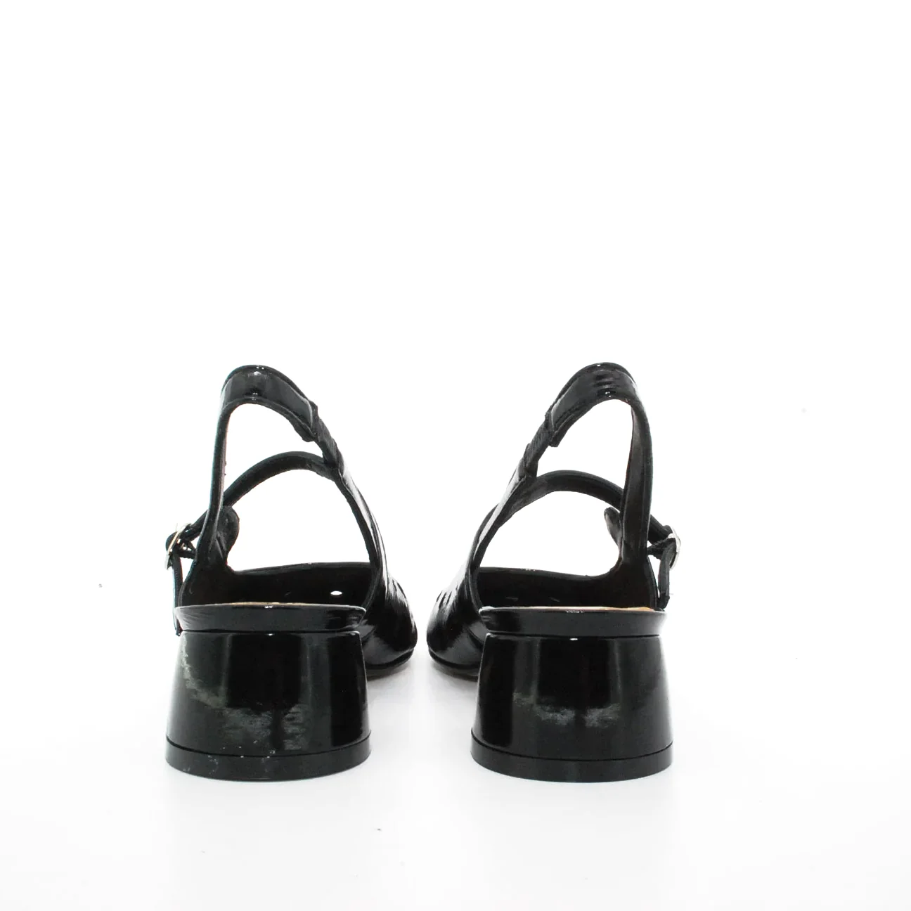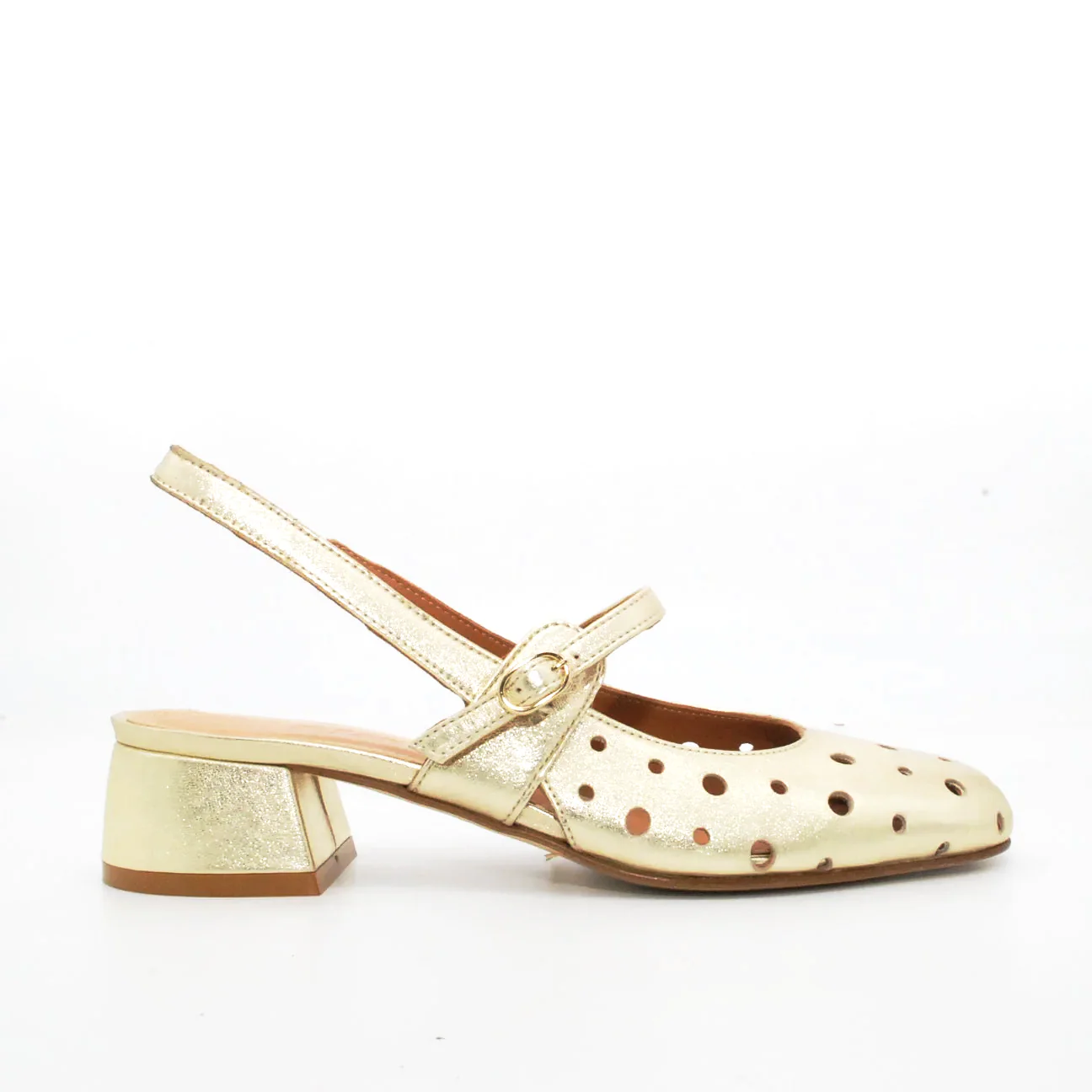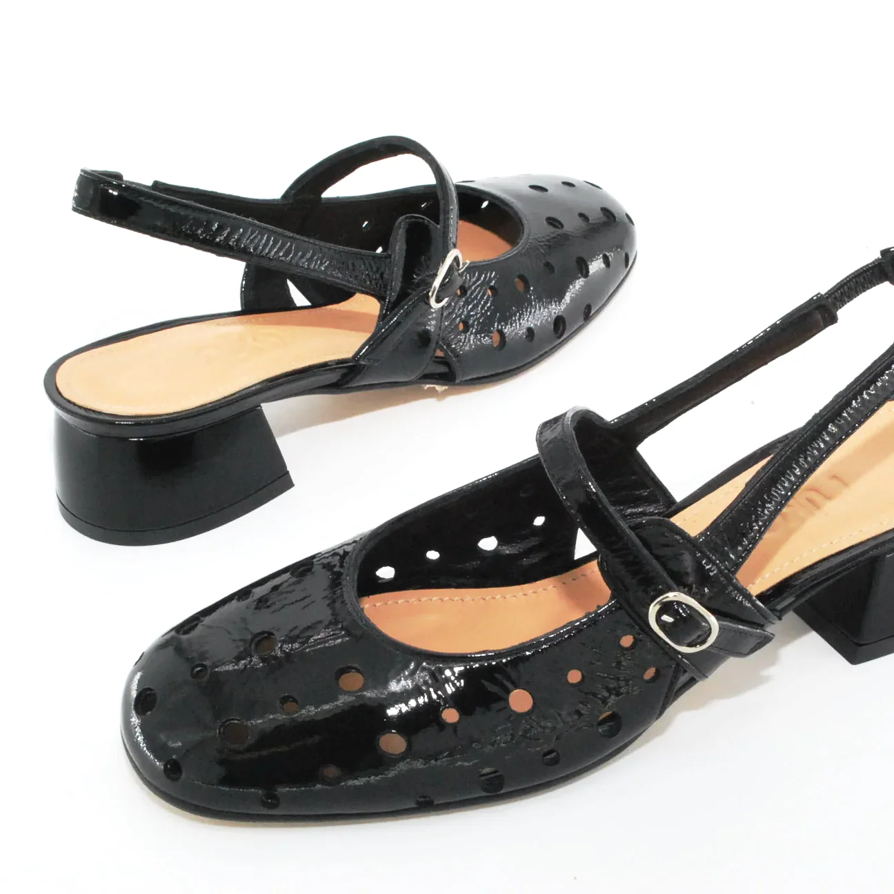 Tomaia in pelle Fodera in pelle Soletta in pelle Suola in cuoio Chiusura regolabile con fibbia Listino regolabile con elastico Tacco rivestito in pelle Altezza tacco 40 mm Sotto tacco in gomma Qualitร artigianale Italiana per NIKA