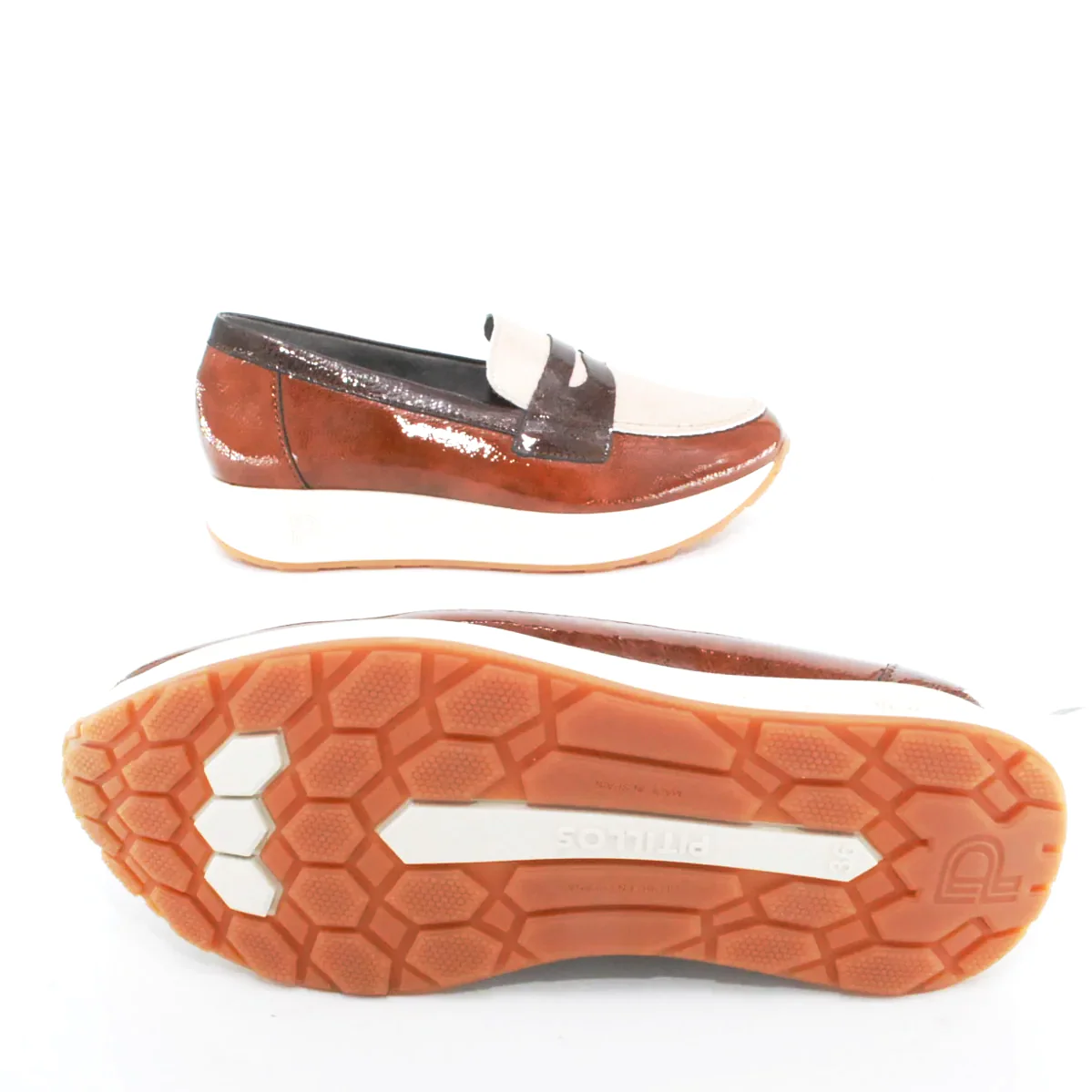 Tomaia in pelle verniciata Fodera in pelle Soletta in pelle Soletta estraibile Suola in gomma antiscivolo Applicazione mascherina in pelle Altezza suola 40 mm