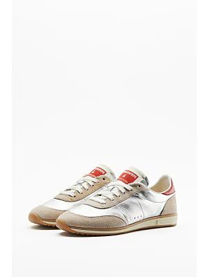 Sneaker in pelle laminata Pelle laminata con dettagli in nappa e suede e lavaggio stoneLabel in tessuto cucita sulla linguettaLettering sulla scarpa destraInterno foderatoSuola in gomma running bicoloreCOLORE : FG69 silver redID Prodotto : 8Z0135/L154/FG69 SILVER REDSKU : 0135SR