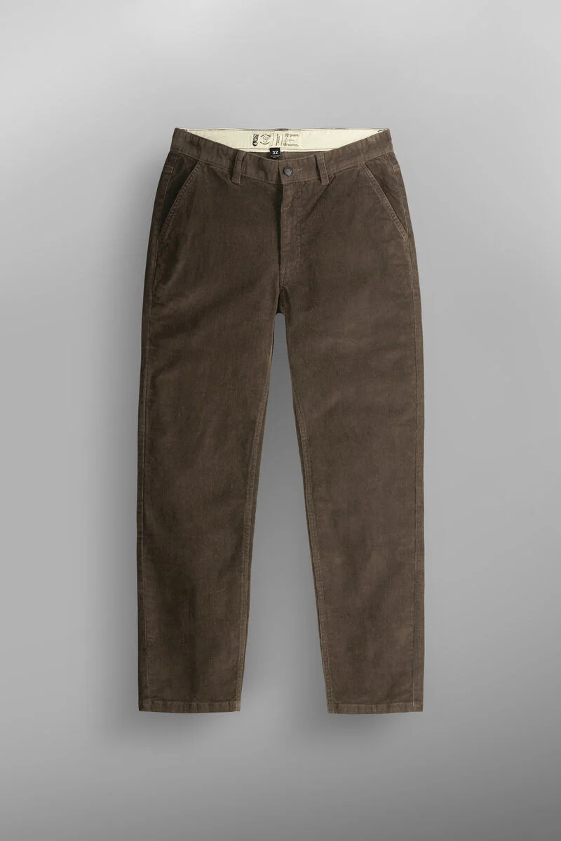 Pantaloni robusti e durevoli, realizzati con velluto a coste elasticizzato di cotone organico.