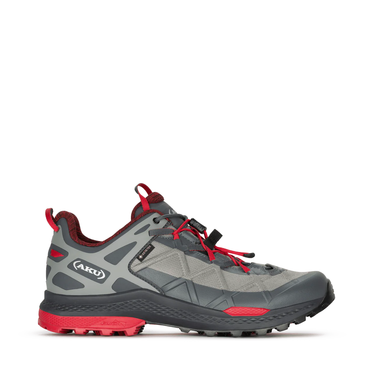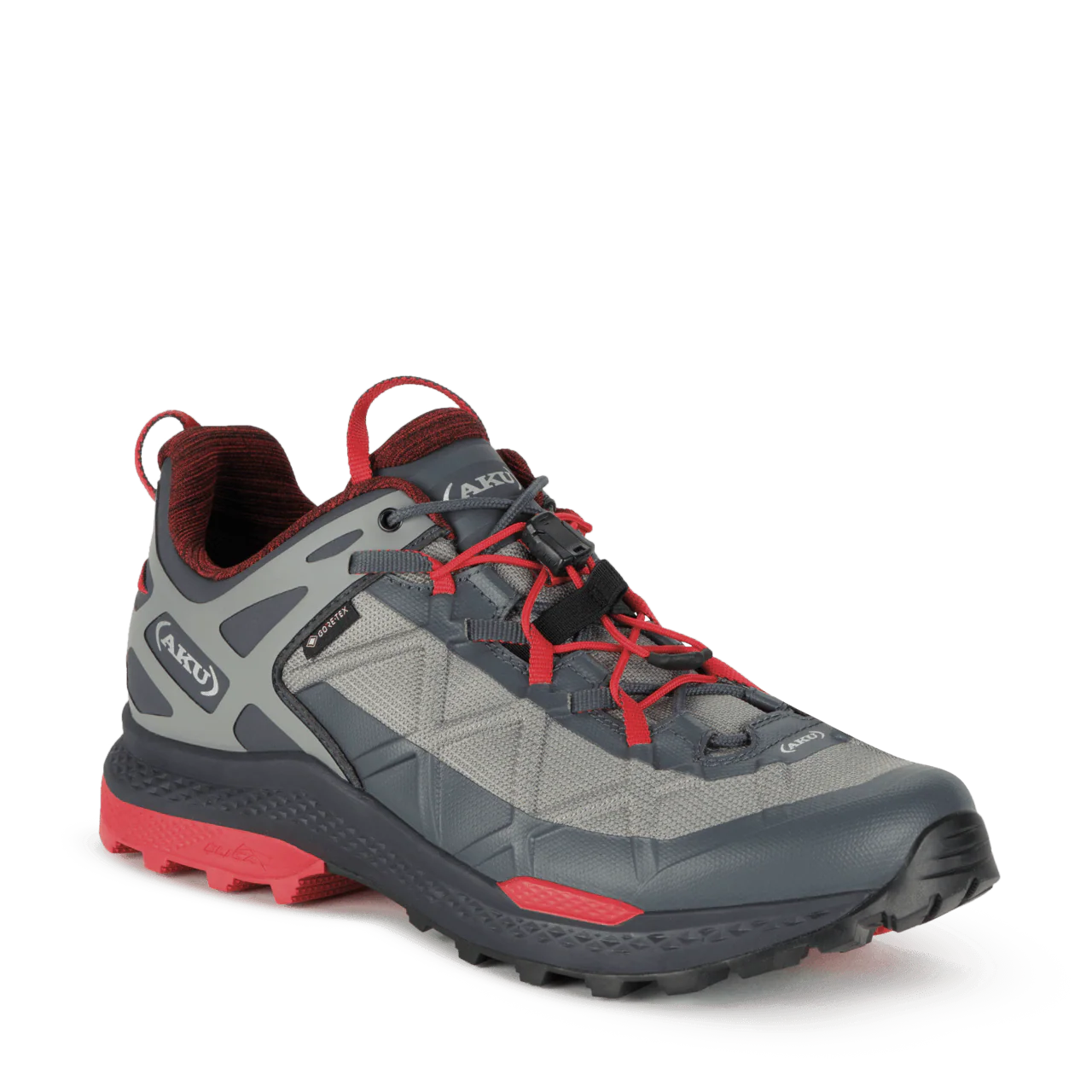 esclusiva AKU Dual Fit System (DFS), qui realizzata nella versione per lo speed hiking, consente di variare il grado di precisione della calzata agendo con semplicitร sui due diversi sistemi di allacciatura. E’ costruita con la tecnologia AKU Elica Natural Stride System per favorire lยefficienza biodinamica.