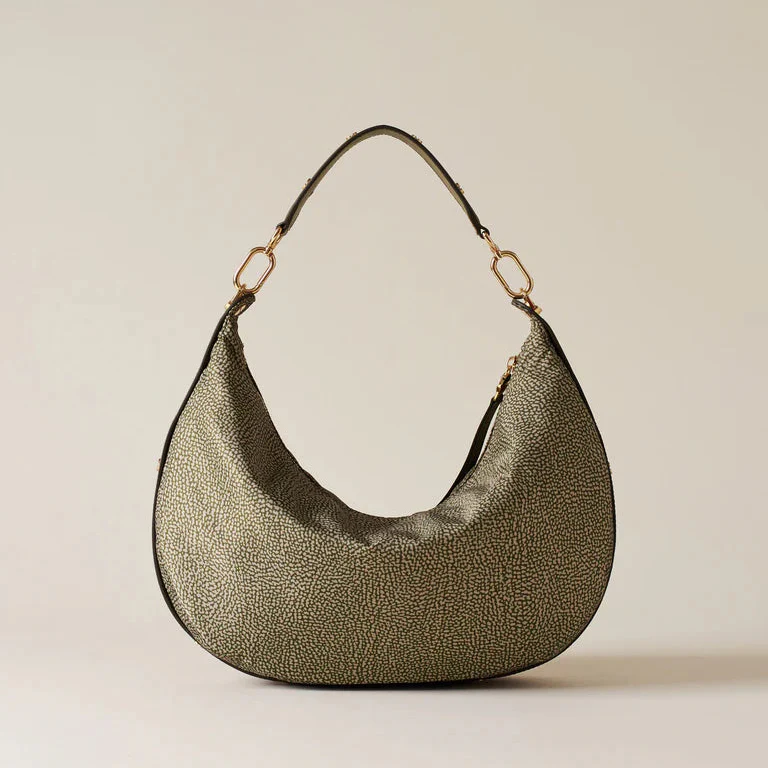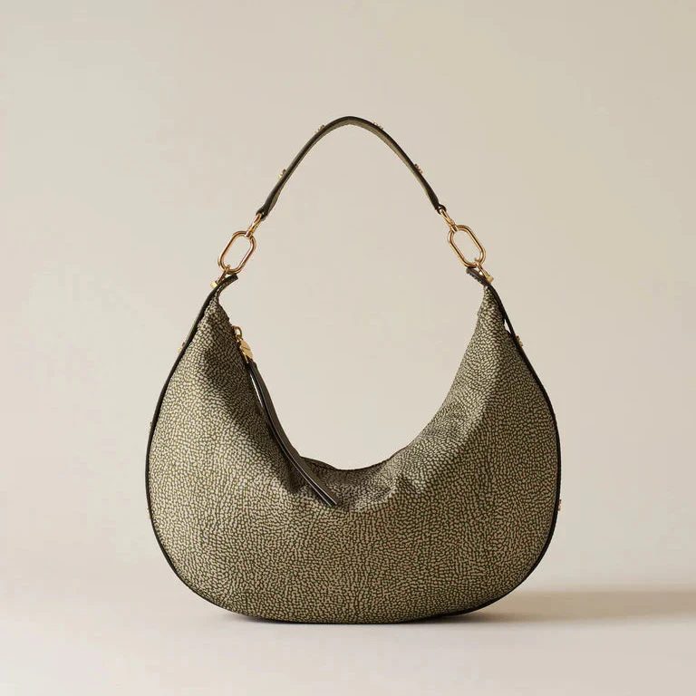 Tessuto riciclato stampa op Dettagli in vitello con elementi decorativi a vite Fodera in tessuto Chiusura con zip metallo e tirazip vite Una tasca interna aperta Una tasca interna chiusa con zip e tirazip vite Manico in vitello con elementi a vite removibile con moschettoni Metallerie oro chiaro opaco Applicazioni: dettagli in metallo dorato Altezza: […]