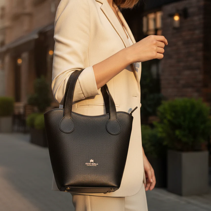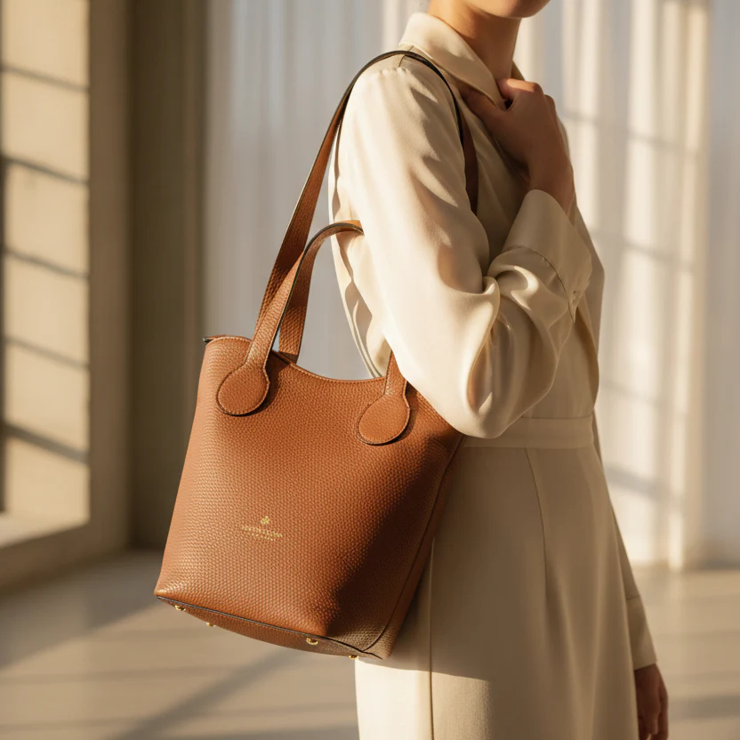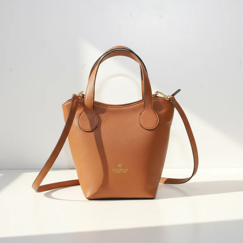 Secchiello in pelle Foderata in tessuto Chiusura con magnete Tracolla in pelle removibile Unica tasca interna aperta Tasca interna con cerniera Logo stampato a caldo. Applicazioni: dettagli in metallo dorato Altezza: 24 cm Larghezza: 26 cm Profonditร : 15 cm Confezione: l’articolo รจ dotato di cartellino di autenticitร Protetto da una dust bag
