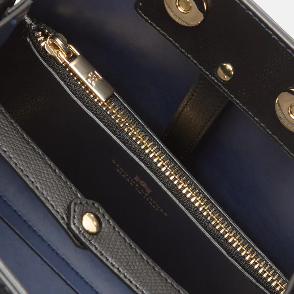 Borsa in pelle Foderata in tessuto Chiusura con magnete Manico a spalla regolabile Tracolla in pelle regolabile e removibile Logo stampato a caldo Taschino removibile Applicazioni: dettagli in metallo dorato Altezza: 22 cm Larghezza: 22 cm Profonditร : 13 cm Confezione: l’articolo รจ dotato di cartellino di autenticitร Protetto da una dust bag