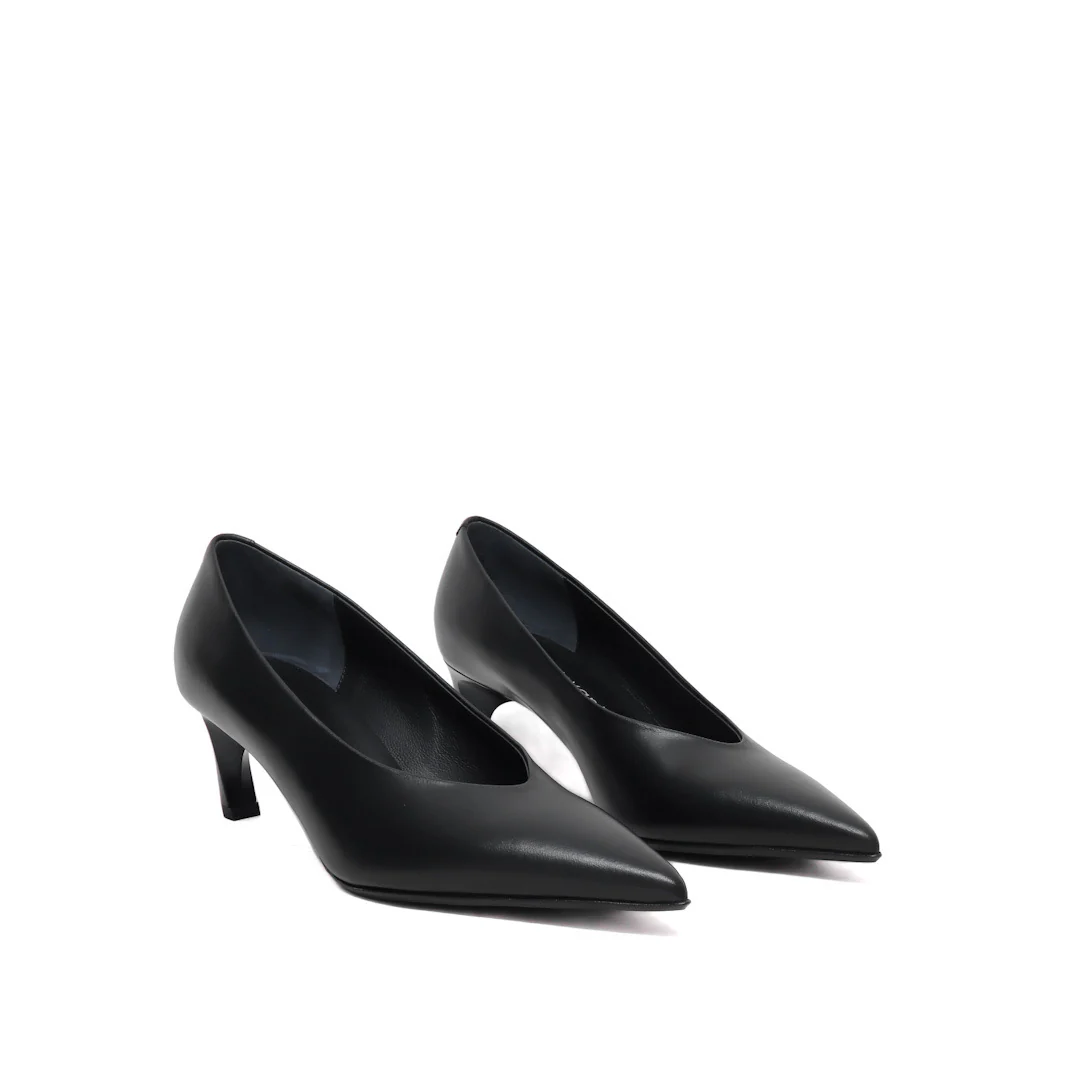 Decollete in pelle nera , scollo a cuore Fodera in pelleSuola in cuoio e gommaTacco 5 cmCalzata regolareProdotto in ItaliaID Prodotto : ELOISA LISCIO NEROSKU : ELOISA-N