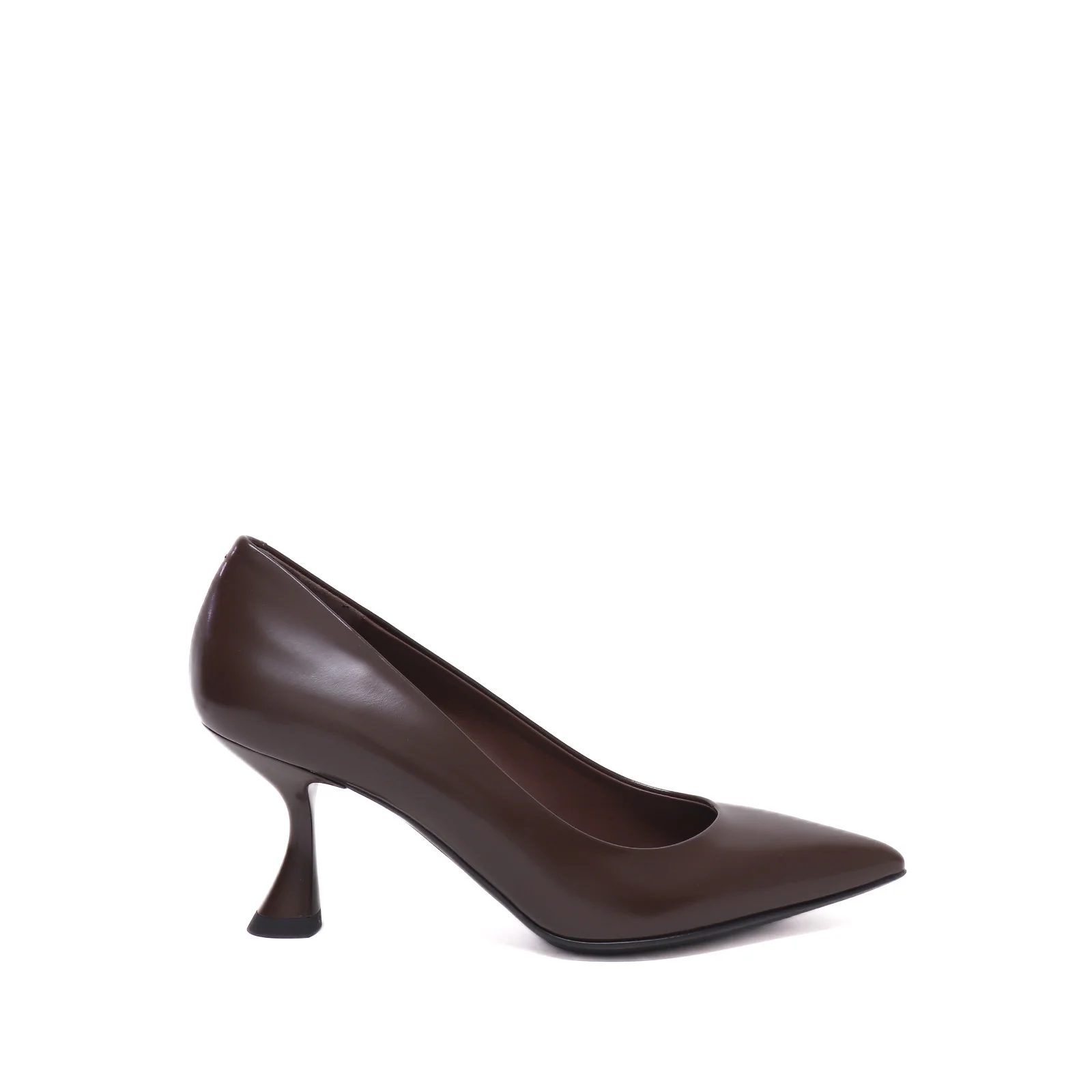 Decolletรจ in pelle spazzolata color cacao, con tacco a clessidra