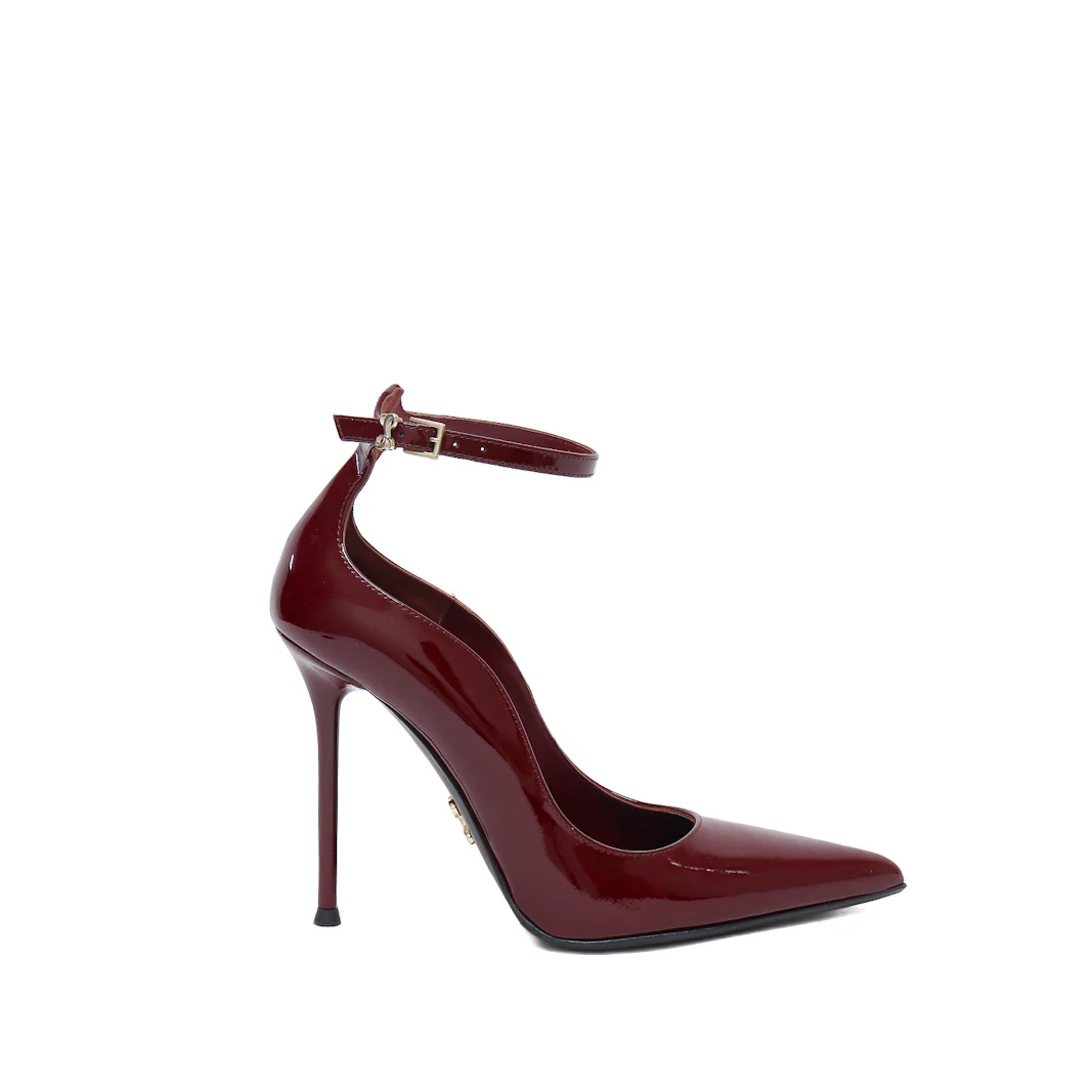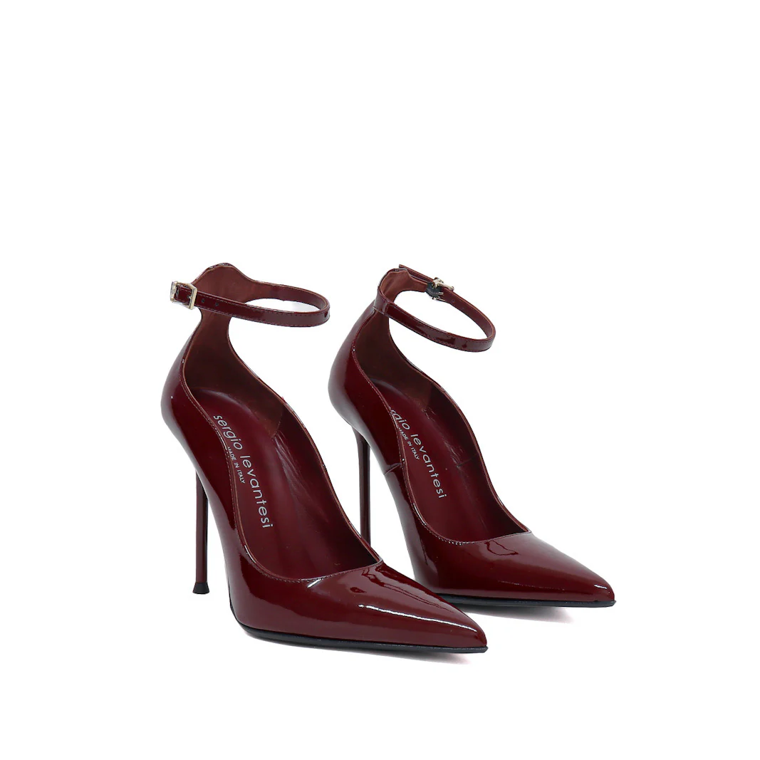 Decollete in pelle verniciata bordeaux con cinturino regolabile in caviglia