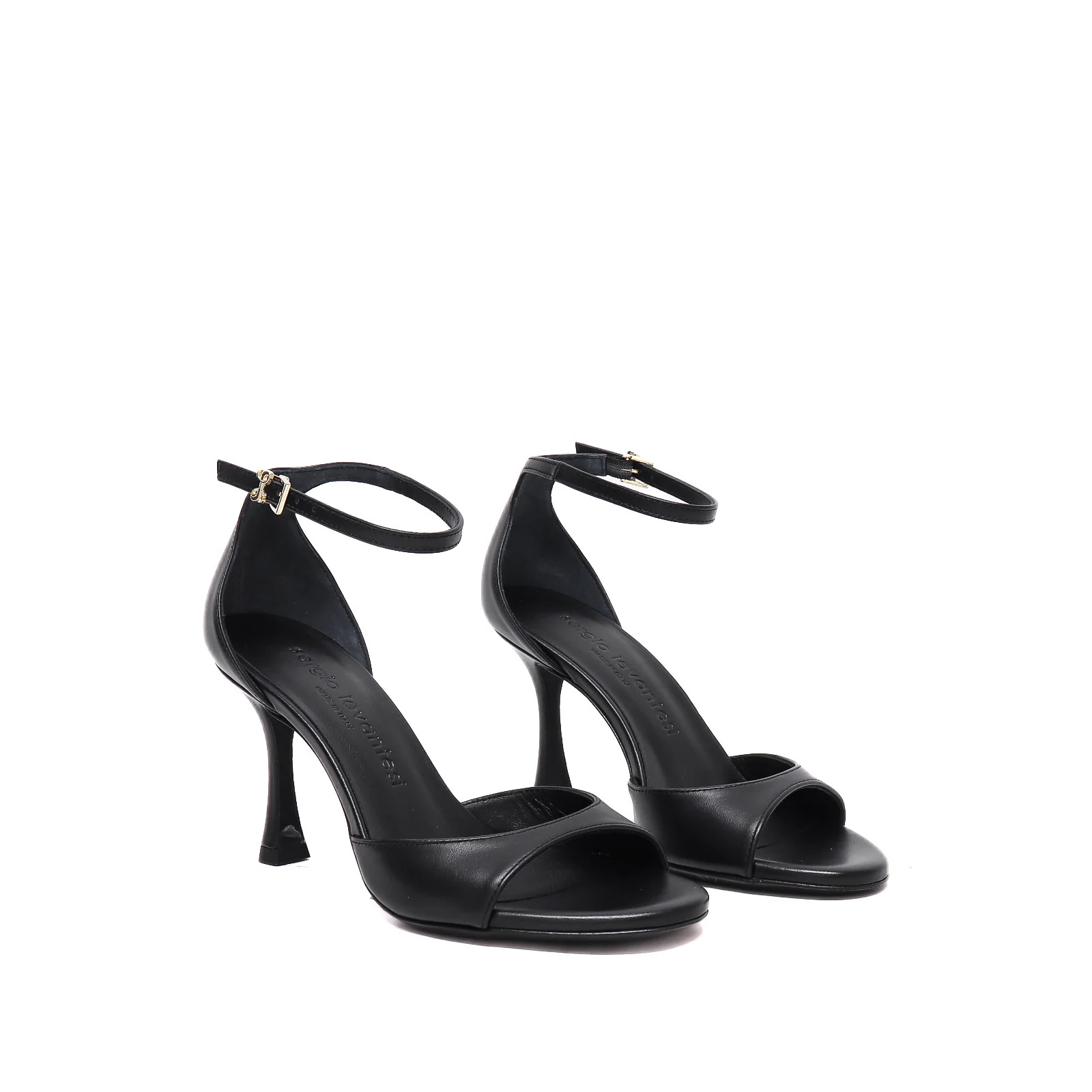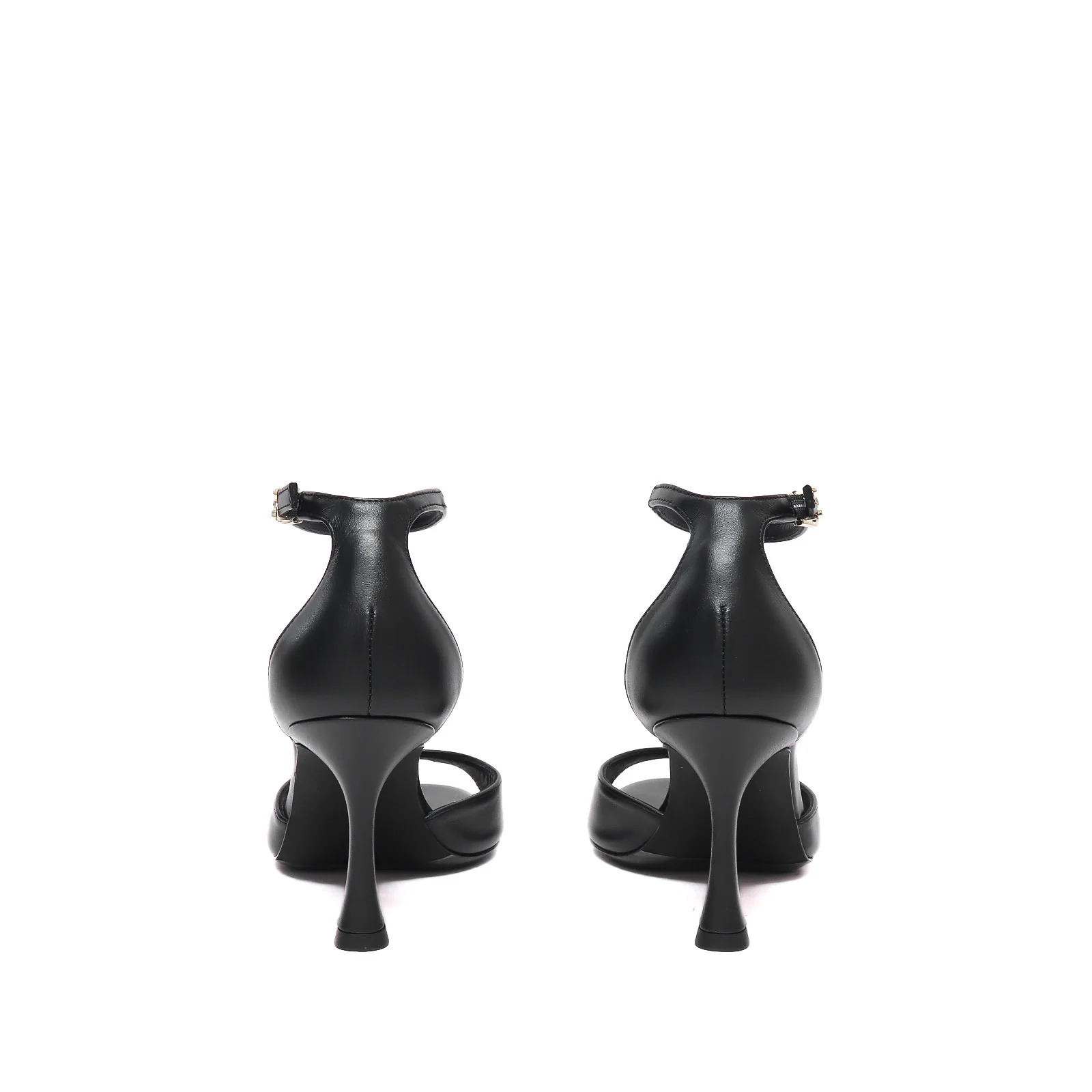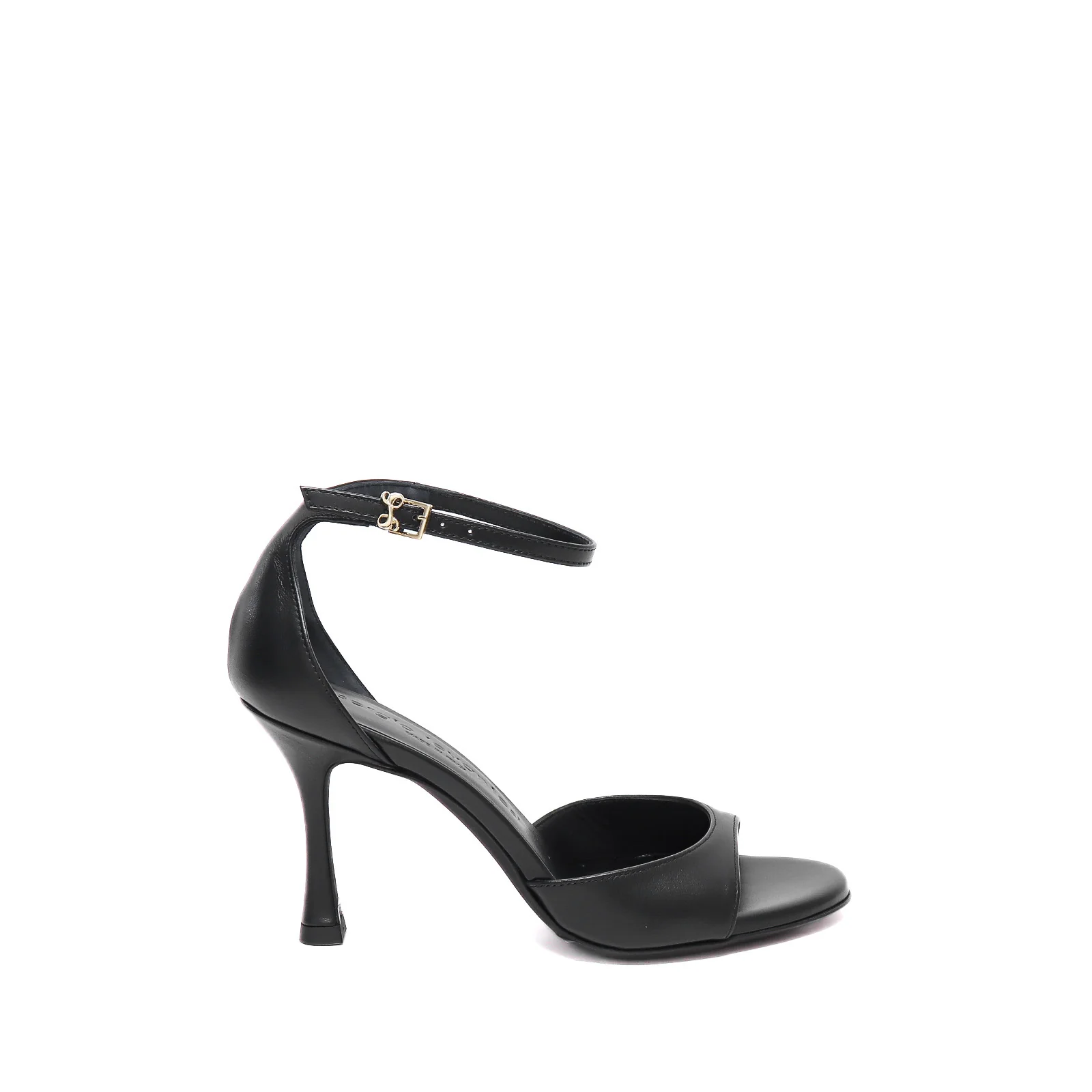 Sandalo in pelle nera con cinturino alla caviglia