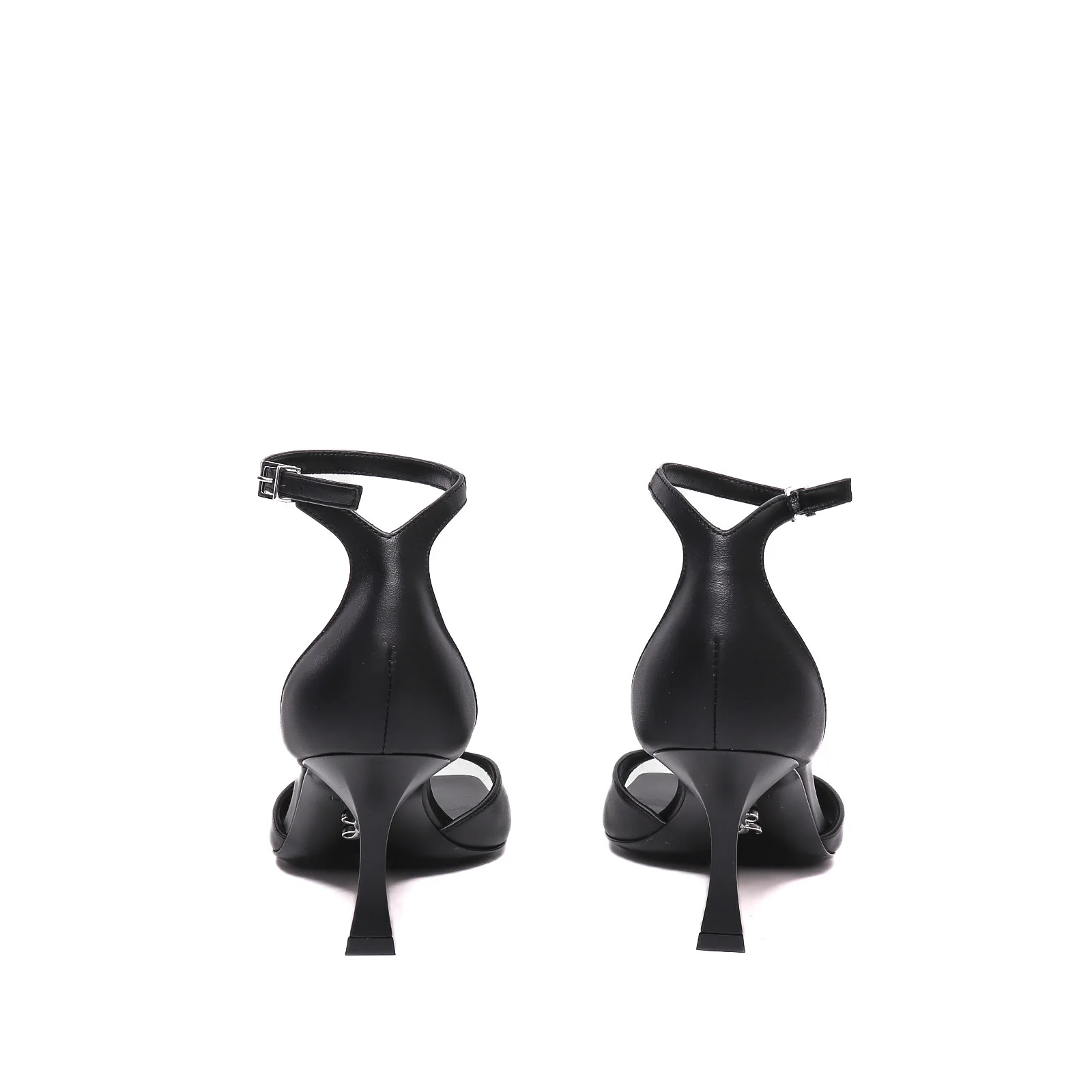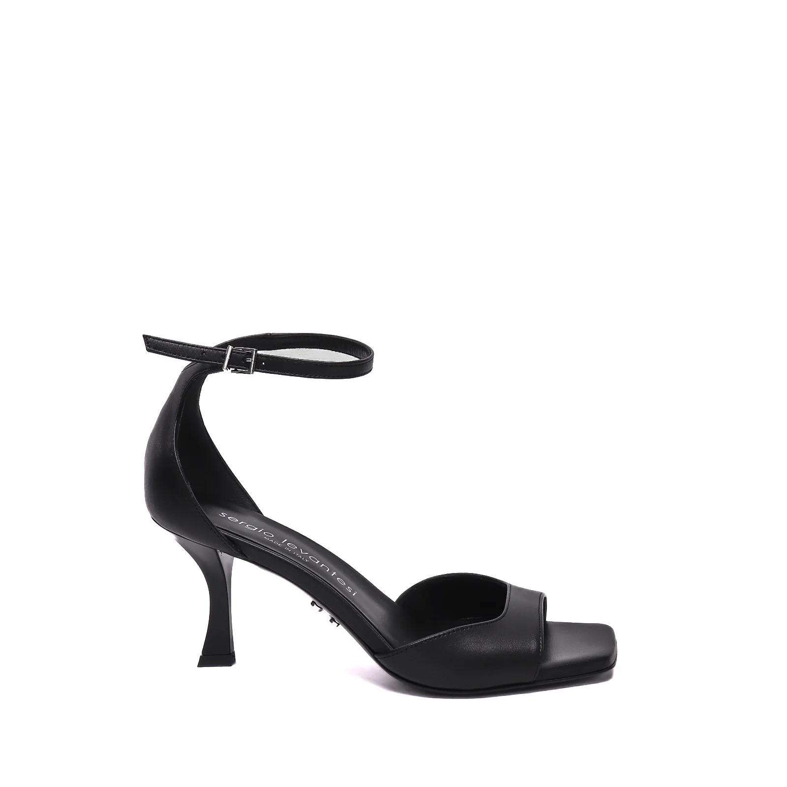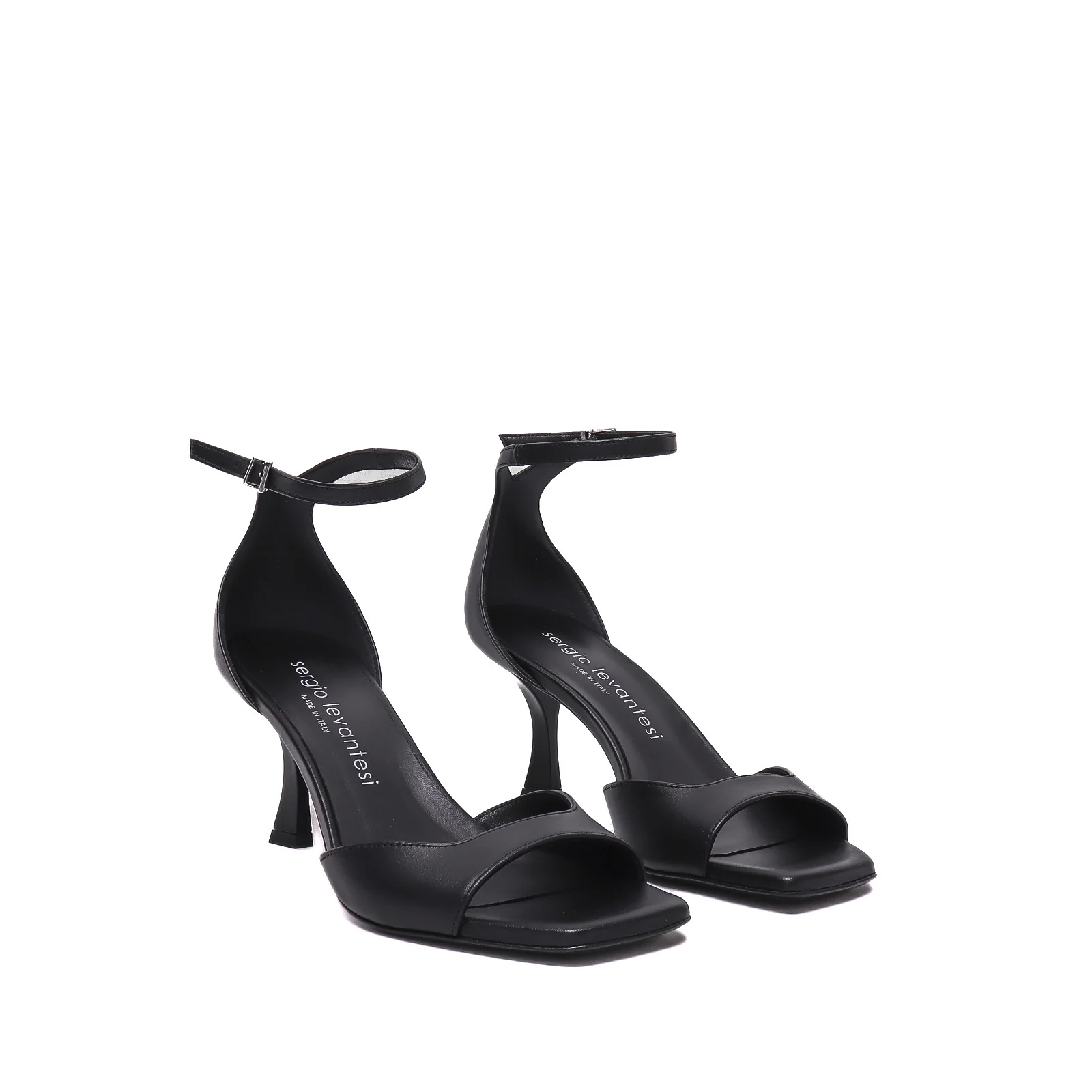 Sandalo in pelle nera con cinturino alla caviglia Fodera in pelleSuola in cuoioTacco 7 cmCalzata regolareProdotto in ItaliaID Prodotto: IRIS CALF NEROSKU : IRIS-NE