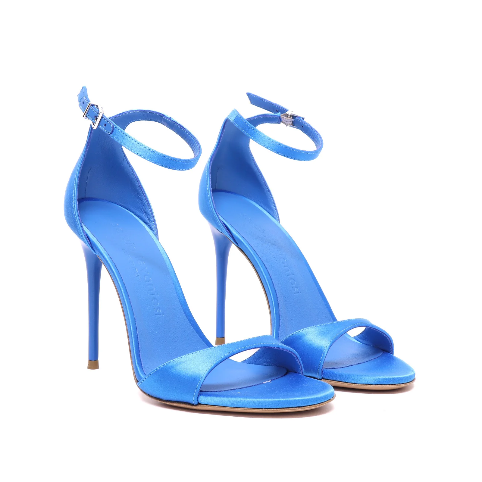 Sandalo in raso turchese con laccio alla caviglia Fodera in pelleSuola in cuoioTacco 11 cmCalzata regolareProdotto in ItaliaID Prodotto : RAVE RASO PLACIDOSKU : RAVE-P